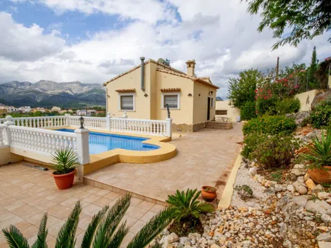 Villa en venta en Orba. Maravillosa villa ubicada en la parte baja de la urbanización El Aspre en Orba, con apartamento independiente. La propiedad se encuentra en perfectas condiciones y con acabados de muy buena calidad. La casa consta de cocina totalmente equipada y moderna, salón-comedor con acceso directo a la terraza, tres dormitorios, uno de ellos con vestidor y baño in suite y un baño familiar. Dispone de aire acondicionado, calefacción de gas, chimenea, parking para varios coches y una hermosa terraza con piscina y zona chill out bajo una pérgola con unas hermosas vistas al pueblo y al valle. En la parte inferior de la villa y con un acceso independiente encontramos, un apartamento para invitados con salón-comedor, cocina, un dormitorio y baño in suite.