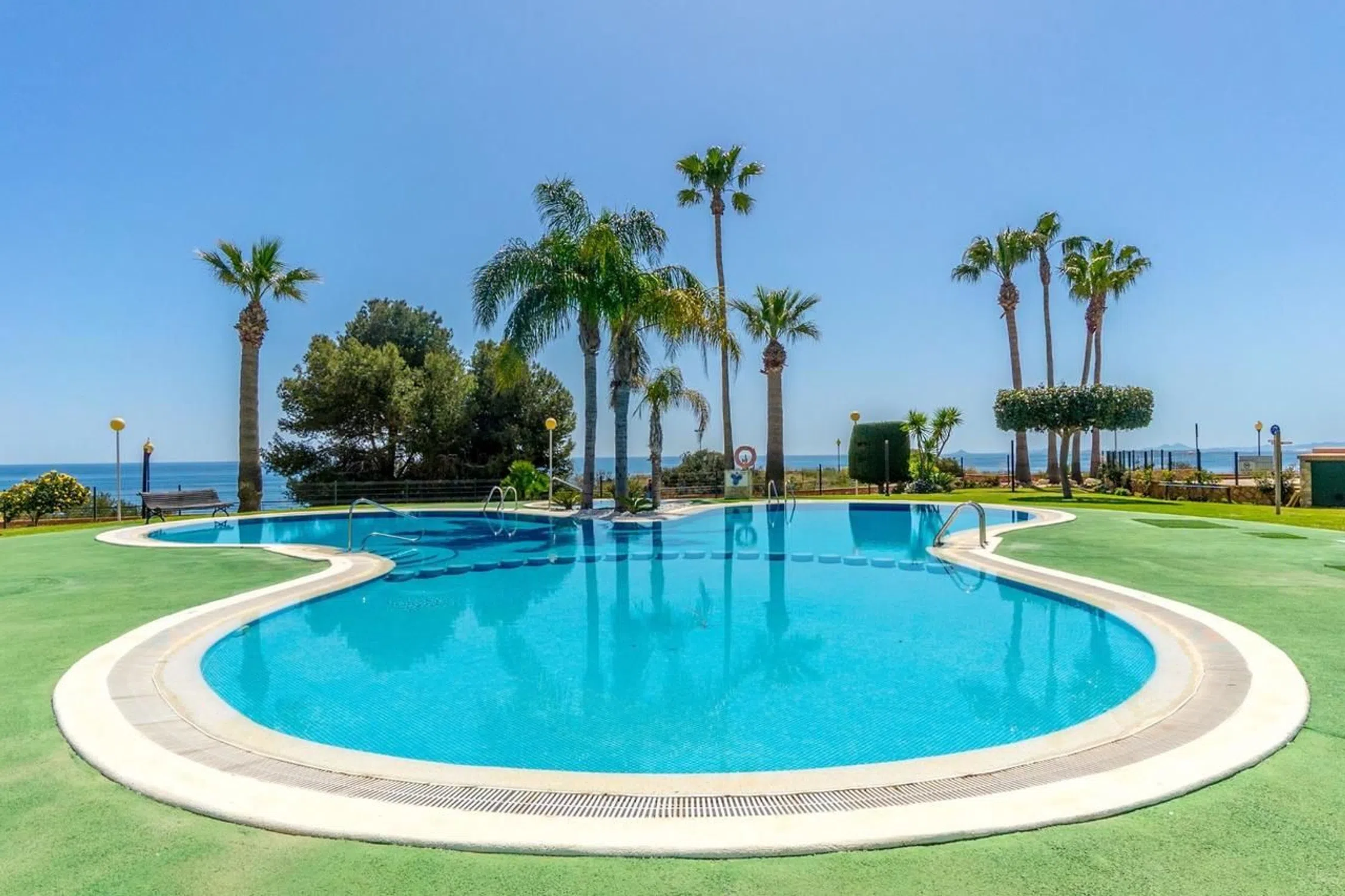 Este espacioso apartamento en la primera planta, con orientación sureste, está ubicado en el exclusivo complejo residencial Aguamarina, Punta Glea, en Cabo Roig, Alicante, en primera línea de playa, con acceso directo al paseo marítimo. La propiedad se venderá parcialmente amueblada y cuenta con un amplio salón con comedor, una cocina independiente totalmente equipada con trastero/lavadero, aire acondicionado (frío/calor) en toda la propiedad, dos amplios dormitorios con armarios empotrados que ofrecen una gran capacidad de almacenamiento, dos baños completos, una gran terraza, accesible desde el salón y el dormitorio principal, el lugar perfecto para disfrutar de las vistas a los jardines del complejo y al mar. El apartamento incluye una plaza de aparcamiento asignada en el garaje subterráneo. El complejo residencial cuenta con una espectacular piscina, rodeada de jardines, ideal para disfrutar de días soleados y relajarse a pocos pasos del mar. Una ubicación inmejorable, con la comodidad de estar justo en la playa y con todos los servicios a poca distancia.