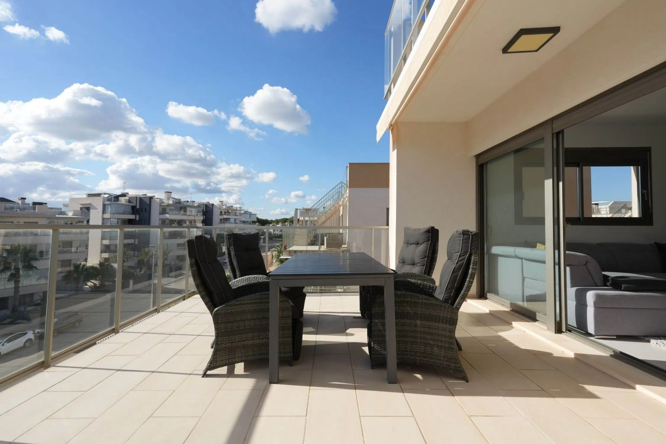 Este ático dúplex ofrece un diseño moderno y funcional, con una distribución cómoda en dos plantas. Cuenta con 3 dormitorios y 2 baños, un luminoso salón con cocina abierta y una amplia terraza en la planta principal, ideal para relajarse o comer al aire libre. En la planta superior, destaca el solárium privado por su tamaño, perfecto para disfrutar del sol, crear una zona chill-out o colocar tumbonas. La vivienda forma parte de Villamartín Gardens, un complejo residencial con múltiples piscinas comunitarias y zonas verdes. La ubicación es tranquila pero muy práctica, con fácil acceso a servicios, restaurantes y supermercados. Los campos de golf de Villamartín y Las Ramblas están a solo unos minutos y las playas de Orihuela Costa son fácilmente accesibles en coche. Es una opción ideal como residencia de vacaciones o como vivienda cerca del mar con todas las comodidades.