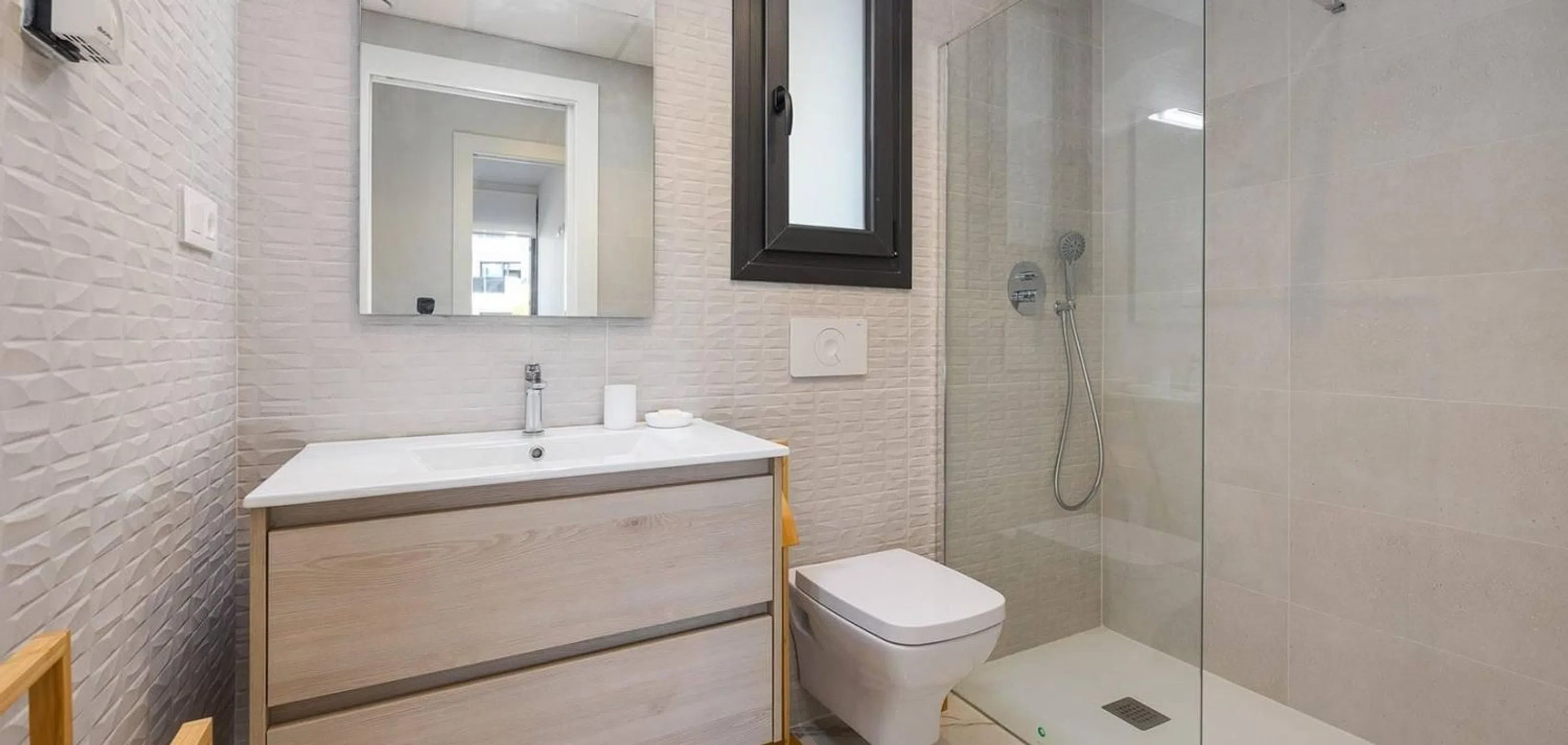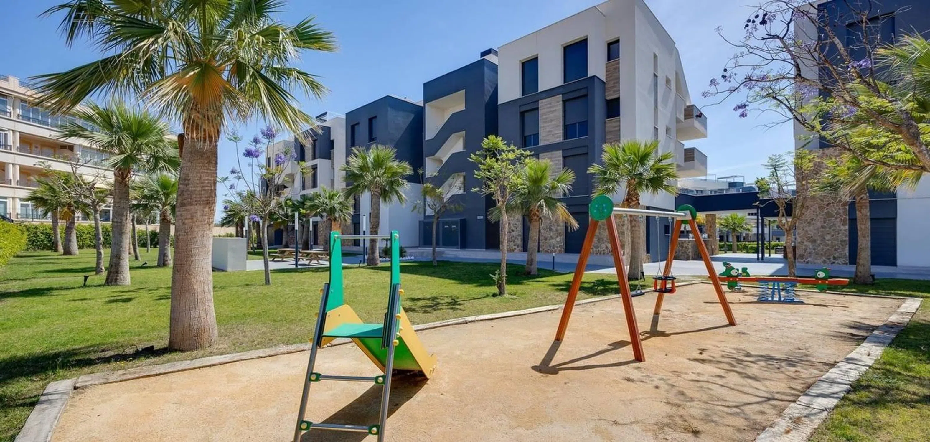 Presentamos este magnífico apartamento de 2 dormitorios y 2 baños en Playa Flamenca, ubicado en una exclusiva urbanización en el corazón de Orihuela Costa. Situado en una primera planta, este apartamento destaca por su excelente estado de conservación, ya que es prácticamente nuevo, y se entrega totalmente amueblado y equipado, listo para entrar a vivir. La vivienda cuenta con aire acondicionado instalado, plaza de aparcamiento incluida, y una distribución cómoda y funcional, ideal tanto como residencia habitual como para segunda residencia o inversión. El residencial ofrece un entorno moderno y cuidado, con amplias zonas comunes y una espectacular piscina comunitaria, ideal para disfrutar del buen clima mediterráneo durante todo el año. Su ubicación privilegiada en Playa Flamenca permite acceder a pie a todos los servicios esenciales como supermercados, restaurantes, centros de salud, colegios y transporte público. Además, se encuentra a menos de 2 km de las mejores playas de Orihuela Costa, como la Playa de La Zenia y la Playa de Cabo Roig, reconocidas por su arena fina y aguas cristalinas. Para los amantes del golf, en un radio de pocos minutos en coche se pueden encontrar reconocidos campos de golf como Villamartín Golf, Campoamor Golf y Las Ramblas Golf, convirtiendo esta vivienda en una excelente opción también para los aficionados a este deporte. El acceso al Centro Comercial Zenia Boulevard, uno de los más importantes de la provincia, está a tan solo 5 minutos, y el Aeropuerto Internacional de Alicante-Elche se encuentra a solo 45 minutos en coche, lo que garantiza una excelente conexión con el resto de España y Europa. Si estás buscando un apartamento moderno en Playa Flamenca con piscina y cerca del mar, no dejes pasar esta oportunidad única. ¡Contáctanos hoy mismo y descubre tu nuevo hogar en la Costa Blanca!
