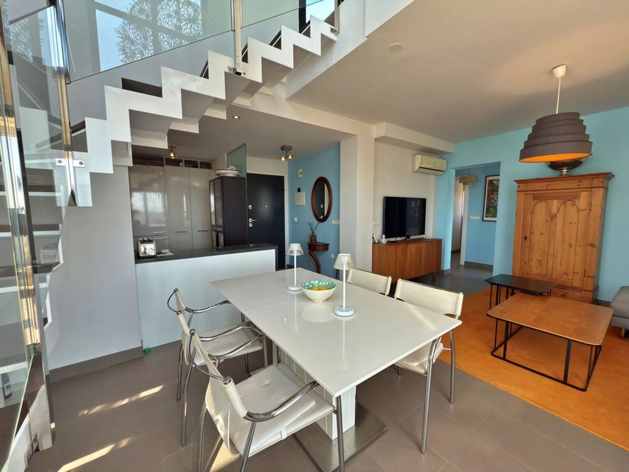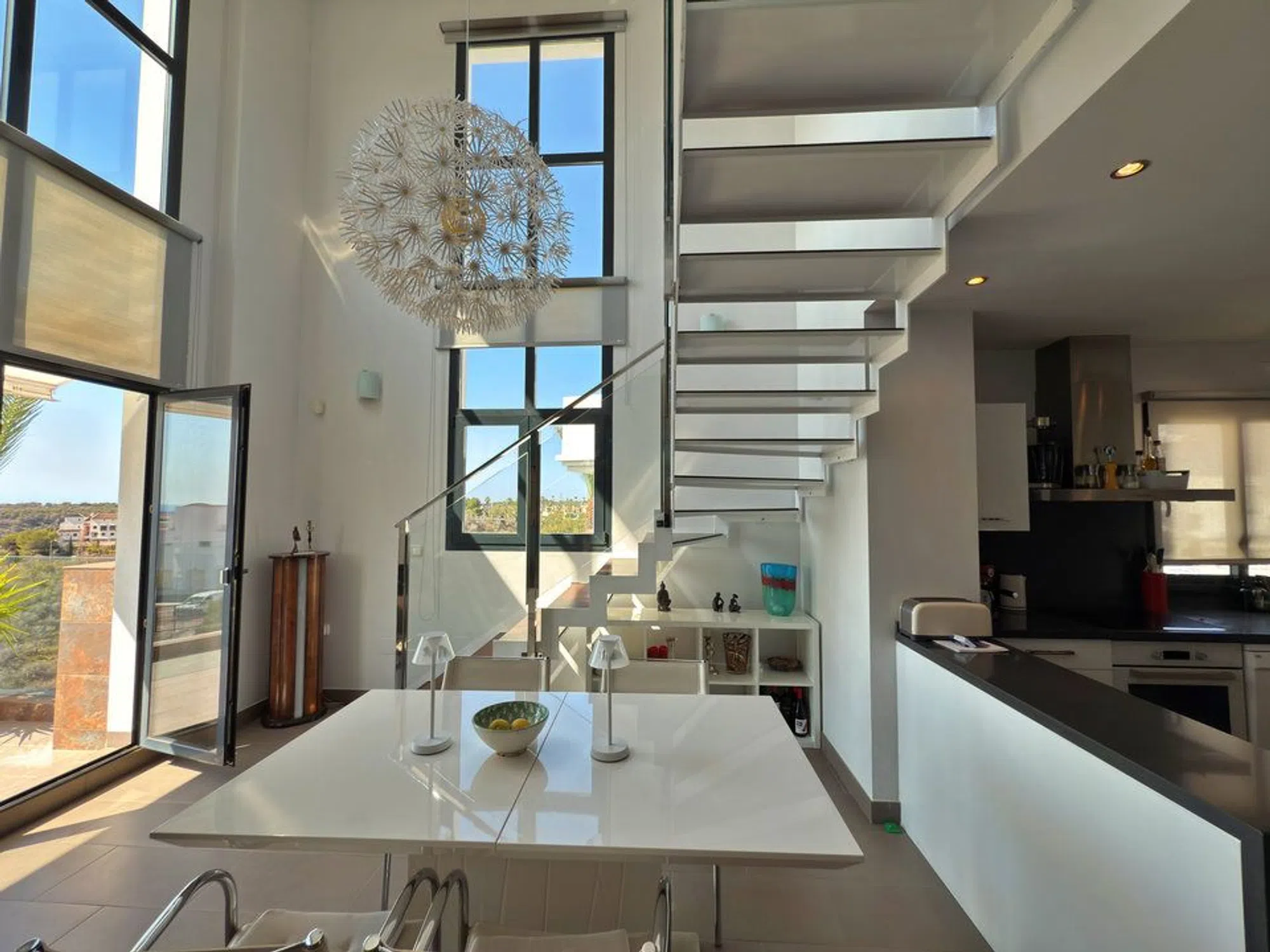 Este espacioso apartamento dúplex está ubicado en la codiciada zona de Las Ramblas Golf. Cuenta con 3 dormitorios y 2 baños, con un diseño luminoso y abierto ideal para una vida confortable. En la planta principal, encontrará dos dormitorios, un baño, una gran cocina de planta abierta y una amplia sala de estar con acceso a una terraza delantera, perfecta para relajarse o entretenerse. Arriba, hay un tercer dormitorio con su propio baño y una terraza privada muy grande que ofrece hermosas vistas al mar. El apartamento está situado en una zona tranquila y verde, pero cerca del golf, las tiendas y a un corto trayecto en coche de la playa. Es una excelente opción para vacaciones, alquileres o para vivir todo el año.
