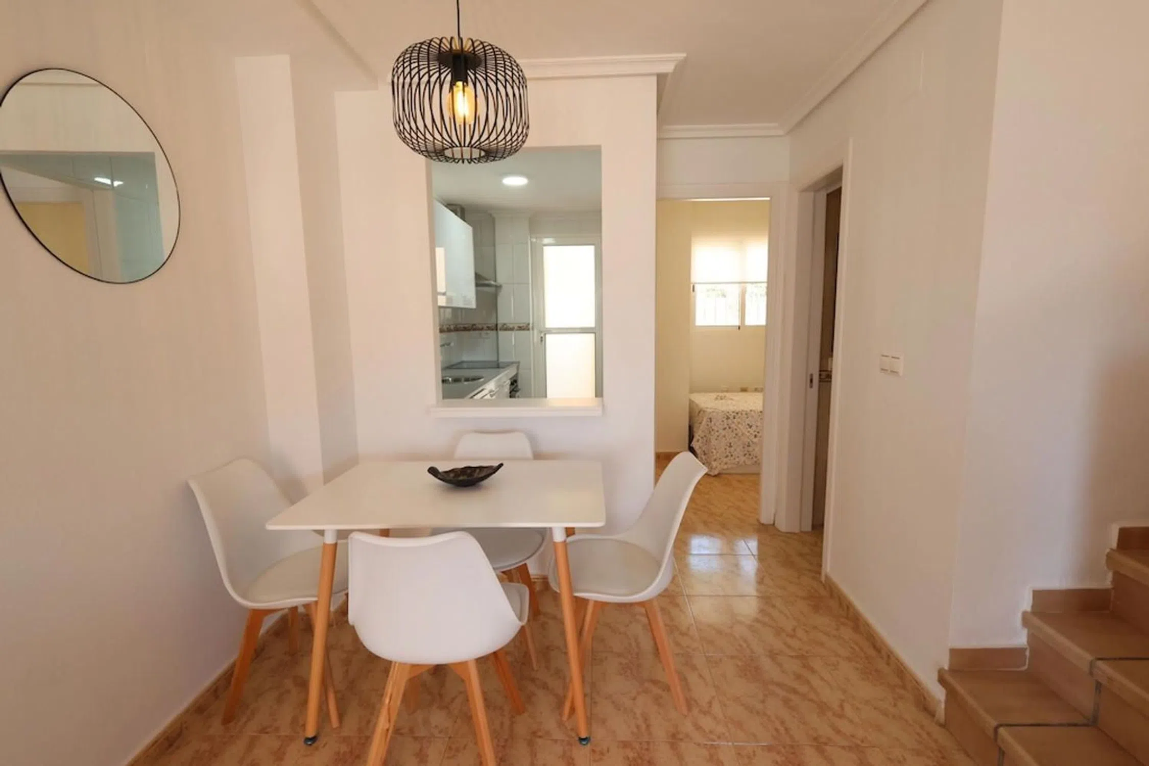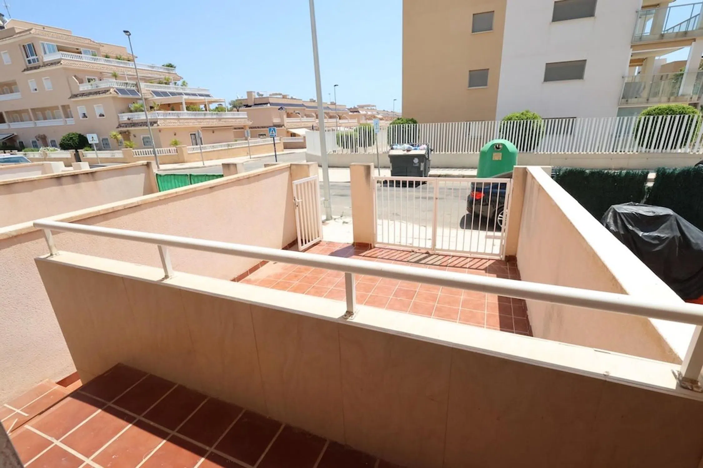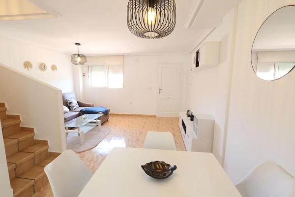 Dúplex de 89 m² ubicado en una tranquila urbanización de Villamartín, ideal tanto como residencia habitual como para vacaciones. La vivienda cuenta con 3 dormitorios, uno de ellos en planta baja, 2 baños completos, 1 aseo, y un amplio solárium. El dormitorio principal, en la planta alta, dispone de baño en suite y vestidor privado. En la planta baja encontramos un jardín enlosado de unos 20 m² con entrada para vehículo, una terraza delantera, salón-comedor luminoso, cocina independiente, aseo, y un dormitorio. Desde el patio trasero se accede directamente a la piscina comunitaria, lo que aporta un gran valor añadido. En la planta superior se ubican los otros dos dormitorios y dos baños, y en la última planta, un gran solárium privado perfecto para disfrutar del sol durante todo el año. Situado cerca de todos los servicios, supermercados, restaurantes, campos de golf y a pocos minutos en coche de las playas de Orihuela Costa.