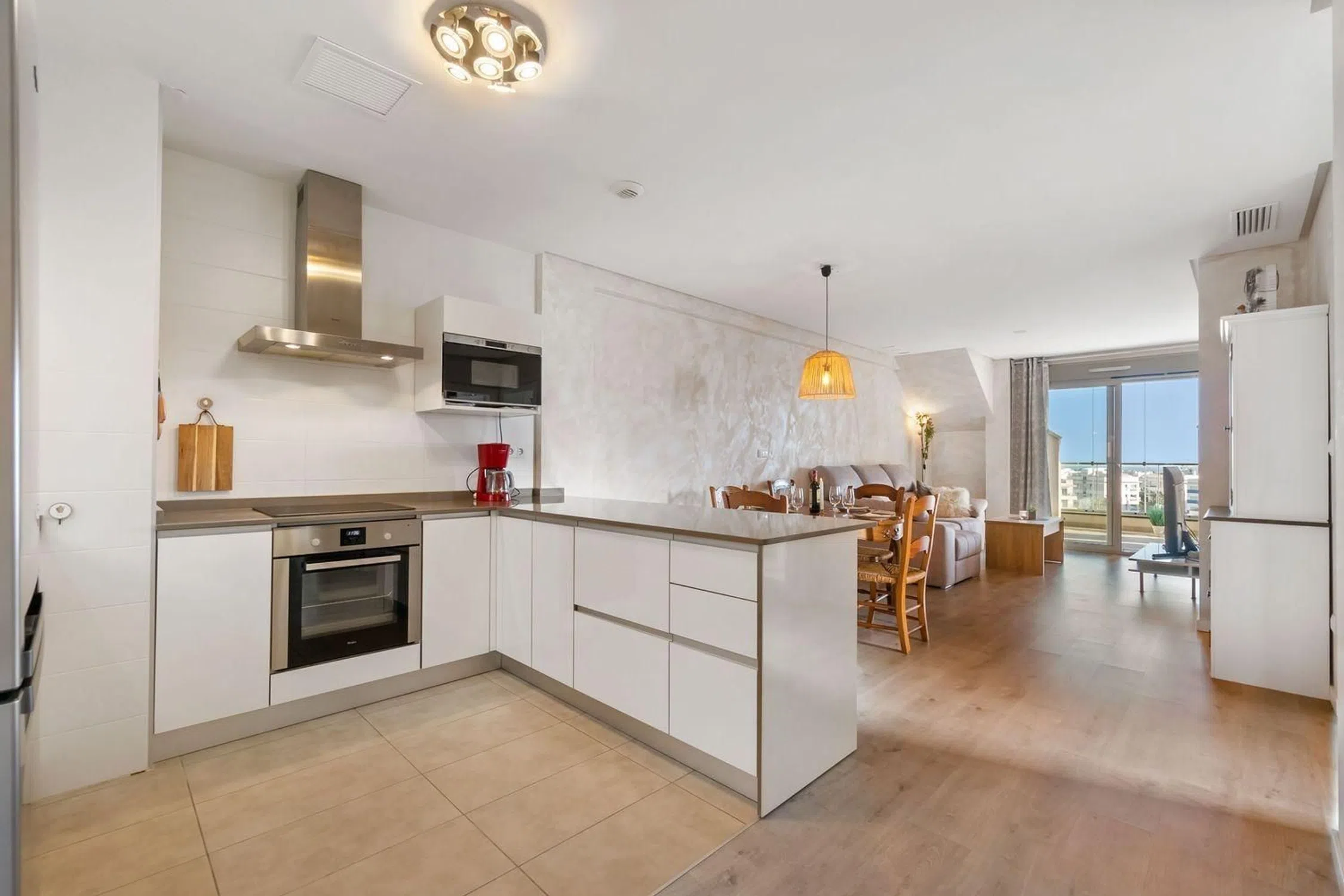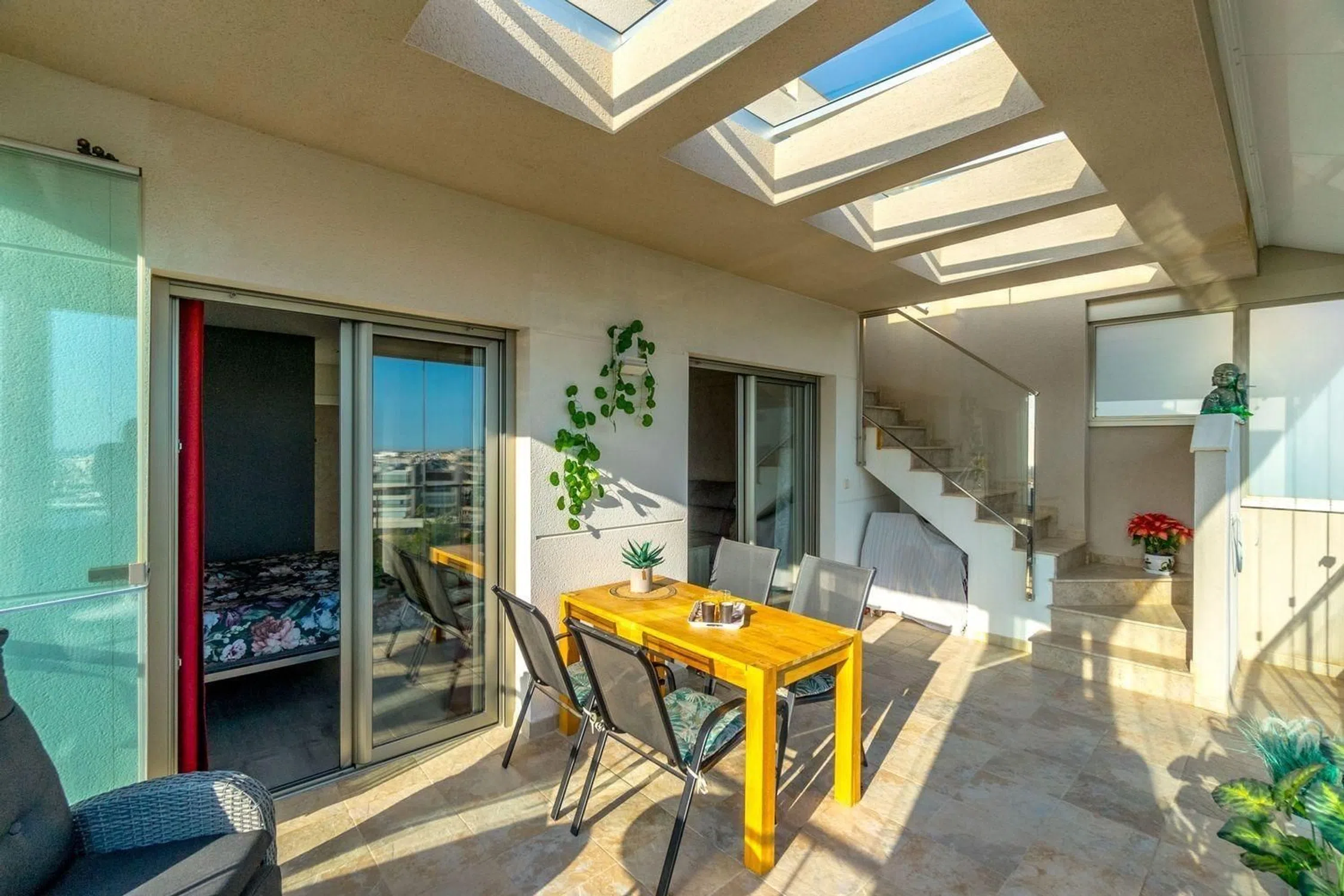 Descubre este exclusivo ático ubicado dentro de un moderno complejo en Villamartín, que ofrece impresionantes vistas del mar, montañas, reserva natural y áreas verdes protegidas. Disfruta de la relajación en la piscina comunitaria o el centro de bienestar que incluye una piscina cubierta y un gimnasio, ¡perfectamente diseñado para disfrutar del sol mediterráneo! ☀️ Este apartamento en la última planta cuenta con una cocina totalmente equipada, dos dormitorios, dos baños y un espacioso salón adornado con puertas dobles que dan a una impresionante terraza cerrada de cristal, ¡el lugar ideal para disfrutar de momentos de café al amanecer! Además, date un capricho en tu solárium privado con vista a la costa, completo con instalaciones de ducha ��️. El dormitorio principal cuenta con acceso directo a esta exquisita terraza a través de puertas correderas y está situado como una unidad en esquina, mostrando impresionantes vistas panorámicas desde cada ángulo ��. Equipado con aire acondicionado aerotérmico de última generación (por conductos), sistemas de calefacción y servicios de agua caliente ��; ambos baños cuentan con calefacción por suelo radiante acompañada de azulejos de alta calidad en todo �✨. Fuera encontrarás tu espacio de estacionamiento dedicado convenientemente situado �� Ubicado en Altos del Mediterráneo fase 3, una comunidad segura a solo 2 km de la Playa La Zenia, conocida como uno de los mejores destinos costeros de la Costa Blanca ��—y rodeado de todas las comodidades esenciales, incluyendo supermercados, farmacias, bancos, peluquerías, bares y restaurantes, ¡justo al otro lado de la calle!
