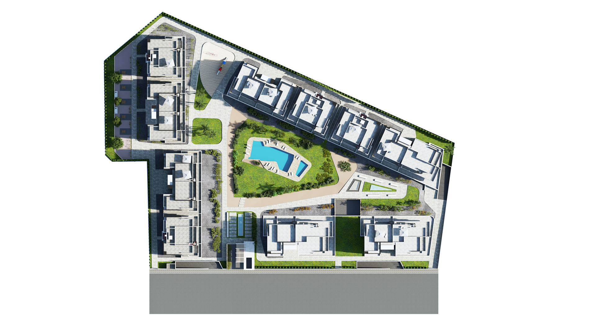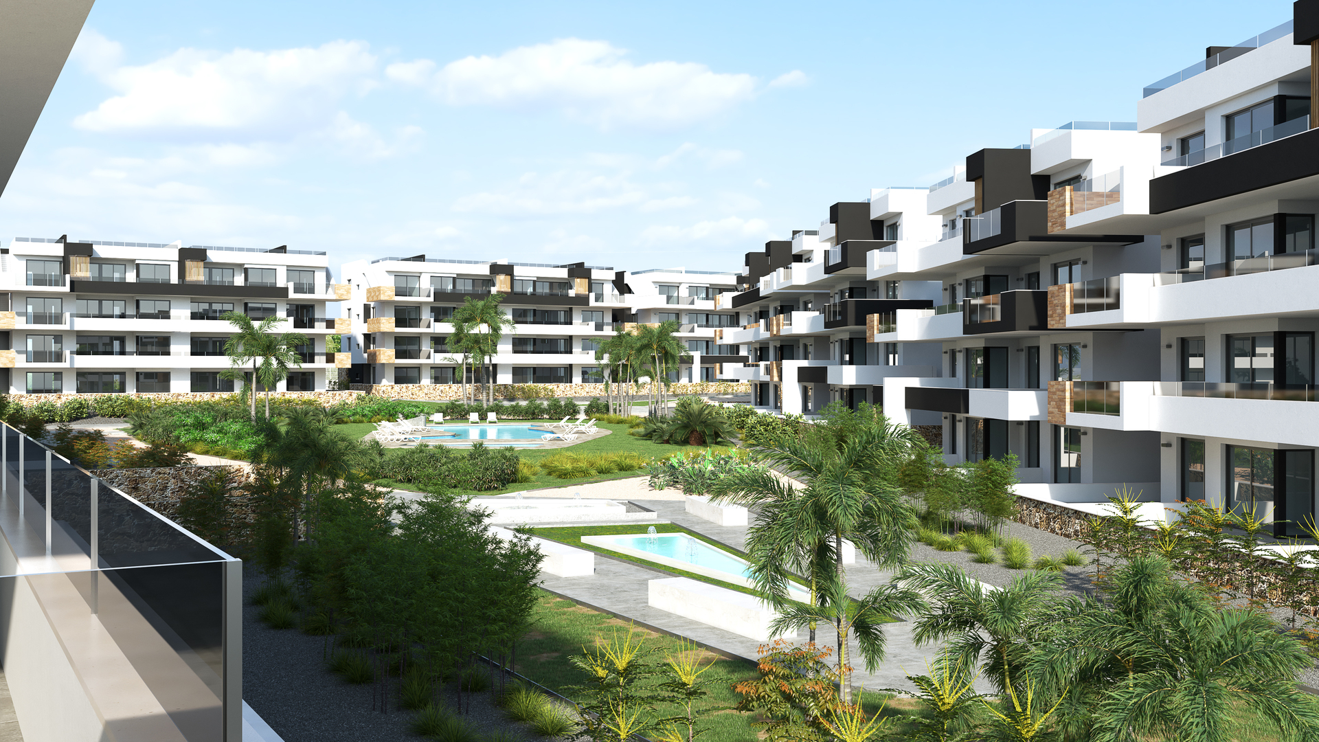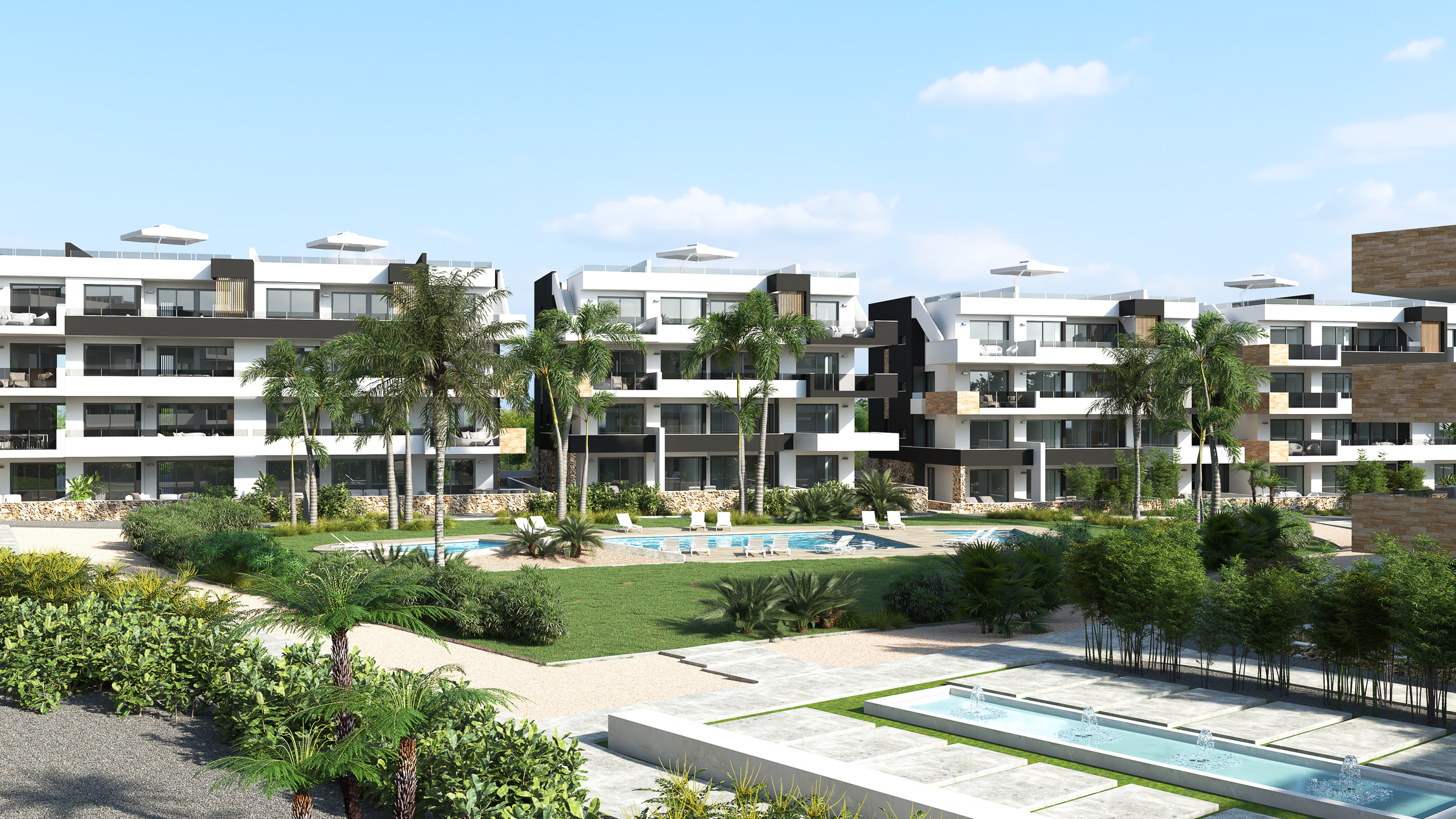 El Residencial constara de piscina comunitaria un parque infantil, con amplias zonas ajardinadas, áreas comunitarias rodeadas de césped natural, palmeras, fuentes y paseos que harán disfrutar de su privilegiado entorno natural.