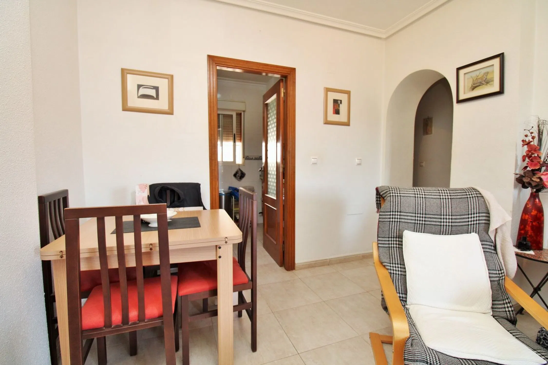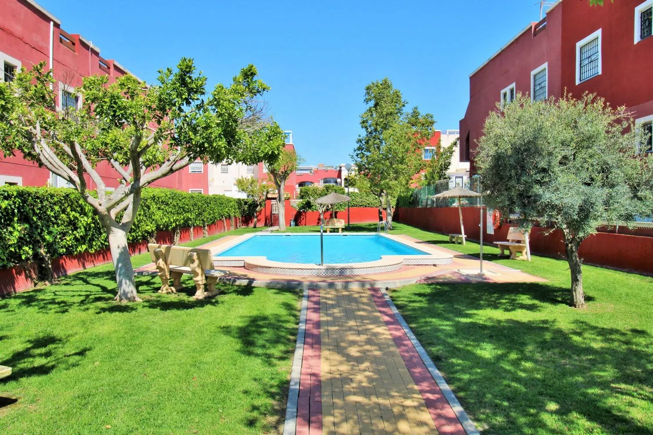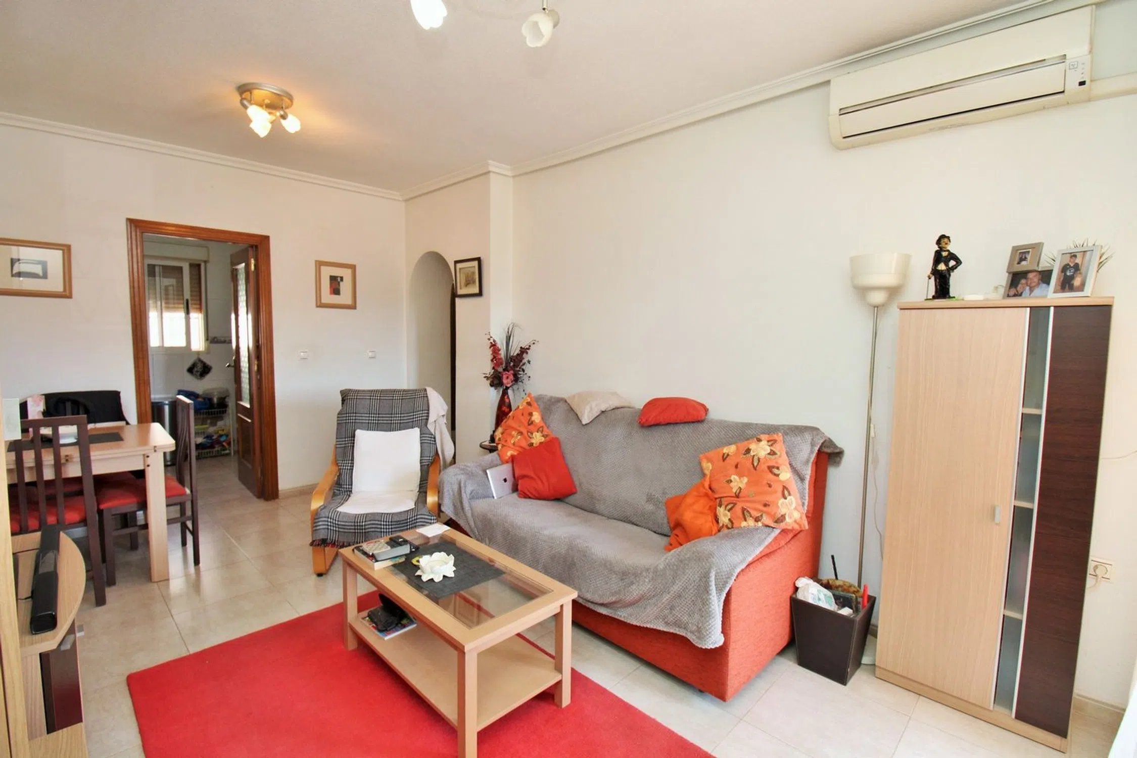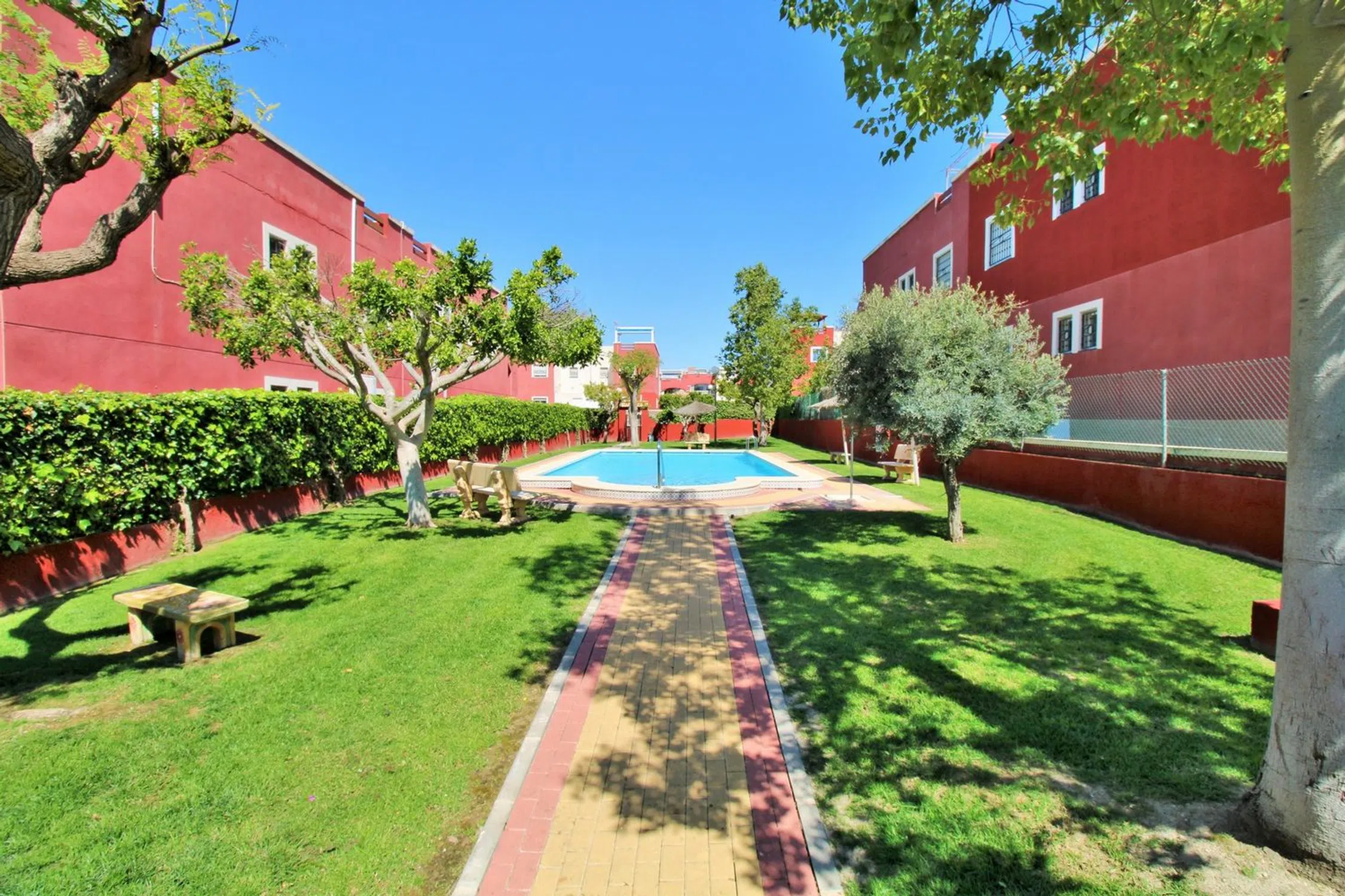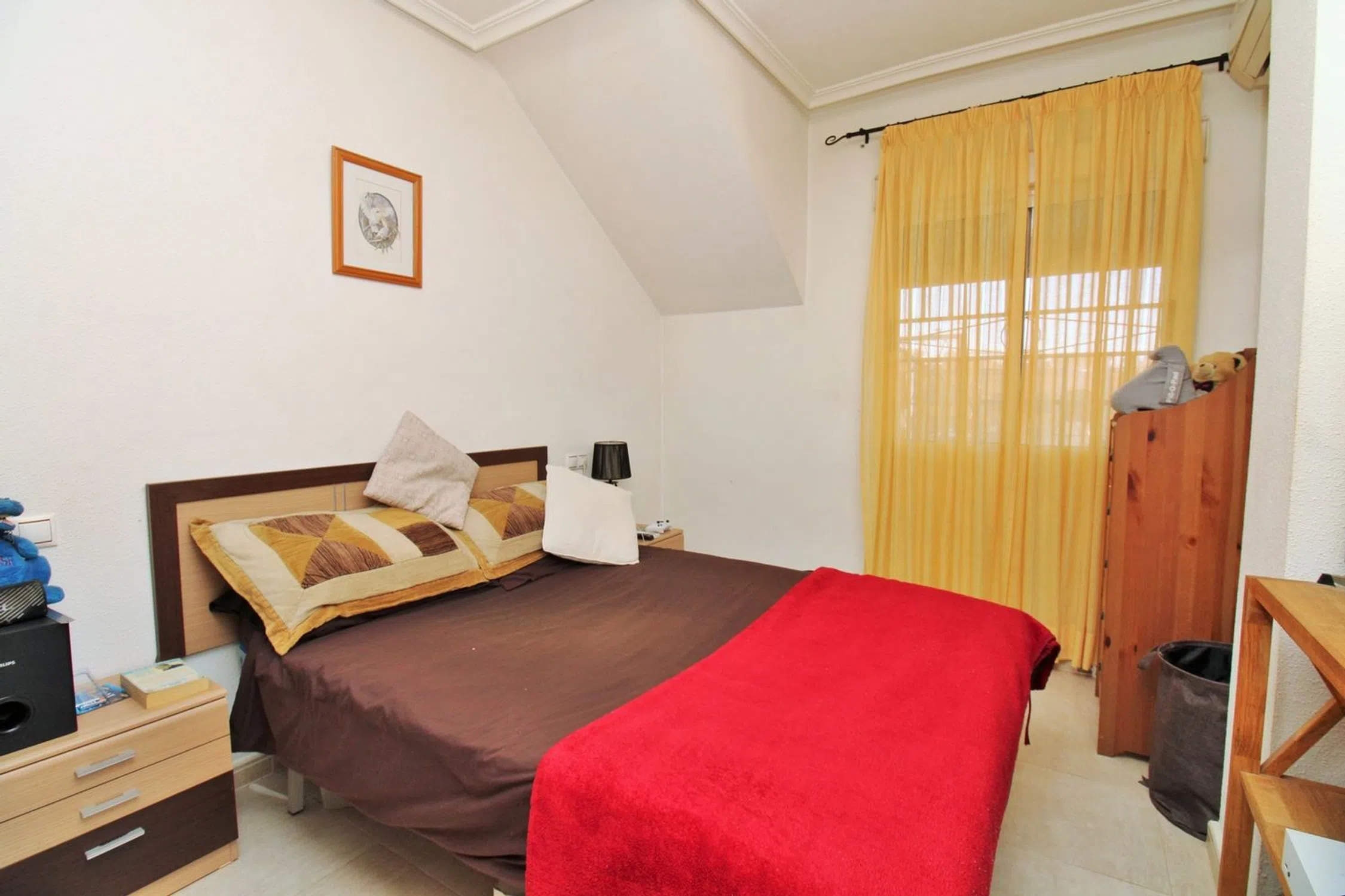 Ático luminoso orientado al sur con dos dormitorios, dos baños y un amplio solárium privado en la azotea, ubicado en la codiciada comunidad Dream Hills II en Los Altos, Orihuela Costa. Disfrute del sol todo el día gracias a su orientación ideal, con acceso a una piscina comunitaria y aparcamiento. Convenientemente situado a poca distancia de un supermercado y del centro comercial Via Park III, que ofrece una variedad de bares, restaurantes y tiendas. El apartamento cuenta con un salón-comedor bien proporcionado, una cocina independiente en la parte trasera, dos dormitorios con armarios empotrados y dos baños. En el pasillo hay armarios adicionales. Las puertas francesas del salón se abren a un balcón cubierto orientado al sur, con una escalera exterior que conduce al impresionante solárium privado en la azotea, un espacio ideal para barbacoas, entretenimiento o simplemente para tomar el sol. Se vende amueblado y equipado con aire acondicionado. Dream Hills II se encuentra en la frontera entre Orihuela Costa y Torrevieja (Los Balcones), lo que proporciona un excelente acceso a la autopista AP-7 y a la carretera costera N-332. El aeropuerto de Alicante está a menos de 45 minutos en coche. Se recomienda una visita temprana.
