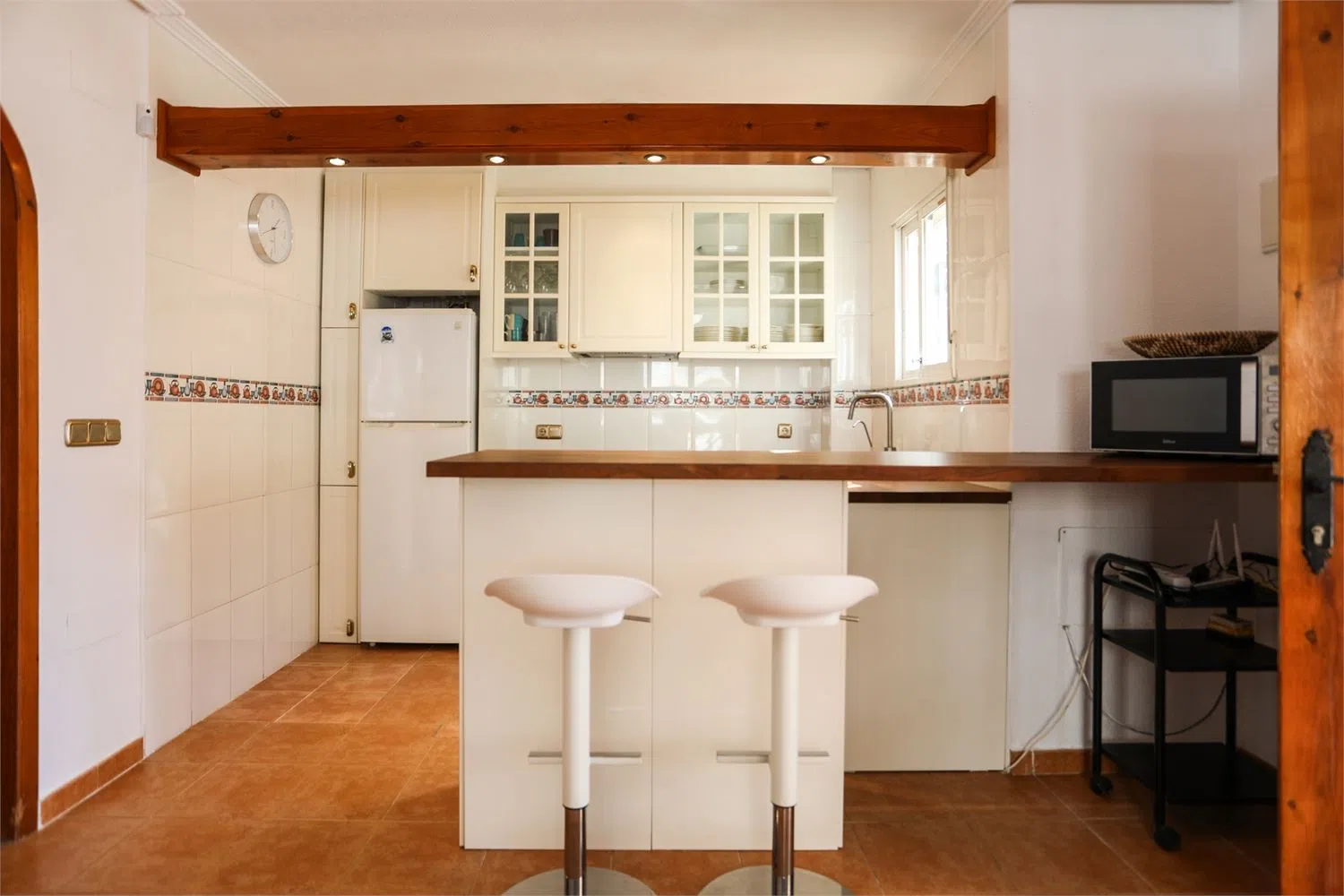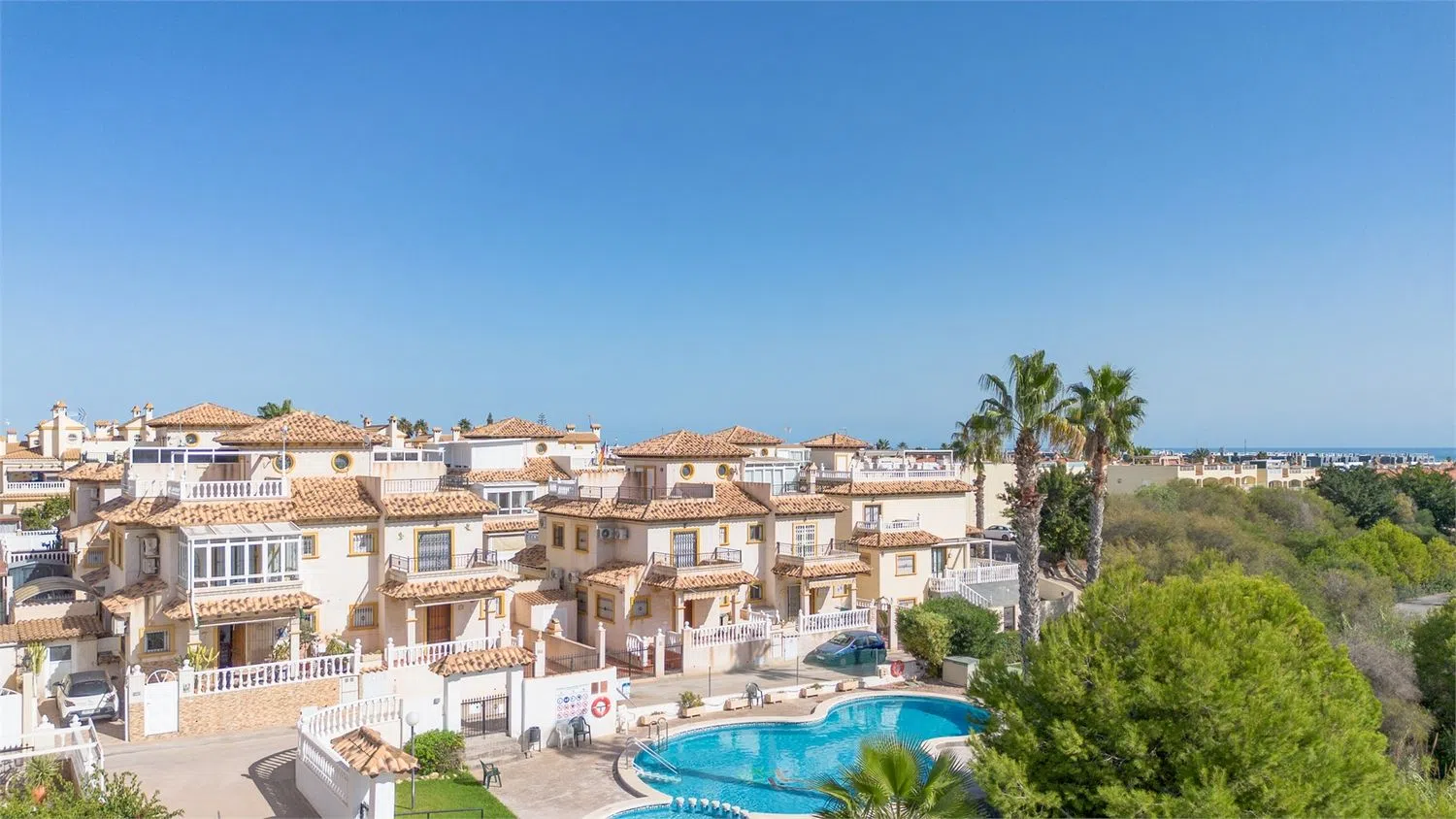 Las paredes, pintadas de un blanco radiante, están acentuadas con elegantes detalles en madera, creando un ambiente acogedor y sofisticado. La propiedad está dotada de aire acondicionado y ventiladores de techo, garantizando confort en todas las temporadas. También dispone de una impresionante terraza en la azotea, donde se puede disfrutar de vistas a los exuberantes alrededores y a la piscina comunitaria, ideal para momentos de relajación y esparcimiento.