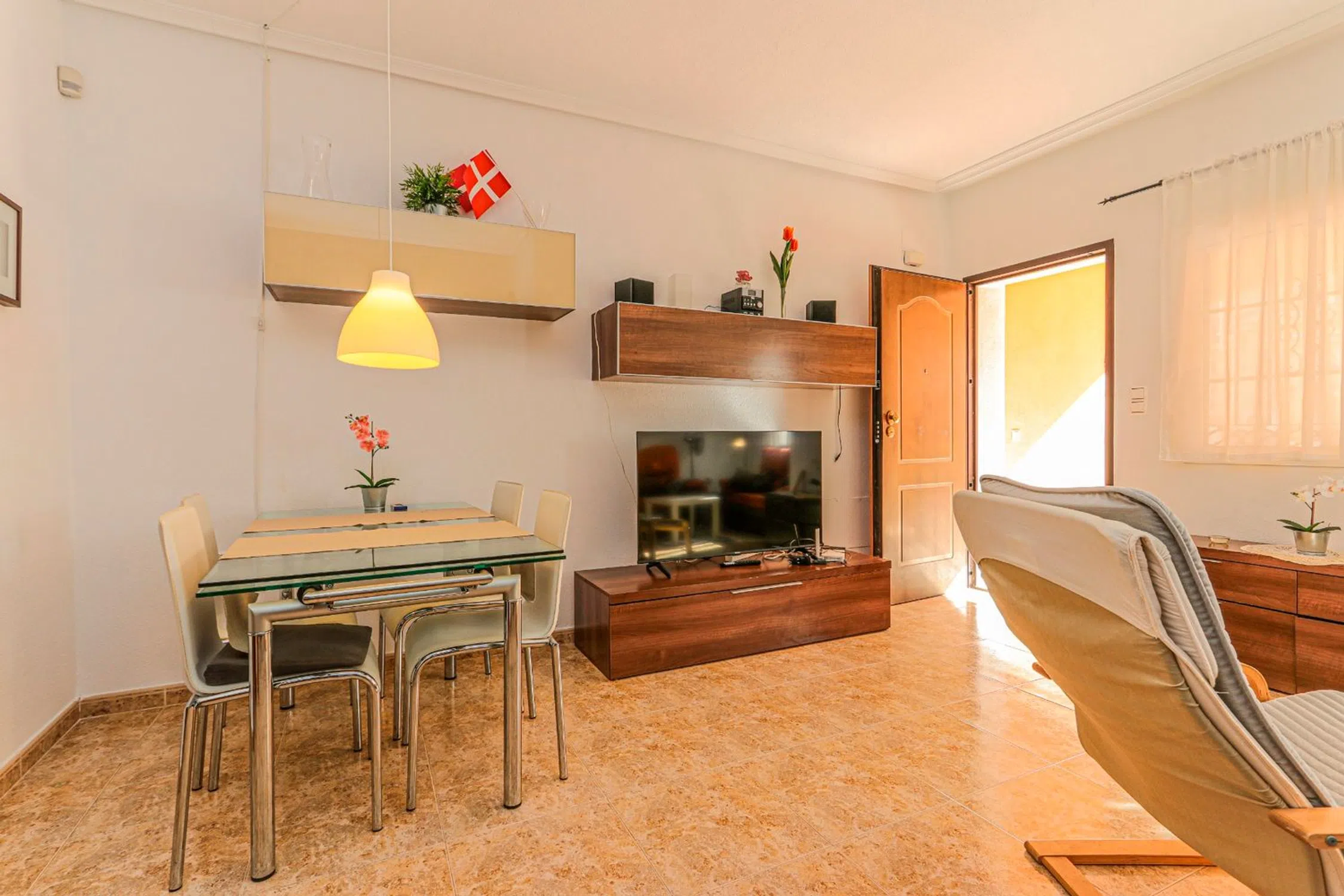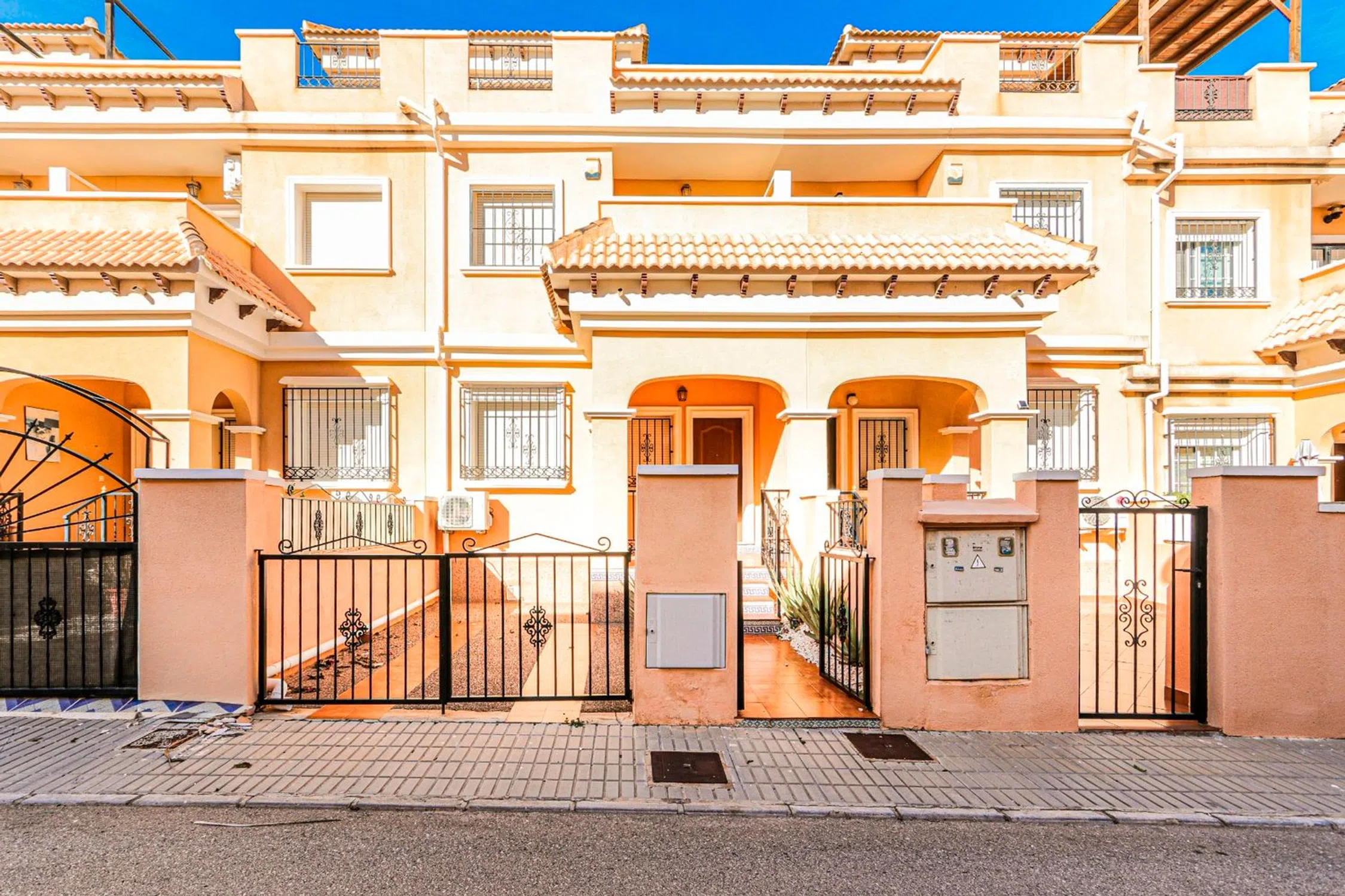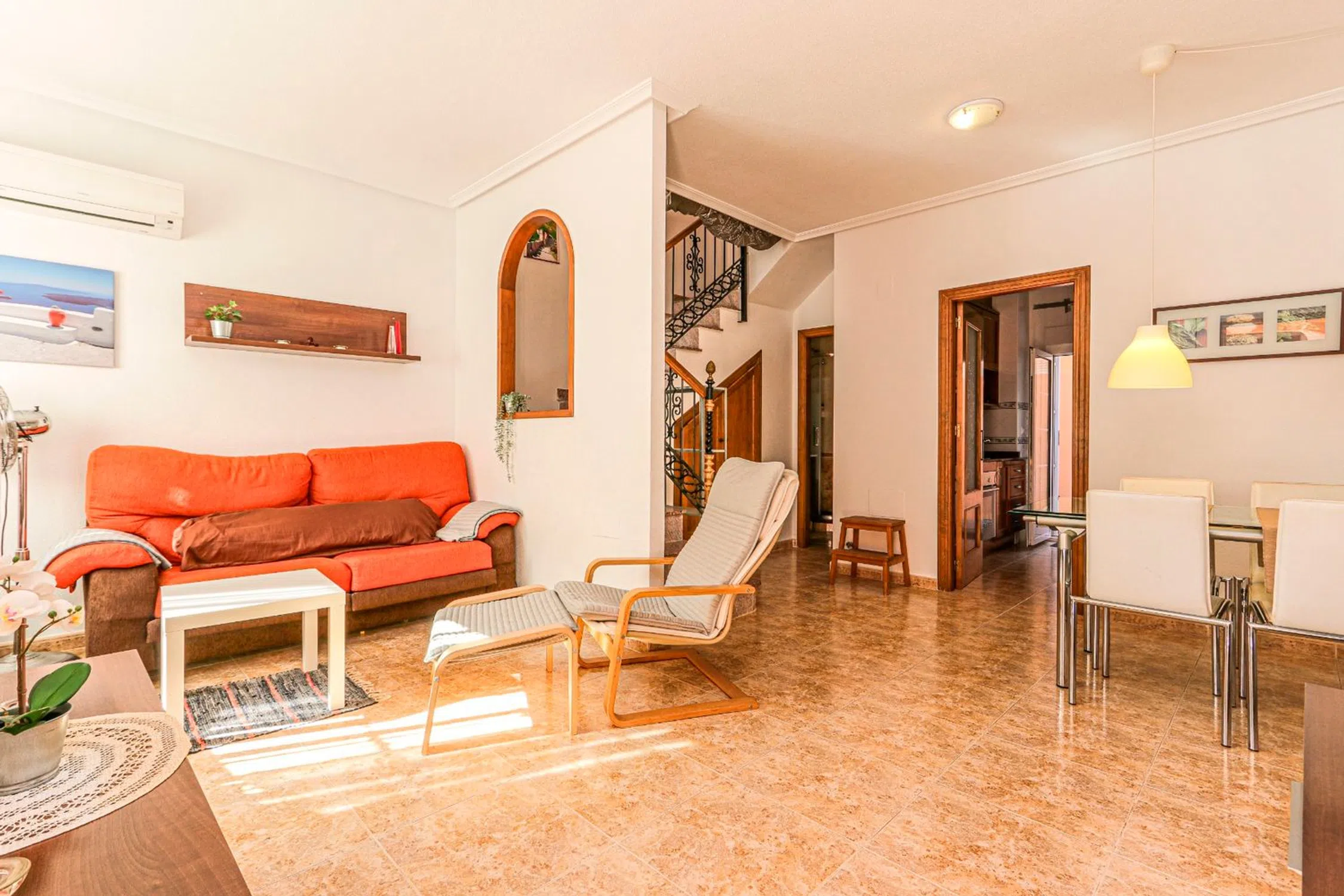 Preciosa casa adosada de 3 dormitorios y 2 baños con orientación sur e impresionantes vistas al lago salado, ubicada en Orihuela Costa, Los Almendros. ¡A pocos minutos a pie de los servicios y a 8 minutos en coche de la playa de Punta Prima, esta encantadora casa familiar está ahora a la venta! Al entrar, le da la bienvenida una amplia y luminosa sala de estar. La espaciosa cocina independiente, bien equipada, se abre a la terraza trasera. En la planta baja, detrás de las escaleras, hay un baño completo con ducha, inodoro, lavabo y ventana. El primer piso incluye 3 dormitorios y un baño familiar equipado con bañera. Todos los dormitorios tienen armarios empotrados y el dormitorio principal tiene su propio balcón privado. Las escaleras conducen a un solárium soleado que ofrece impresionantes vistas del lago salado. La propiedad tiene conexión de gas natural y preinstalación de calefacción central. La piscina comunitaria es perfecta para refrescarse en los calurosos días de verano. Los costos anuales incluyen un impuesto Suma de aproximadamente €400 y tarifas comunitarias de €250. ¡No olvide programar su visita con nosotros!