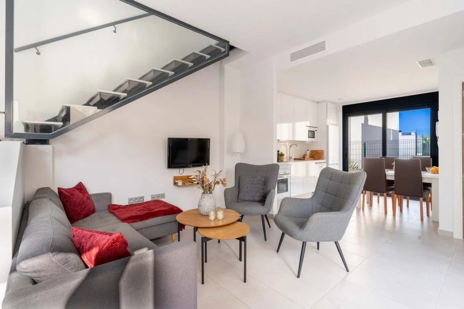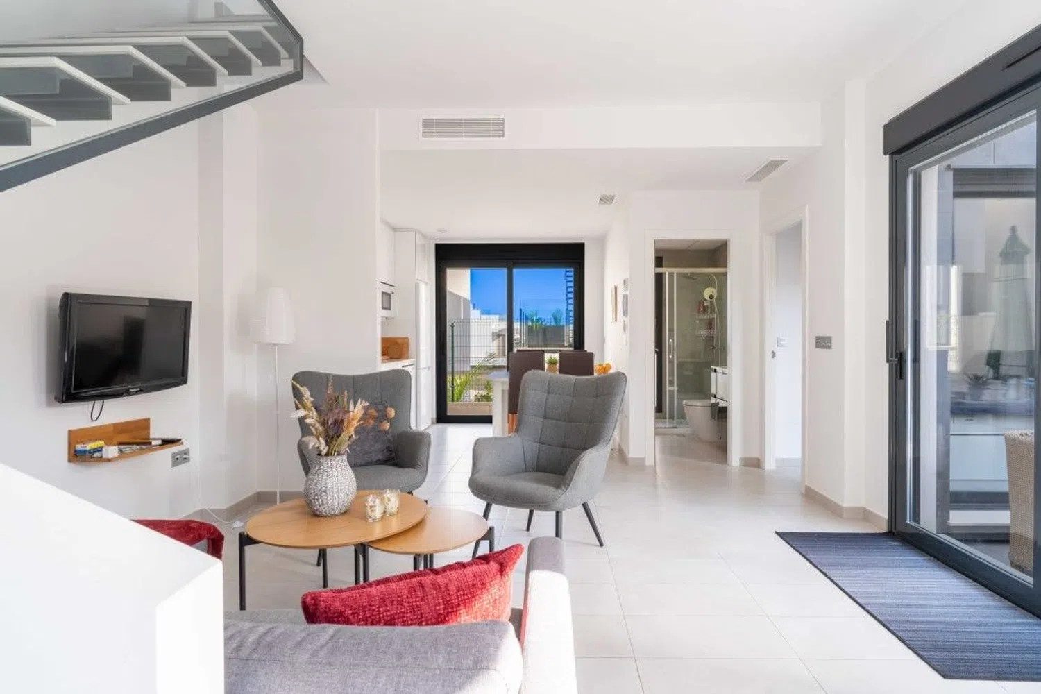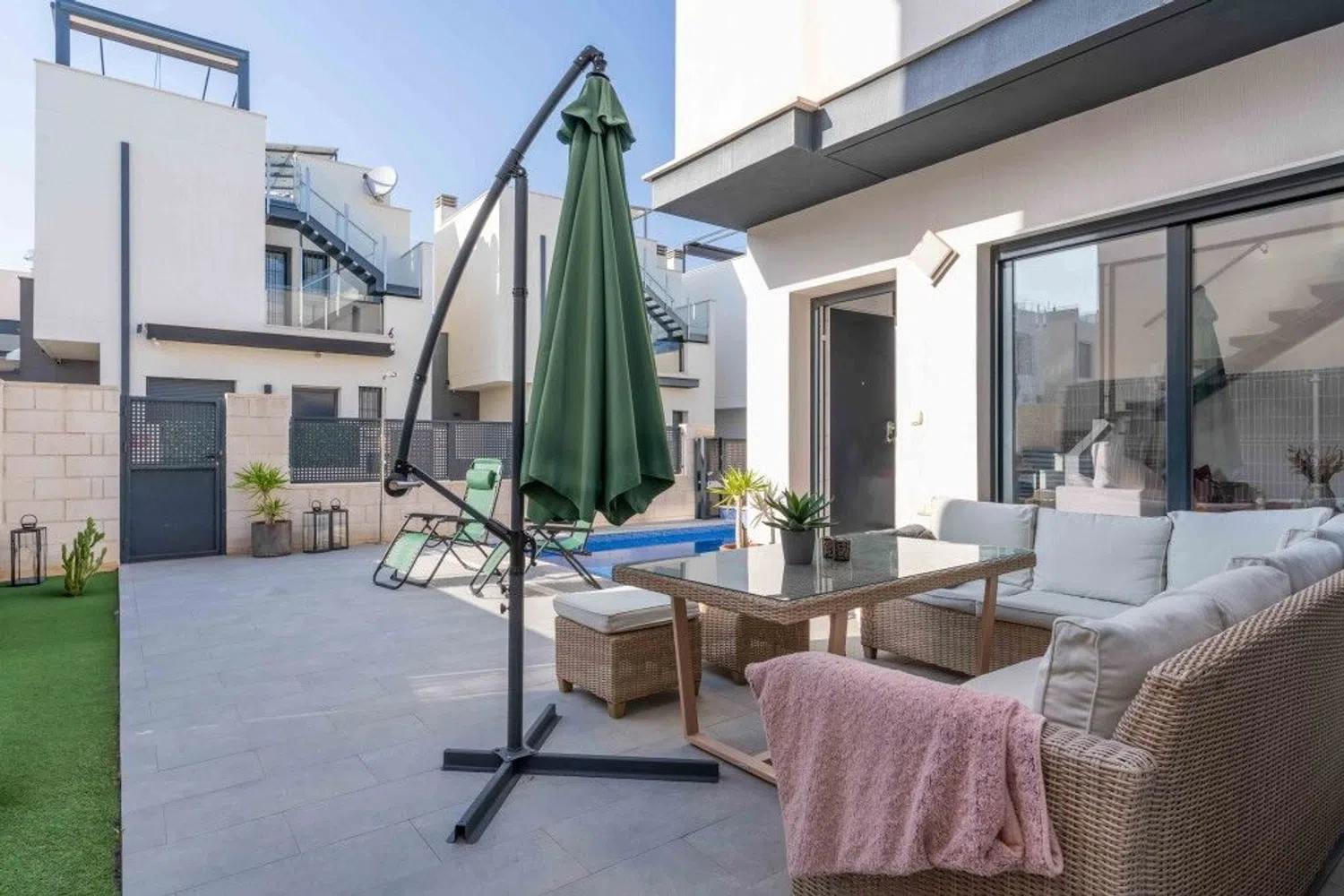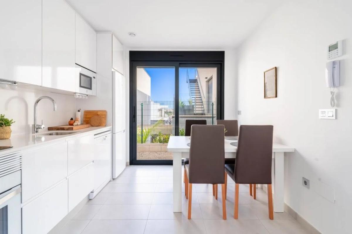 Descubra esta moderna villa en el complejo Tindra Homes, El Mirador - una elegante residencia con todas las comodidades que pueda desear. Encontrará tres amplios dormitorios y dos elegantes cuartos de baño con calefacción por suelo radiante para mayor comodidad. La casa tiene una planta luminosa y abierta que conecta a la perfección la cocina y el salón, creando un ambiente acogedor. En el exterior, le esperan soleadas terrazas, perfectas para disfrutar del sol durante todo el año, así como una piscina privada y una zona de piscina comunitaria para momentos de relax. La villa también ofrece un práctico aparcamiento directamente en la parcela y una terraza en la azotea con impresionantes vistas al lago salado. La ubicación es ideal - usted está a poca distancia de los servicios y puede llegar fácilmente a las playas con bandera azul y La Zenia Boulevard en pocos minutos en coche. ¡Bienvenido a ponerse en contacto conmigo para obtener más información y ver!
