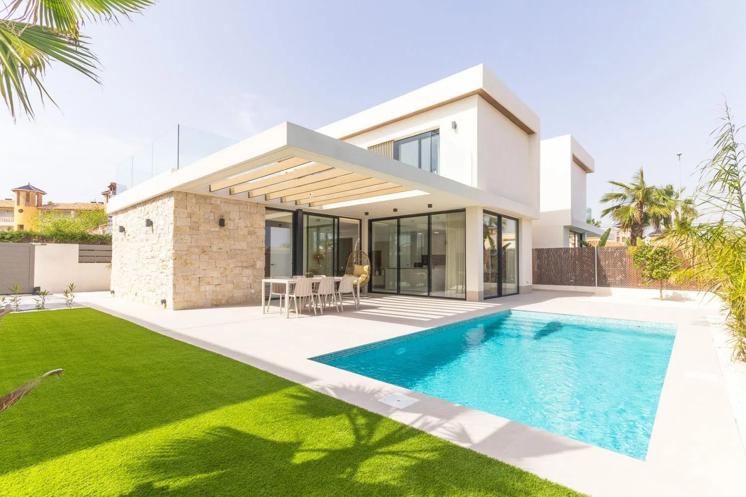 Se vende Villa de 3 dormitorios 3 baños, piscina privada, jardin, solarium. Villa tiene solarium privado, en la primera planta esta aseo, gran salos, cocina, dormitorio con baño. Vivienda se encuentra en Orihuela costa ( Alicante ) Las Lomas de Cabo Roig. Aeropuerto de Alicante esta a 40 minutor en el coche, unos 45 kilometros. Las mejores playas de Orihuela Costa estan a 10 minutos en el coche. Cerca de la vivienda esta Supermercado, tiendas, gasolineras, bares, etc.