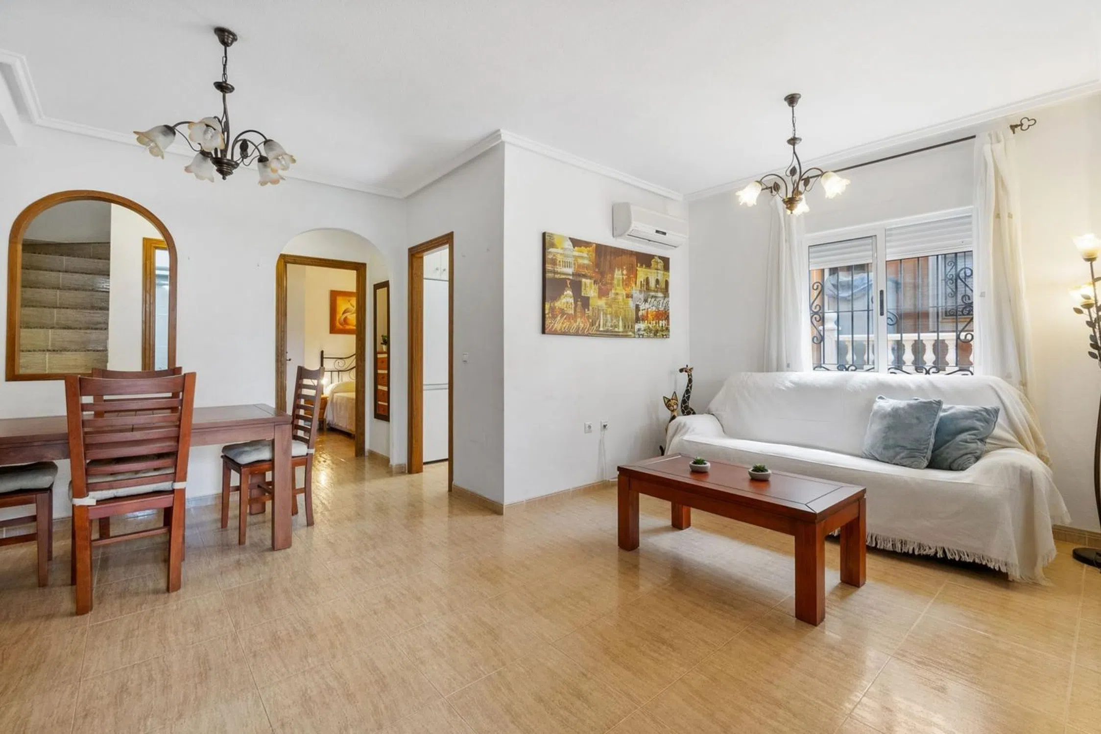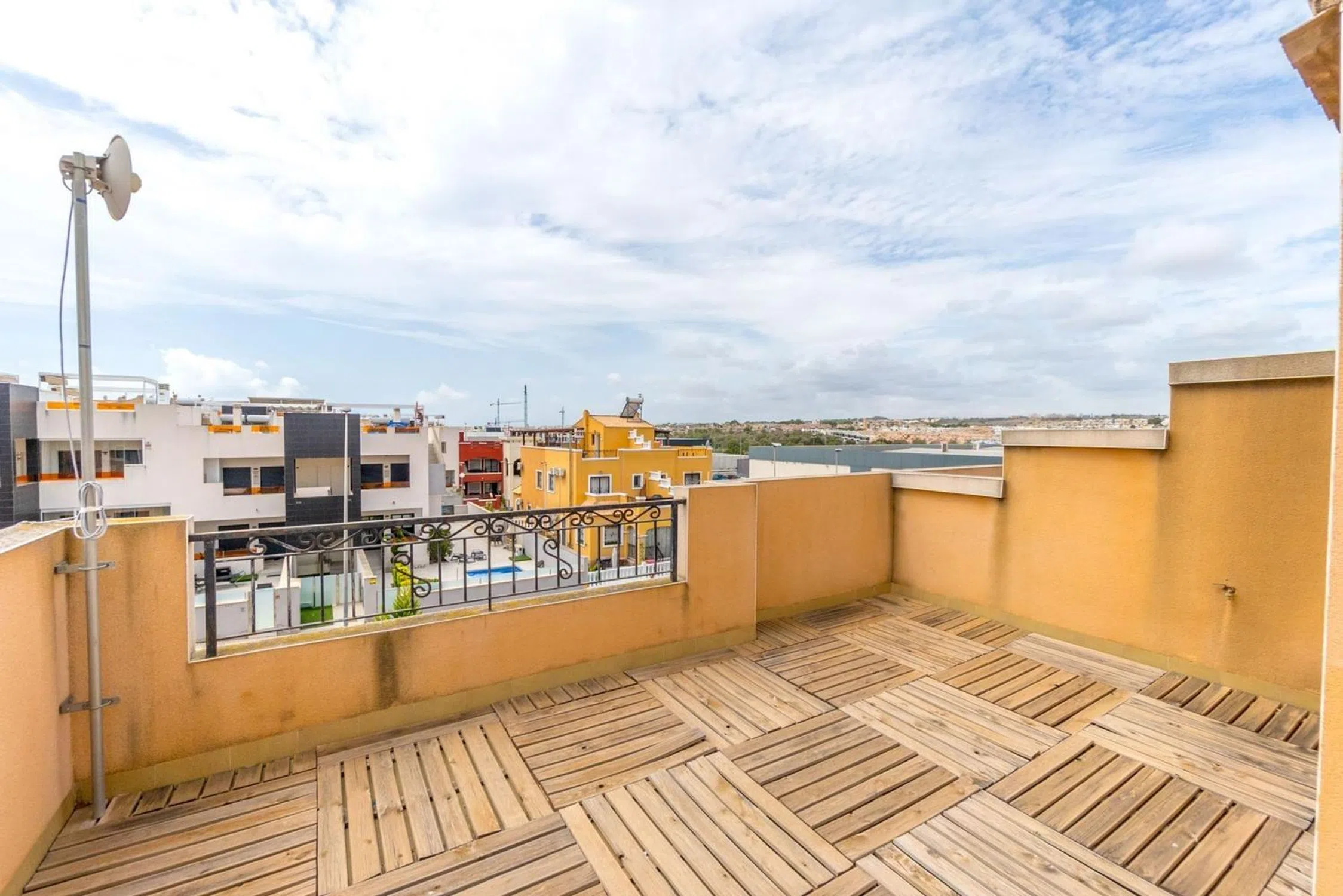 Nos complace presentar esta acogedora y espaciosa casa adosada (tipo quad) en Dream Hills II, una zona bien establecida y popular en Los Altos, perfecta para quienes buscan una casa de vacaciones al sol o un hogar cómodo para vivir todo el año. La vivienda tiene una distribución bien pensada y cuenta con tres plantas, donde la tercera es un generoso solarium y ofrece tanto comodidad como mucho espacio: Planta baja: Gran jardín embaldosado con pérgola, salón-comedor luminoso y acogedor, cocina independiente con buen espacio de almacenamiento, un dormitorio y un baño. Primera planta: Dos dormitorios y un baño. El dormitorio principal tiene salida a una terraza privada con vistas despejadas. Segunda planta: Solárium privado, perfecto para días soleados, barbacoas y agradables veladas. Amplio jardín embaldosado orientado al sur con pérgola, con espacio más que suficiente para una mesa de comedor, tumbonas o una zona de estar agradable — aquí se puede disfrutar de la vida al aire libre durante todo el día y la noche. Además, hay un trastero grande con mucho espacio de almacenamiento. La vivienda se vende completamente amueblada y está lista para entrar a vivir — ¡solo hay que traer la maleta! Las zonas comunes incluyen una bonita piscina con áreas verdes para relajarse y socializar. La ubicación también es una gran ventaja — en un entorno tranquilo, pero a poca distancia a pie de tiendas, restaurantes, farmacia y transporte público. Muy cerca del centro de Torrevieja y de las hermosas playas de Orihuela Costa. Esta es una vivienda con mucho encanto y mucho espacio exterior — para tomar el sol, disfrutar de la vida social o relajarse en paz. ¡Contáctanos hoy para más información o para concertar una visita o videovisita!