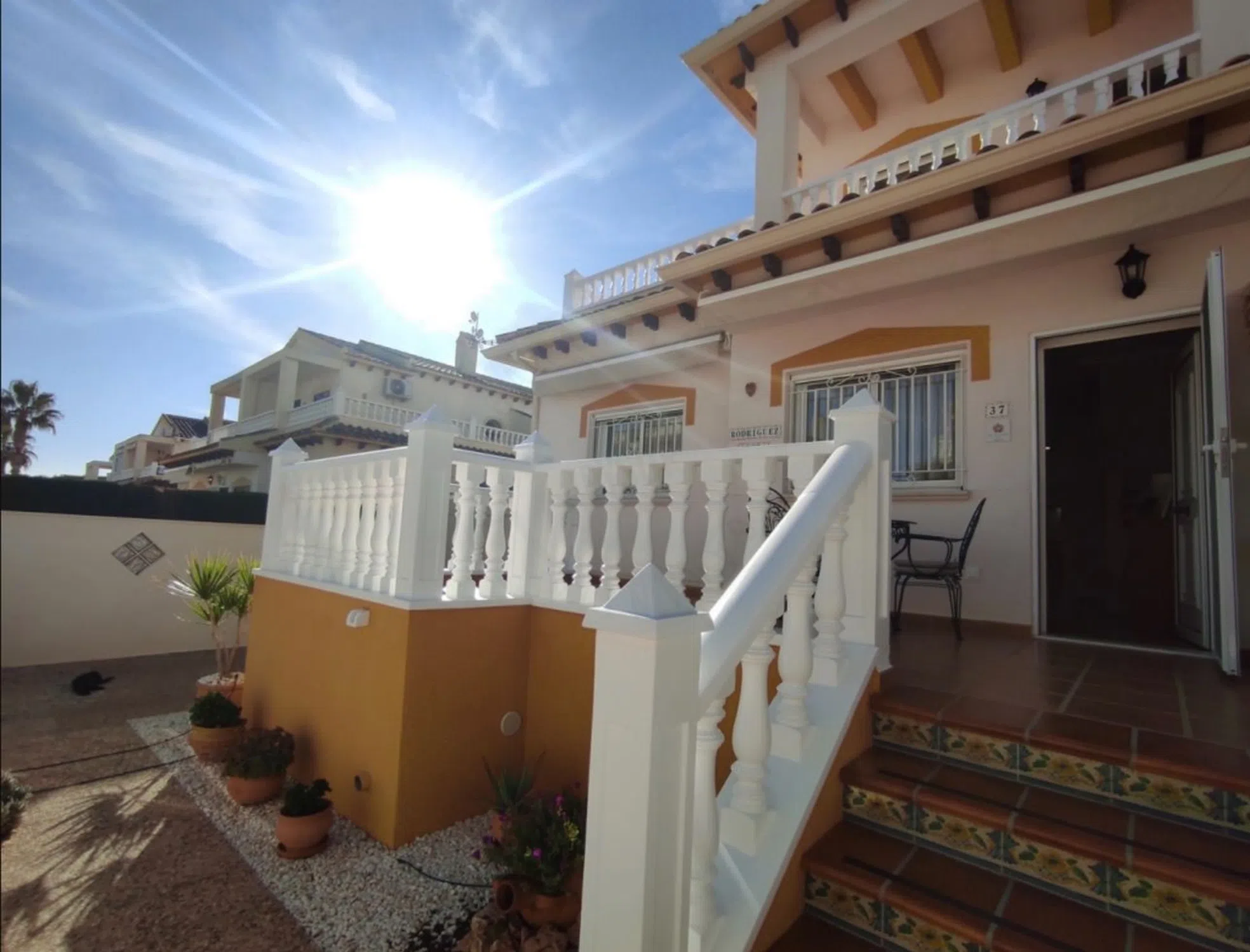 Precioso dúplex en el corazón de Playa Flamenca, perfecto como apartamento de vacaciones o como residencia permanente. Consta de 2 dormitorios con armarios empotrados dobles, 2 baños con WC y ducha/bañera. Cocina, comedor y sala de TV. Trastero en la terraza superior y trastero (bajo) en el sótano debajo de la terraza. A/C en el salón y ambos dormitorios, ventilador de techo eléctrico/luz en la cocina/comedor. Vivienda súper céntrica con acceso a pie a todas las tiendas y restaurantes, y a 12 minutos de la playa más cercana. Go-kart, parque acuático y parque zoológico en las inmediaciones. La Zenia Boulevard está a 5 minutos a pie; un paraíso de compras para adultos y niños, así como un parque infantil con fuentes para los más pequeños. La vivienda está a solo 40 minutos del aeropuerto de Alicante.