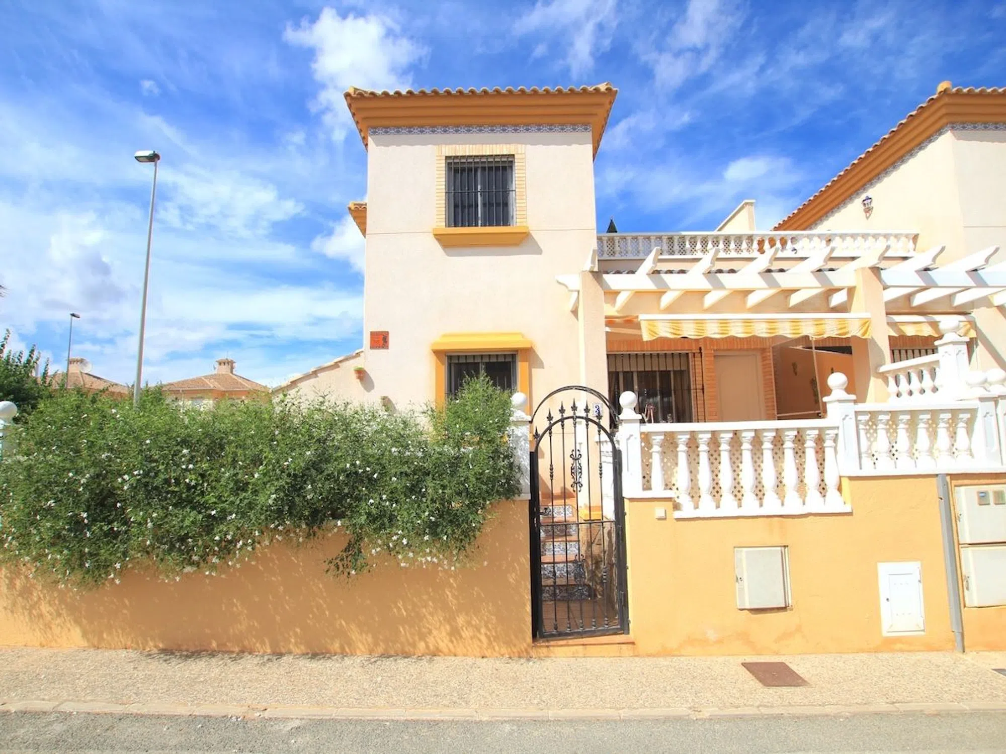 Casas Manuel Real Estate. Aquí tenemos una encantadora y espaciosa casa de esquina de tres dormitorios en venta en la solicitada zona PAU 8 de Villamartín. Ubicada en una exclusiva comunidad residencial con una mezcla de nacionalidades (Residencial Inspiración II), esta propiedad cuenta con una maravillosa piscina comunitaria y jardines bellamente mantenidos. Un tranquilo paseo de 12 minutos lo llevará a la animada Plaza de Villamartín, que ofrece una fantástica selección de bares y restaurantes para disfrutar. La propiedad se encuentra en una parcela de esquina más grande que el promedio, con estacionamiento fuera de la carretera y mucho espacio al aire libre. Distribuida en dos niveles, las áreas de estar y dormitorio ofrecen un amplio espacio. En la planta baja, encontrará un generoso salón-comedor que conduce a una gran cocina de planta abierta, lo que garantiza mucho espacio de trabajo y almacenamiento. Esta planta también incluye dos dormitorios de invitados con armarios empotrados y un amplio baño familiar. Una elegante escalera lo lleva al primer piso, donde se encuentran el dormitorio principal y un cuarto de baño con ducha. Desde el rellano superior, tiene acceso directo a una sala de invierno y una impresionante terraza para tomar el sol, ¡ideal para disfrutar del sol! En el exterior, disfrute de una espaciosa terraza elevada con toldos para el sol, junto con un gran jardín lateral y estacionamiento fuera de la carretera. Con su tamaño generoso y su cercanía a cuatro importantes campos de golf, ¡esta encantadora casa de tres dormitorios en Villamartín es una opción perfecta para un retiro lleno de sol! Viene mayormente amueblada e incluye aire acondicionado para brindar comodidad durante todo el año. Villamartín es una zona residencial popular ubicada en la Costa Blanca Sur (Provincia de Alicante). El área ha experimentado un importante desarrollo en los últimos 10-15 años y ahora cuenta con una comunidad multinacional. Villamartín tiene una amplia selección de servicios y comodidades a mano junto con los maravillosos campos de golf de Las Ramblas, Las Colinas, Campoamor y el mundialmente famoso campo de Camo De Golf Villamartín, que fue sede del Abierto del Mediterráneo de 1994. A un corto trayecto en coche llegará al centro comercial Zenia Boulevard, donde tiene una amplia selección de minoristas de la calle principal, incluidos Zara, Primark, Massimo Dutti, H&M, Bershka, Mango, Dectahlon y muchos más. También hay un barrio de comida en el nivel superior donde puede elegir entre restaurantes españoles e internacionales.