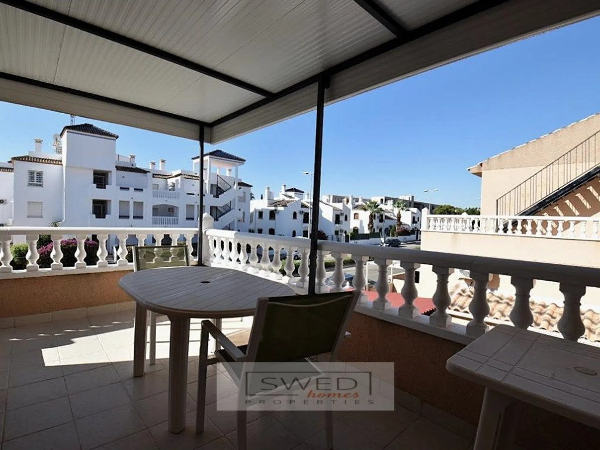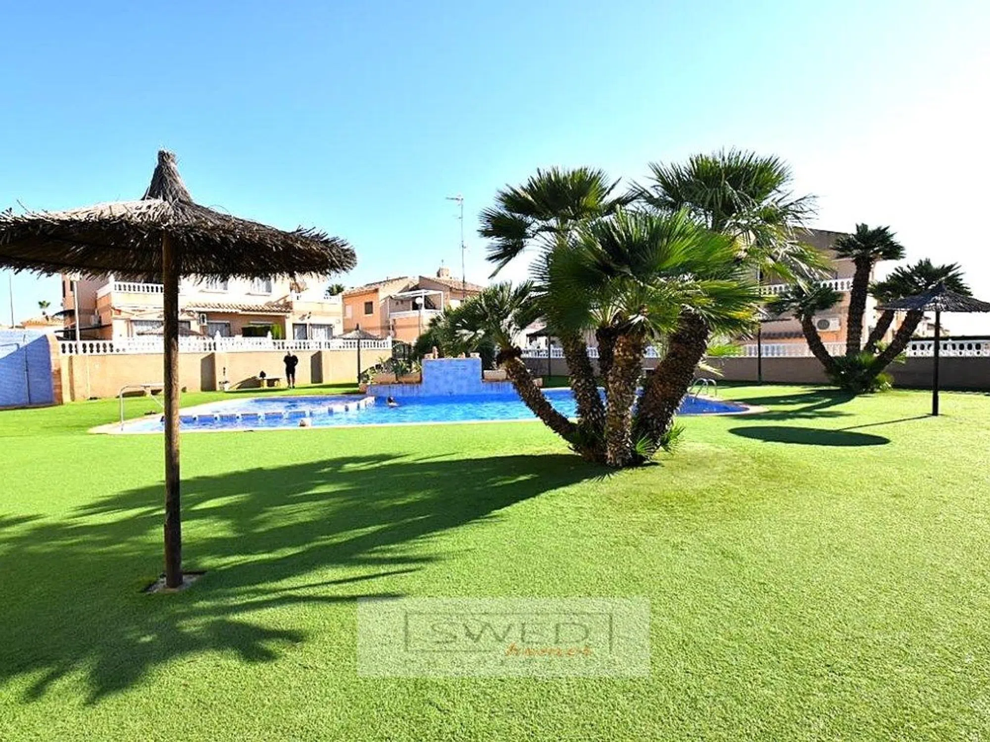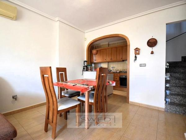 Vienda pareada muy soleada gracias a su orientación sureste. Consta de dos plantas + solárium. En la planta baja encontramos un dormitorio, un baño completo, trastero y salón con cocina americana. Gran terraza delantera con entrada para el coche. En la primera planta hay dos dormitorios un baño completo y terraza cubierta desde la cual que se accede al solárium. Se encuentra muy bien ubicad, a tan sólo 1,5km de la popular Villamartín Plaza donde podemos encontrar supermercado, banco, bares y restaurantes, a menos de 2km del Club de Golf Villamartín. A 3,5km está la Playa de La Zenia, aeropuerto más cercano a 50km. La urbanización dispone de una bonita piscina comunitaria con cesped artificial y palmeras. Se vende amueblada y con electrodomésticos, lista para entrar a vivir. ref: SH529.