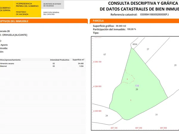 Terreno rústico en Torremendo (Orihuela) frente Embalse de la Pedrera con posibilidad de construcción de vivienda unifamiliar con ocupación máxima de 2% y edificabilidad 5%. Excelente ubicación: - 1 km del núcleo urbano de Torremendo. - 0.5 km del embalse de la Pedrera. - 11 km de San Miguel de Salinas. - 14 km de Orihuela - 20 km de Pilar de la Horadada - 30 km de Murcia Y a 20 minutos de la playa de Mil Palmeras.