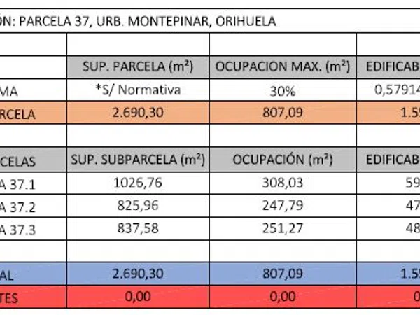 Parcelas desde 825.96 m2 con todos los servicios urbanísticos. Situada en urbanización Montepinar a 5’ de la A7 y 10’ al centro de Orihuela. La Edificabilidad es del 57.91% con una ocupación máxima de parcela del 30%. Puede construir su vivienda unifamiliar de planta baja y 1ª con piscina. También le ofrecemos la posibilidad de estudiar, desarrollar el proyecto que necesite y encargarnos de llevar a cabo toda su ejecución hasta el último detalle. Listo para su uso antes de la entrega de llaves.