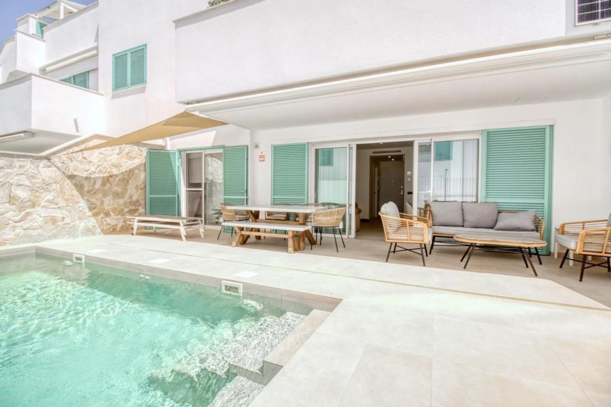 CHALET ADOSADO CON PISCINA PRIVADA, 2 TERRAZAS Y SOLARIUM PRIVADO CON VISTAS A LA PISCINA VIVIENDA: (REF: AJ028) 106㎡ Construidos150 METROS del MAR3 DORMITORIOS, 2 BAÑO RENOVADOS AMBO...