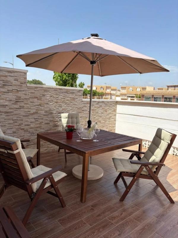 ¡Adosado cerca de la playa! En Torre de la Horadada, tenemos el placer de presentar este luminoso y espacioso adosado con una codiciada orientación sur, ¡a solo 400 metros del mar Mediterrán...