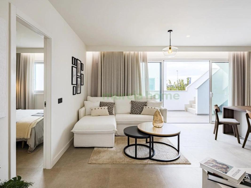 Os presento este maravilloso y lujoso bungalows en planta alta y distribuido en salon comedor, terraza, cocina americana, 2 habitaciones con armarios, piscina comunitaria y jardin, gareje pr...