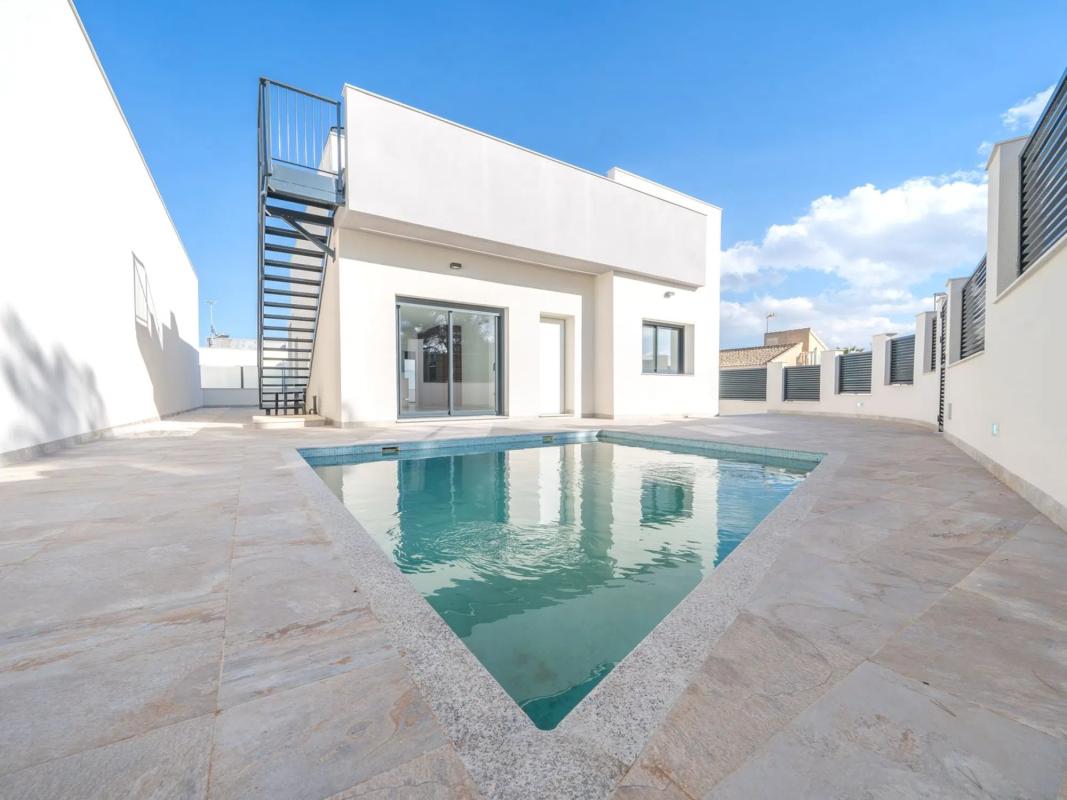 Huspy presenta este moderno chalet independiente de 3 habitaciones 2 baños con piscina en una parcela de 337 m2. En una urbanización tranquila de Pilar de la Horadada ( Pinar de campo verde...