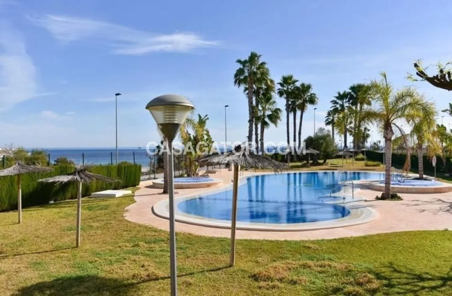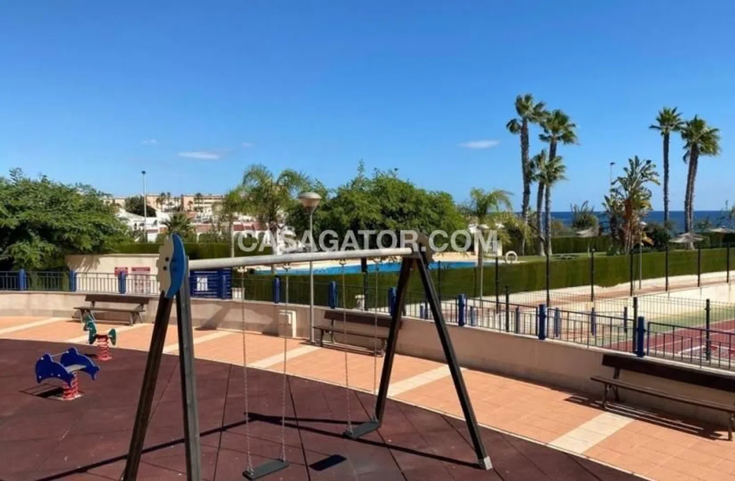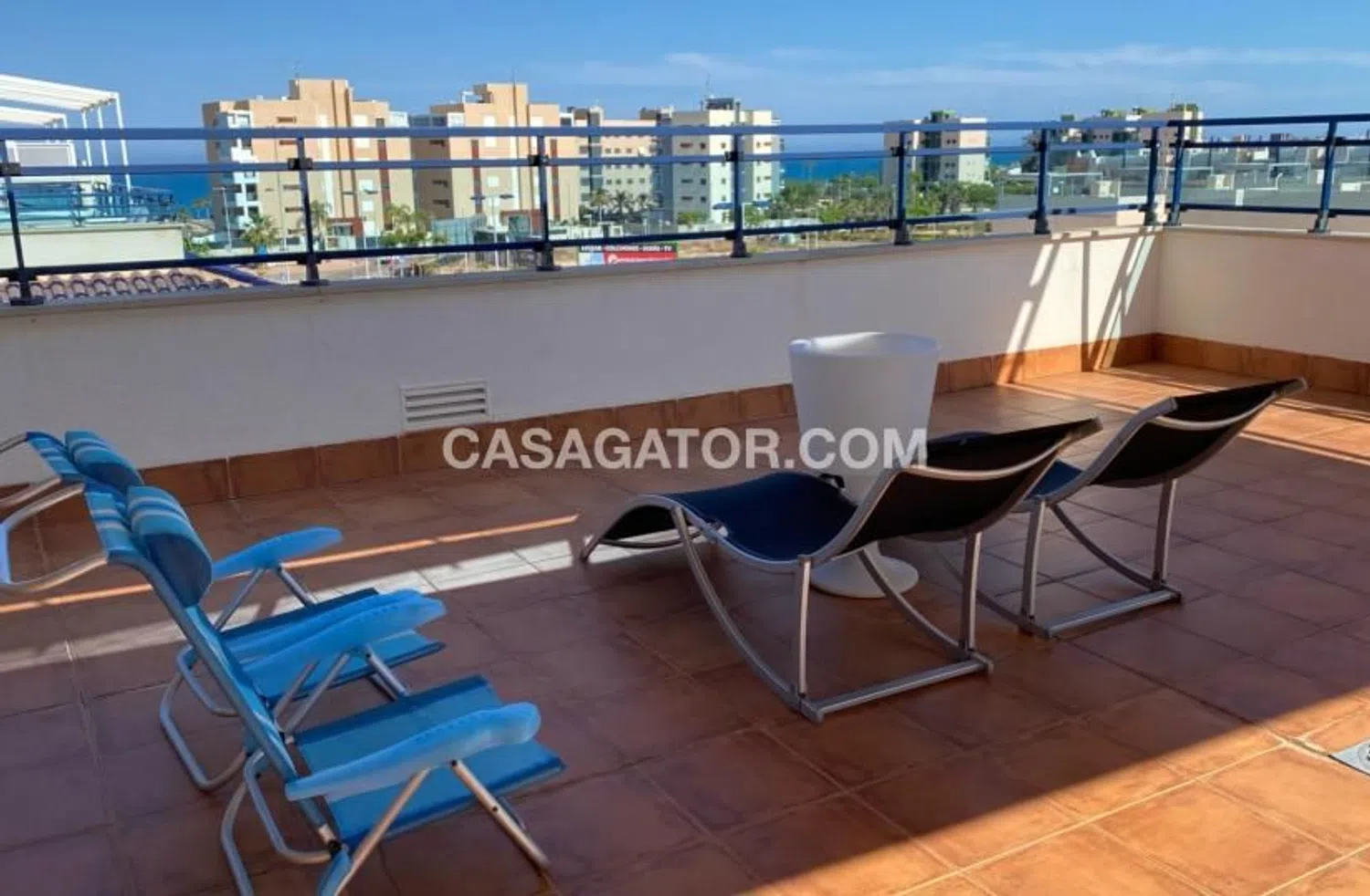 Apartamento de 2 dormitorios y 1 baño en Torre de la Horadada (Mil Palmeras), Alicante. Descubre el refugio costero de tus sueños en este precioso ático esquinero ubicado en la vibrante zona de Mil Palmeras de Torre de la Horadada. Este acogedor apartamento de 2 dormitorios y 1 baño ofrece una amplia sala de estar que combina a la perfección comodidad y estilo. Disfruta del sol desde tu terraza privada o sube al amplio solárium, donde te esperan impresionantes vistas al mar. El solárium es tu oasis personal, perfecto para tomar el sol, organizar barbacoas o simplemente relajarte bajo la pérgola. Con un práctico trastero y una plaza de aparcamiento subterráneo incluida, cada detalle de esta propiedad está diseñado para un estilo de vida sin preocupaciones. A solo 300 metros de la playa, podrás disfrutar de la refrescante brisa marina. Además, a solo 500 metros a pie encontrarás una amplia variedad de cafeterías y restaurantes con encanto, que te ofrecen deliciosas opciones gastronómicas. Este ático, con jardines y piscina comunitaria, está completamente amueblado y equipado con aire acondicionado para su comodidad. Disfrute de la tranquilidad y la accesibilidad en esta ubicación idílica. ¡No pierda la oportunidad de adquirir un trocito de paraíso! Dormitorios: 2 Baño: 1 Superficie construida: 84 m² Jardín comunitario Piscina comunitaria Amueblado Ascensor Vistas al mar Aire acondicionado Balcón Acceso para personas con movilidad reducida Garaje.