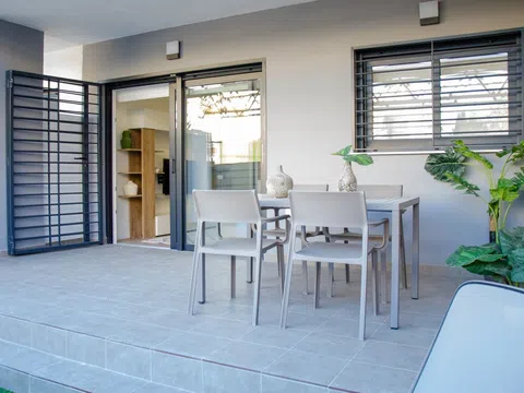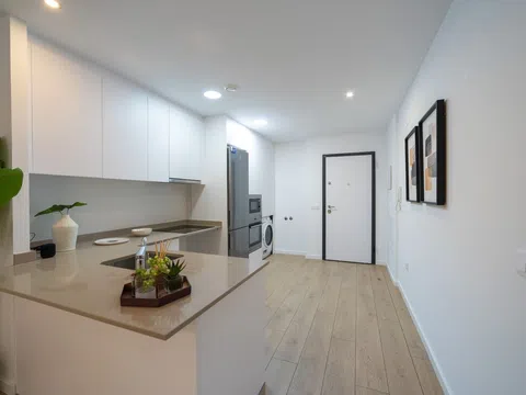 Este apartamento de 1 dormitorio, 1 baño, terraza, solárium y aparcamiento incluido se encuentra en un nuevo residencial diseñado para ofrecer un estilo de vida tranquilo y seguro, con servicios de teleasistencia integrados las 24 horas directamente en cada apartamento. Este sistema proporciona atención continua, movilización de servicios de emergencia y aviso a contactos, garantizando la tranquilidad de quienes buscan vivir de manera independiente pero con la seguridad de contar con asistencia en todo momento. Características destacadas del apartamento: EXCELENTE ORIENTACION: Orientación oeste, lo que garantiza una excelente luminosidad natural. Esta orientación es una de las más demandadas por nuestros clientes internacionales, ya que pueden disponer de muchas horas de sol. ACCESIBILIDAD Y DISEÑO MODERNO: El apartamento cuenta con un diseño funcional y moderno, con cocina abierta al salón para un ambiente más integrado. Además, se han eliminado las barreras arquitectónicas, con caminos interiores accesibles mediante suaves rampas. Armarios empotrados en todos los dormitorios para un aprovechamiento óptimo del espacio. Plaza de aparcamiento: Incluye una plaza de aparcamiento en sótano. Además, cuentan con un solárium privativo, ideal para disfrutar del aire libre con cancela, grifo, desagüe, iluminación y enchufes eléctricos. * El precio del apartamento no incluye mobiliario, que se puede elegir entre dos estilos diferentes con precios distintos. Zonas comunes y más ventajas: Piscina y gimnasio: Podrás disfrutar de las amplias zonas comunes, que incluyen una hermosa piscina con playa y un gimnasio totalmente equipado para mantenerte activo.La piscina comunitaria de 68 m2 de lámina de agua, revestida de gresite e iluminación interior, con escalera adaptada y silla hidráulica para personas con movilidad reducida.Salones y áreas sociales: El residencial cuenta con un salón comunitario perfectamente equipado, junto con una sala para fisioterapia y una sala de belleza, ofreciendo un ambiente perfecto para socializar o relajarte.Accesibilidad: Con dos accesos peatonales en diferentes puntos del perímetro de la urbanización, te será fácil llegar a cualquier parte del complejo. Además, dispones de aparcamiento de bicicletas en el sótano. Ubicación privilegiada: El residencial se encuentra en la tranquila y consolidada zona de Riomar-Mil Palmeras, dentro de la urbanización de Riomar, en una zona ideal para disfrutar de la serenidad, con fácil acceso a servicios y la playa.Cercanía a la playa de Mil Palmeras: A tan solo 10 minutos caminando por un agradable paseo rodeado de árboles, podrás disfrutar de la playa (aproximadamente 1,4 km). Además, contarás con restaurantes y supermercados cerca para tu comodidad.Actividades al aire libre: Disfruta de rutas de senderismo a través del cauce del Río Seco, una zona natural con áreas infantiles perfectas para toda la familia.Campos de golf cercanos: Si eres amante del golf, estarás a pocos minutos de varios campos de golf de renombre como Lo Romero Golf, Las Ramblas Golf, Golf Campoamor, Las Colinas Golf y Villamartín Golf (todos ubicados dentro de un radio de 6 km).Conexión con el mar: A solo 8 minutos en coche se encuentra el puerto deportivo de Torre de la Horadada y las hermosas playas de Campoamor. Además, la proximidad al Mar Menor (a tan solo 14 minutos en coche) te permitirá disfrutar de la mayor laguna de agua salada de Europa y los famosos baños de lodos de San Pedro del Pinatar.Servicios y comercios cercanos: La zona cuenta con supermercados como Mercadona (a 4 minutos en coche) y el Centro Comercial Zenia Boulevard (a 5 minutos en coche), donde podrás encontrar una amplia variedad de tiendas, restaurantes y entretenimiento.
