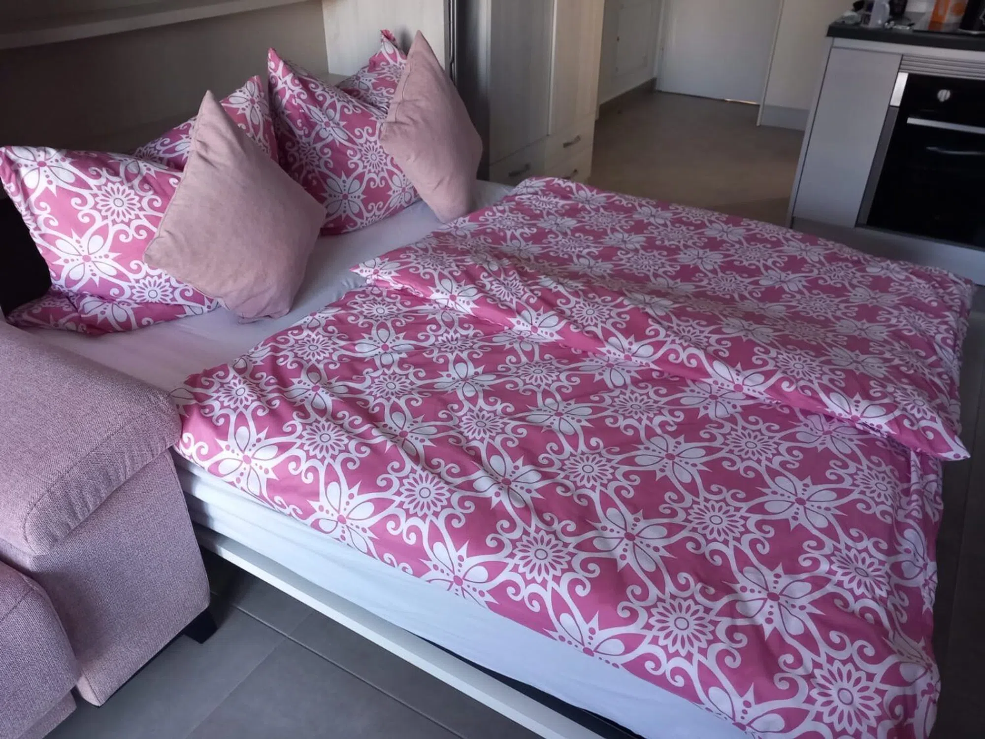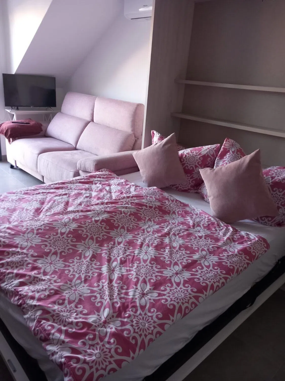 Fantástico estudio en Pilar de la Horadada Esta propiedad está bien situada en Pilar de la Horadada. Cuenta con un cuarto de baño con ducha, una moderna cocina equipada, una zona de estar/comedor y una cama de pared. Desde aquí, una escalera exterior conduce a la terraza de 36m² en la azotea. La propiedad está equipada con aire acondicionado y se vende completamente amueblada. Dispone de licencia turística.