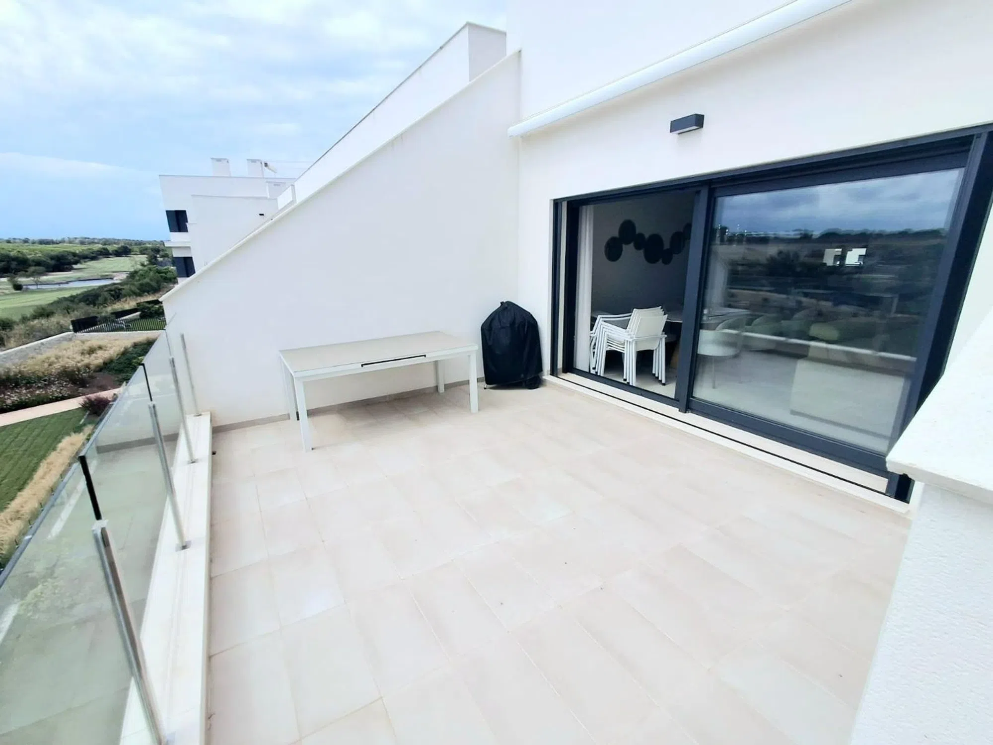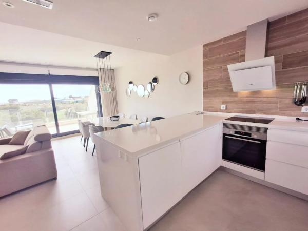 Imagínate vivir en este lujoso ático con solarium en la cotizada Urbanización de lo Romero Golf, que cuenta con uno de los Campos de Golf más visitados de la Comunidad Valenciana. La vivienda está dentro de un recinto comunitario, totalmente cerrado, protegido del exterior y cuenta con una excepcional piscina con vistas al campo de golf y al jardín. El edificio está dotado de ascensor, situándose el apartamento en la segunda planta del mismo. Éste cuenta con 3 habitaciones dobles, 2 baños, una amplia terraza que da a la piscina y al campo de golf, sin olvidarnos del magnífico solarium, con vistas al mar y al Campo de Golf, que tiene las mismas dimensiones que la vivienda y en el que podrás disfrutar de los más de 320 días de sol al año que nos brinda esta zona de la Costa Blanca. También dispone de plaza de garaje propia. Conforme entramos nos encontramos una cocina totalmente equipada y abierta al salón, el cuál se orienta hacia la terraza. Desde el salón accedemos a las 3 habitaciones dobles, la principal con un baño en suite, mientras que el segundo baño se sitúa entre las otras dos habitaciones. Se ofrece totalmente amueblado y equipado con electrodomésticos, aire acondicionado con sistema Airzone, estores, mosquiteras y toldo. Directamente para entrar a vivir. Todo lujo de modernos detalles complementan la decoración de este apartamento, lo que aporta una atmósfera cálida y elegante. Para los amantes del Golf será un sueño por su situación y las inmejorables vistas, pudiendo disfrutar de tranquilidad, sol y deporte en un mismo lugar. A unos pocos kilómetros podrán bañarse en las increíbles playas de arena fina de Las Higuericas y Torre de la Horadada. Reúne Golf, magnificas playas y todo tipo de servicios en pocos kilómetros a su alrededor.