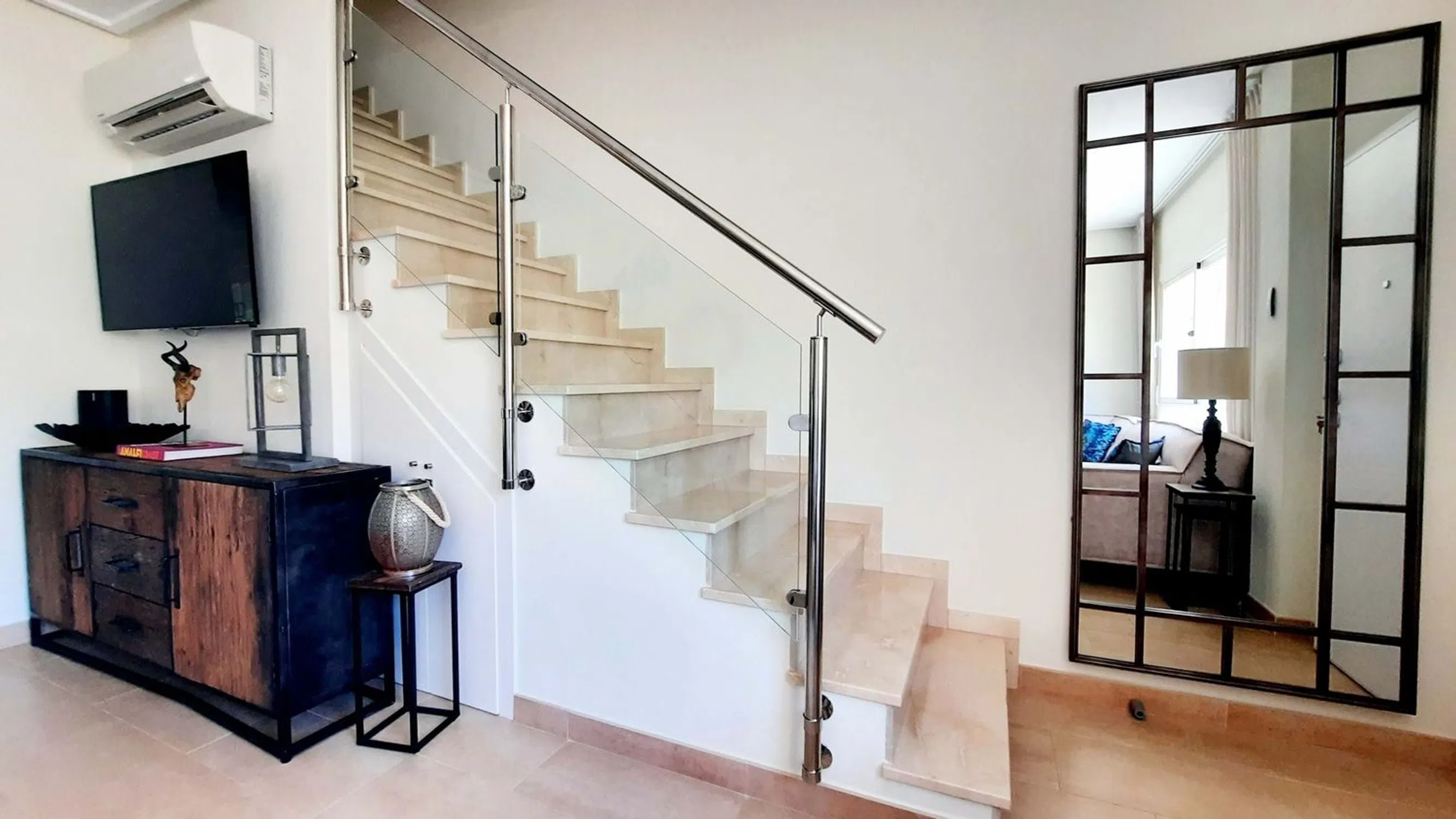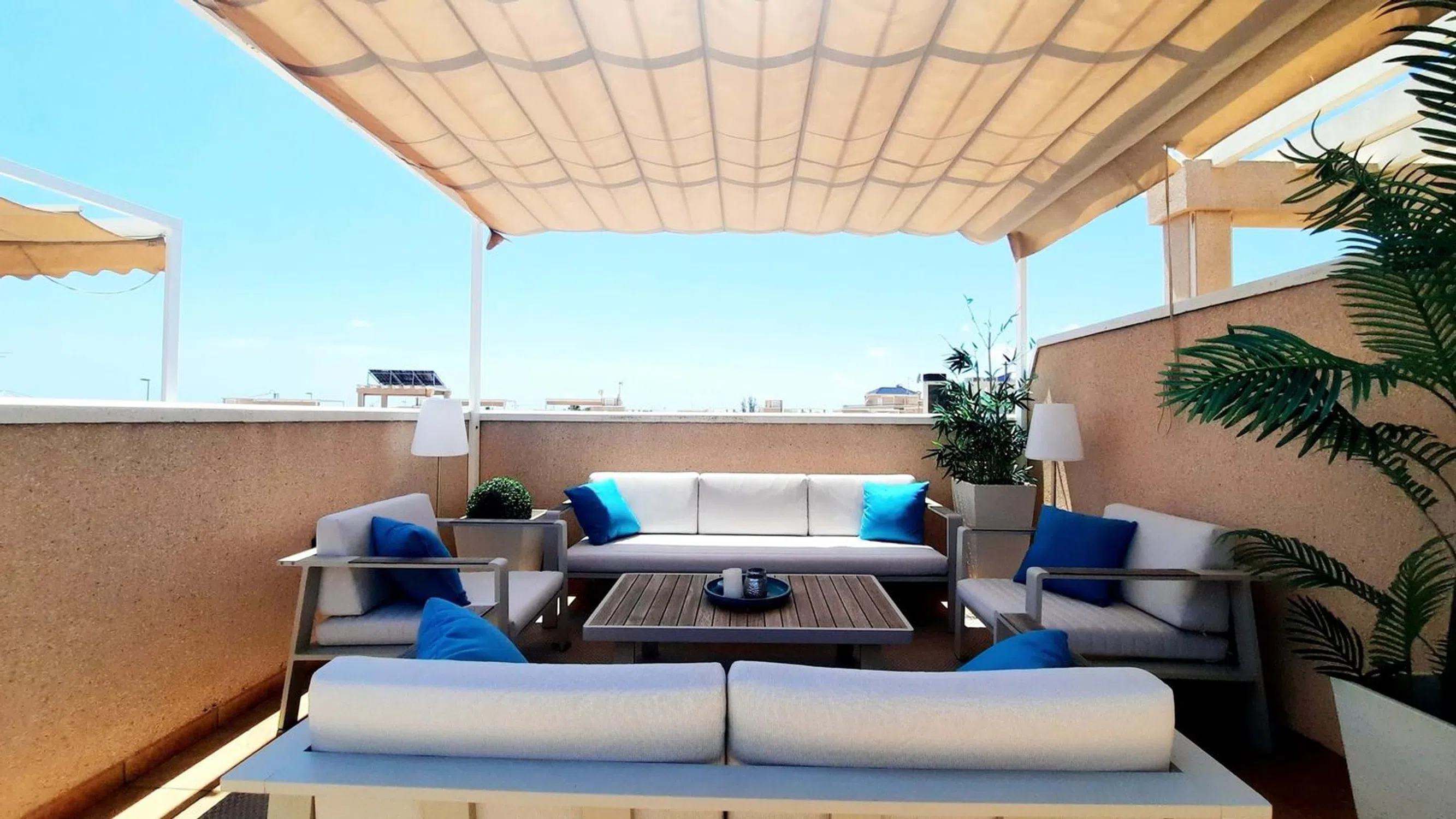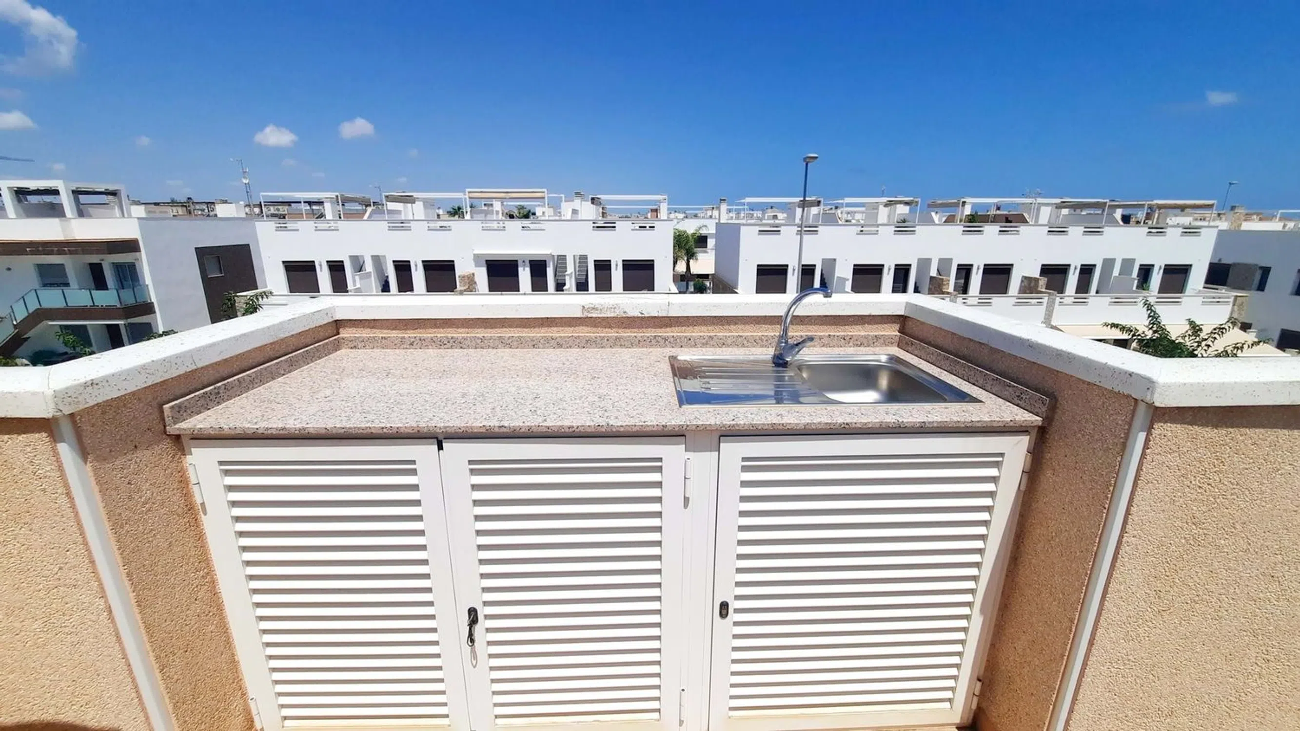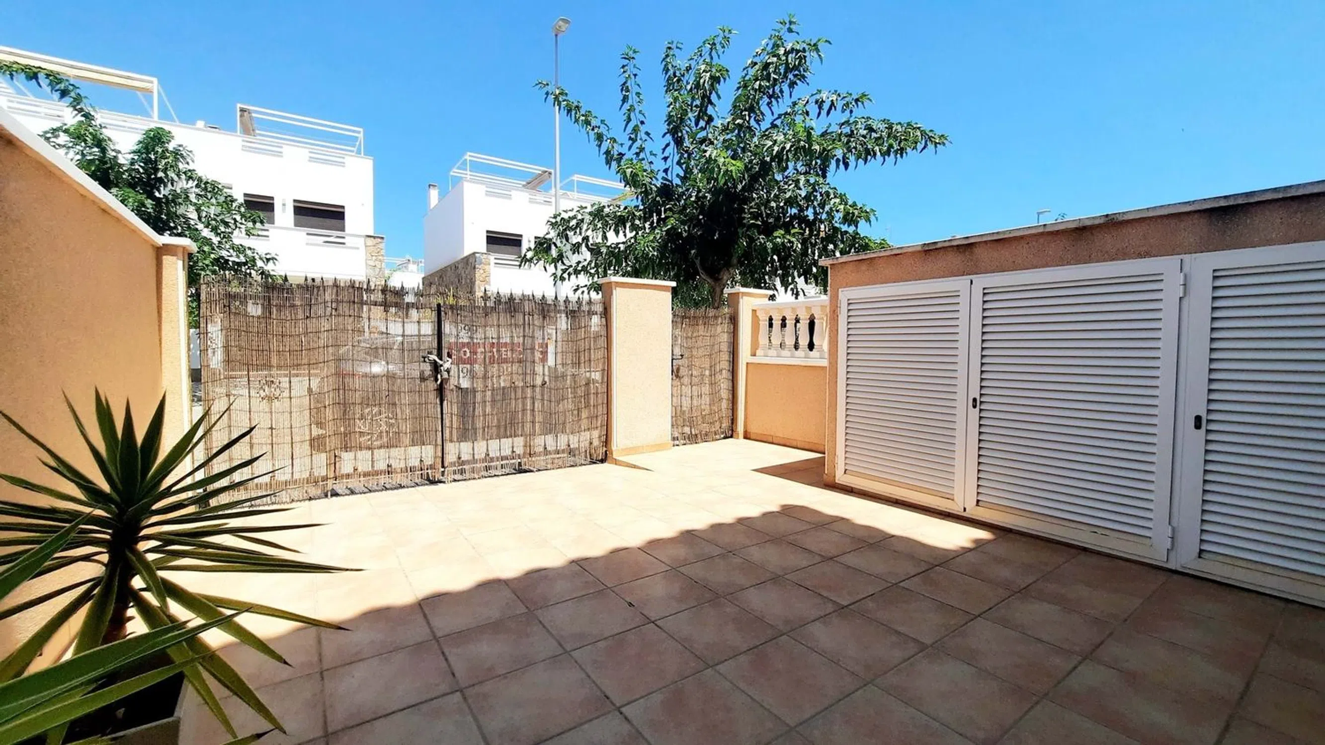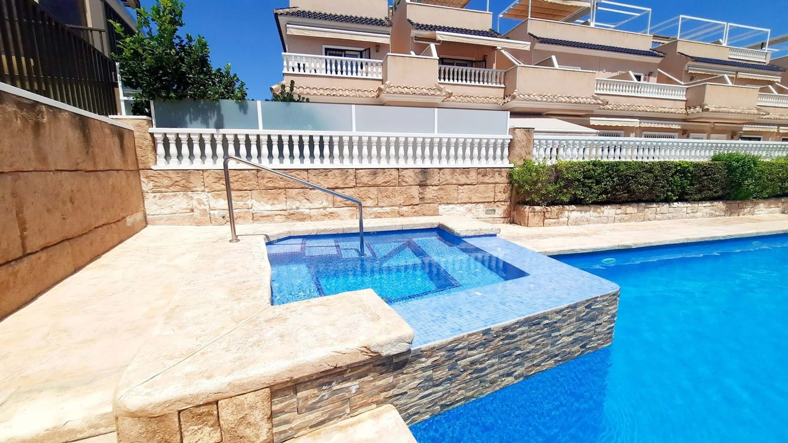 5 Real Estate se complace en comercializar esta impresionante casa adosada de 3 dormitorios y 2 baños, con solárium privado, piscina comunitaria y a solo 300 metros de las playas del Mediterráneo. Comunidad cerrada muy segura. Entrada privada que conduce a una terraza delantera con trastero para bicicletas, etc. A través de la puerta principal y se encuentra en la moderna cocina totalmente equipada. Hay un sistema de filtración de agua en la cocina. Más allá de la cocina hay una hermosa sala de estar, decorada con buen gusto y lista para una sesión de revistas. Aquí hay almacenamiento debajo de las escaleras. Fuera de la sala de estar hay un dormitorio doble con armarios empotrados y un baño con ducha con calefacción por suelo radiante. Hay una segunda terraza orientada al sur desde la sala de estar. Una súper área para socializar, cenar o simplemente relajarse. Las soleadas terrazas cuentan con toldos eléctricos para dar sombra cuando sea necesario. La hermosa zona de la piscina comunitaria está a pocos metros de la casa. Aquí hay zonas de estar, duchas al aire libre y la piscina tiene una sección de jacuzzi. En el primer piso de la casa hay un cuarto de baño familiar, también con calefacción por suelo radiante y dos dormitorios dobles también con armarios empotrados. El dormitorio principal tiene espacio extra en el armario y acceso a una terraza con vistas a la piscina. Aquí hay escaleras que conducen a su propio solárium privado con ducha al aire libre, cocina y zona de barbacoa y espacio para cenar y relajarse. Dispone de una pérgola para dar sombra. Otro maravilloso espacio de vida al aire libre. La ubicación es magnífica. A 300 metros de la playa y fácil acceso a los servicios. Solo hay 21 propiedades en la comunidad, por lo que es tranquilo como casa de vacaciones o hogar permanente. Esta propiedad será popular, por lo que se recomienda visitarla. Por favor, arregle esto con 5 Real Estate 5 Real Estate es la agencia inmobiliaria internacional de servicio completo y tarifa fija de más rápido crecimiento en España, con numerosas oficinas en el norte y sur de la Costa Blanca, así como en la región de Murcia. Estamos comprometidos a brindar un servicio transparente y de primera clase a todos nuestros clientes, ya sean compradores o vendedores. Desde el momento en que se ponga en contacto con nosotros por primera vez, se dará cuenta de la diferencia que ofrecemos y promovemos como estándar. Puede estar seguro de que está tratando con profesionales eficientes y confiables con muchos años de experiencia en bienes raíces españoles. En 5 Real Estate, solo vendemos propiedades que están listadas directamente con nosotros, lo que significa que conocemos personalmente a cada uno de los vendedores, sus hogares y las áreas en las que se encuentran. Dada nuestra amplia cartera de propiedades listadas directamente, estamos seguros de que podemos encontrar la propiedad adecuada para satisfacer sus necesidades. Por lo tanto, haga una consulta hoy y descubra por qué somos tan diferentes y por qué nos estamos convirtiendo en el agente elegido tanto por compradores como por vendedores.
