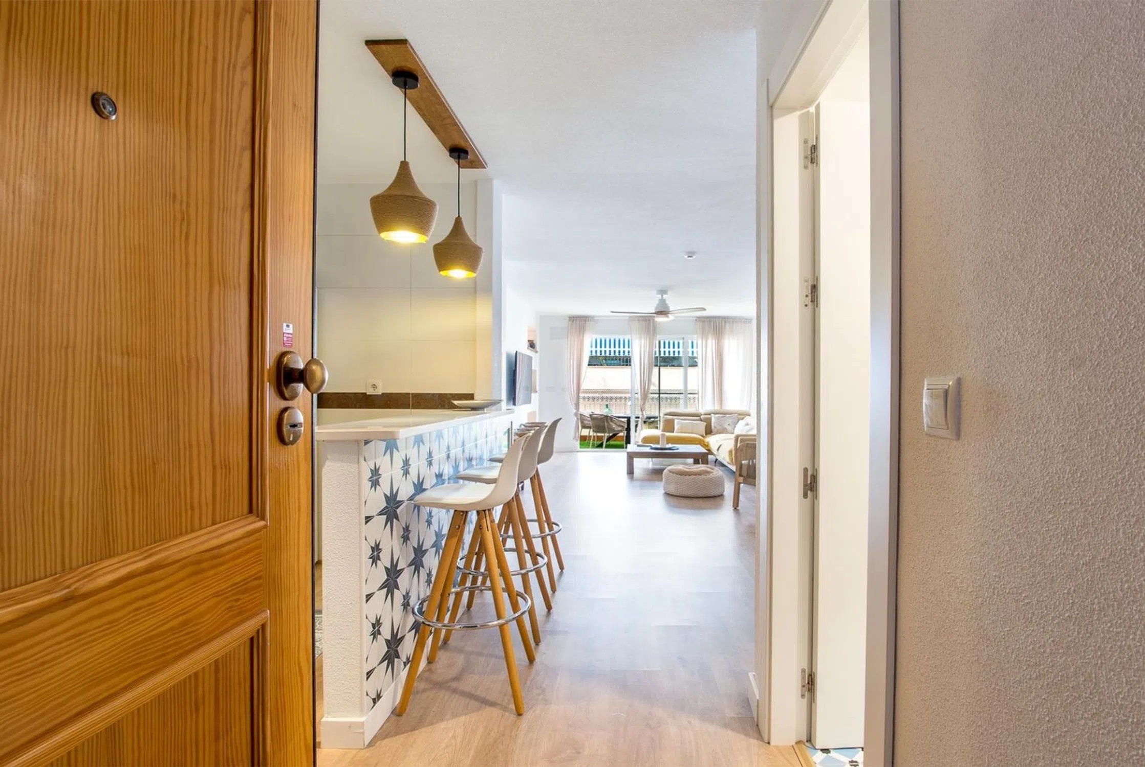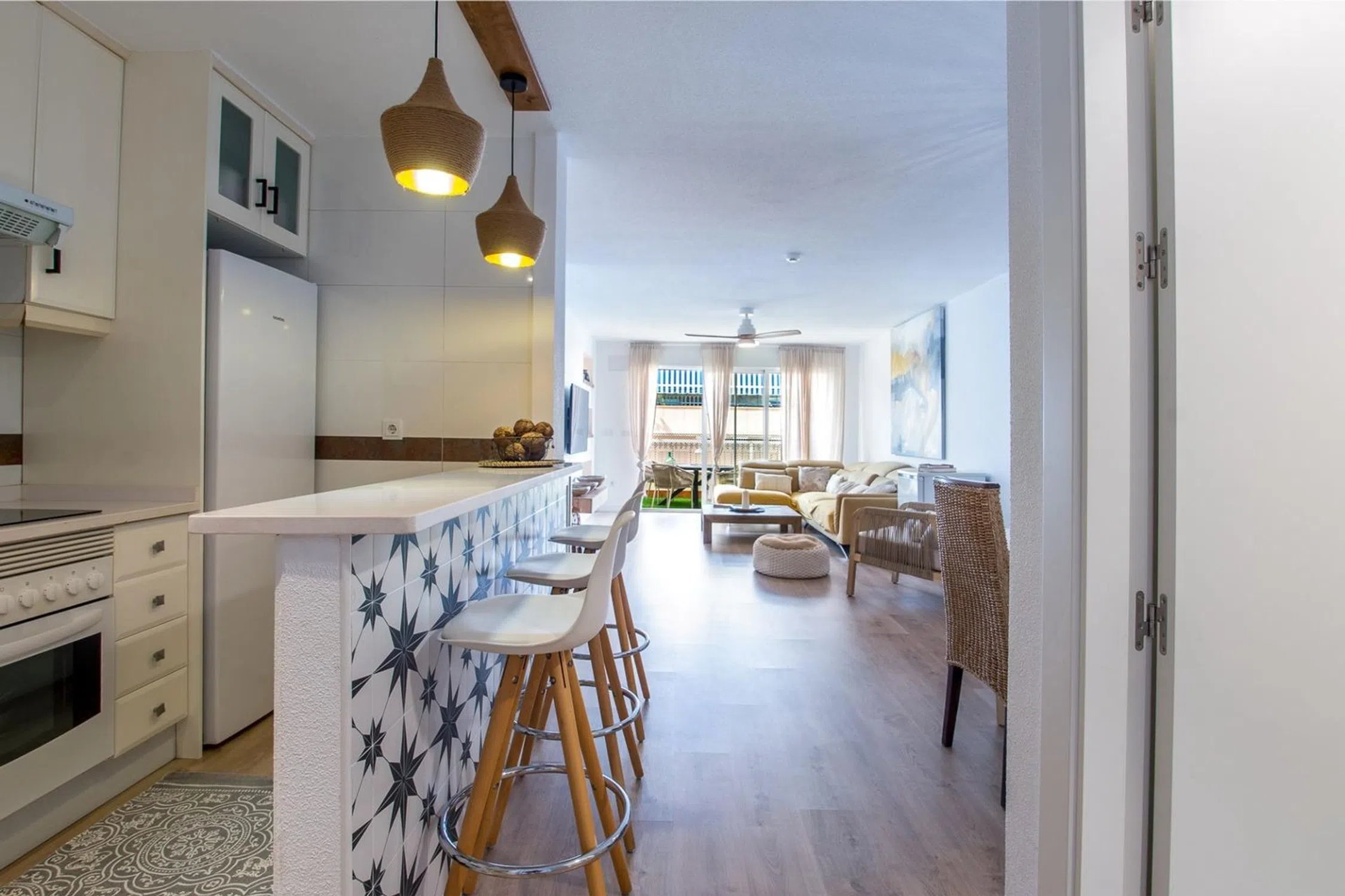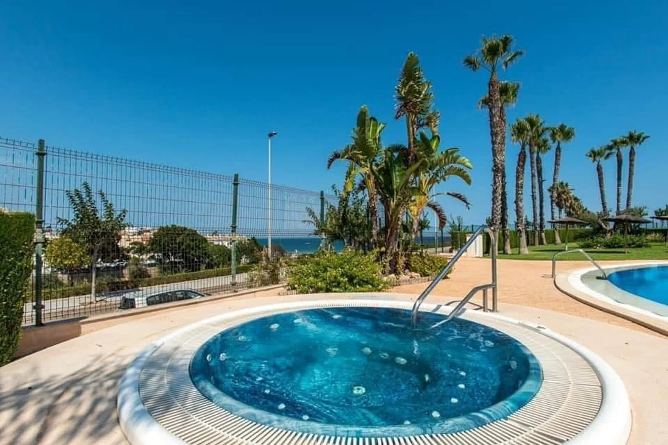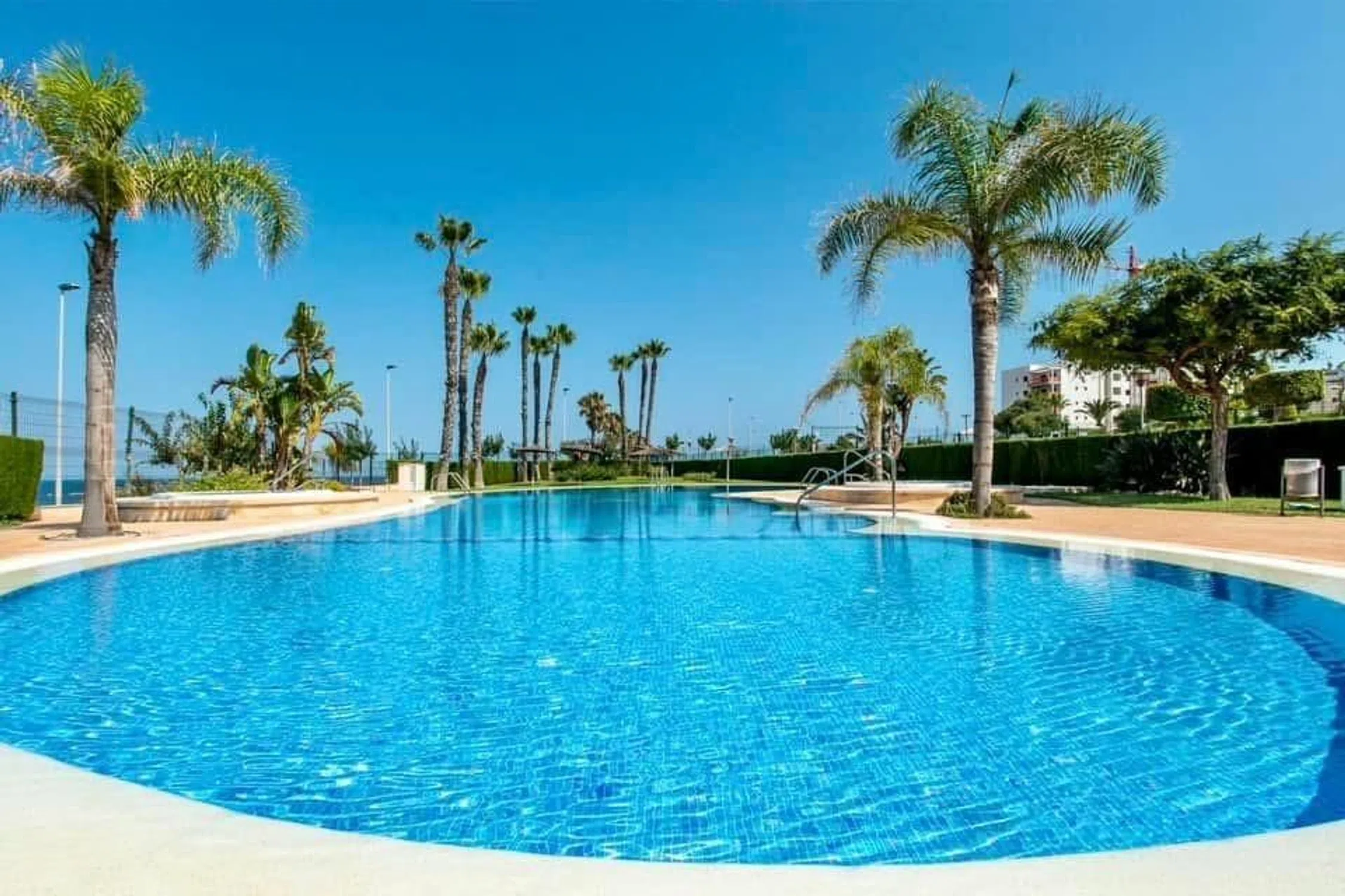 Vivir junto al mar en Riomar 11 — Mil Palmeras ¿Te imaginas empezar el día con la brisa del Levante y el sonido del mar? En este bajo elevado con una terraza de 84 m² podrás hacerlo realidad. Ubicado en Riomar 11, la urbanización más amplia y completa de primera línea de Mil Palmeras, este apartamento ofrece espacio, luz y un interiorismo mediterráneo renovado en 2021. Distribución: - 2 dormitorios muy luminosos - 2 baños completos - Cocina moderna totalmente equipada - Salón-comedor con salida directa a la terraza - Plaza de garaje y trastero - Aire acondicionado Zonas comunes inmejorables: Piscinas, jacuzzis, pistas deportivas, parque infantil y amplios jardines. A tan solo 100 m del mar. Una vivienda perfecta para disfrutar todo el año o como inversión. Ven a descubrir cómo se vive frente al mar. Ya es hora. Te lo mereces.