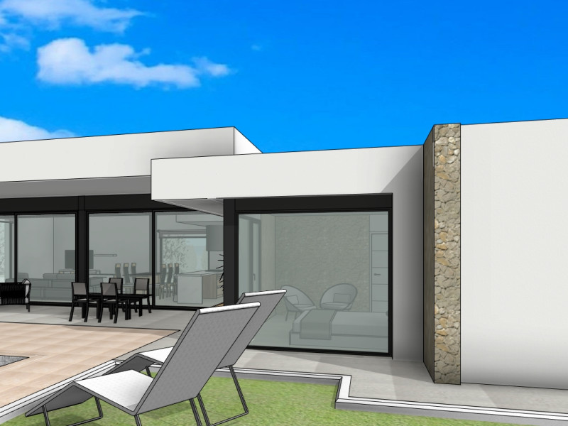 Moderna casa de campo de nueva construcción en una sola planta con parcela rústica de 10.000 m² en venta en la campiña alicantina. Disfrute de la tranquilidad, el espacio y la belleza natura...