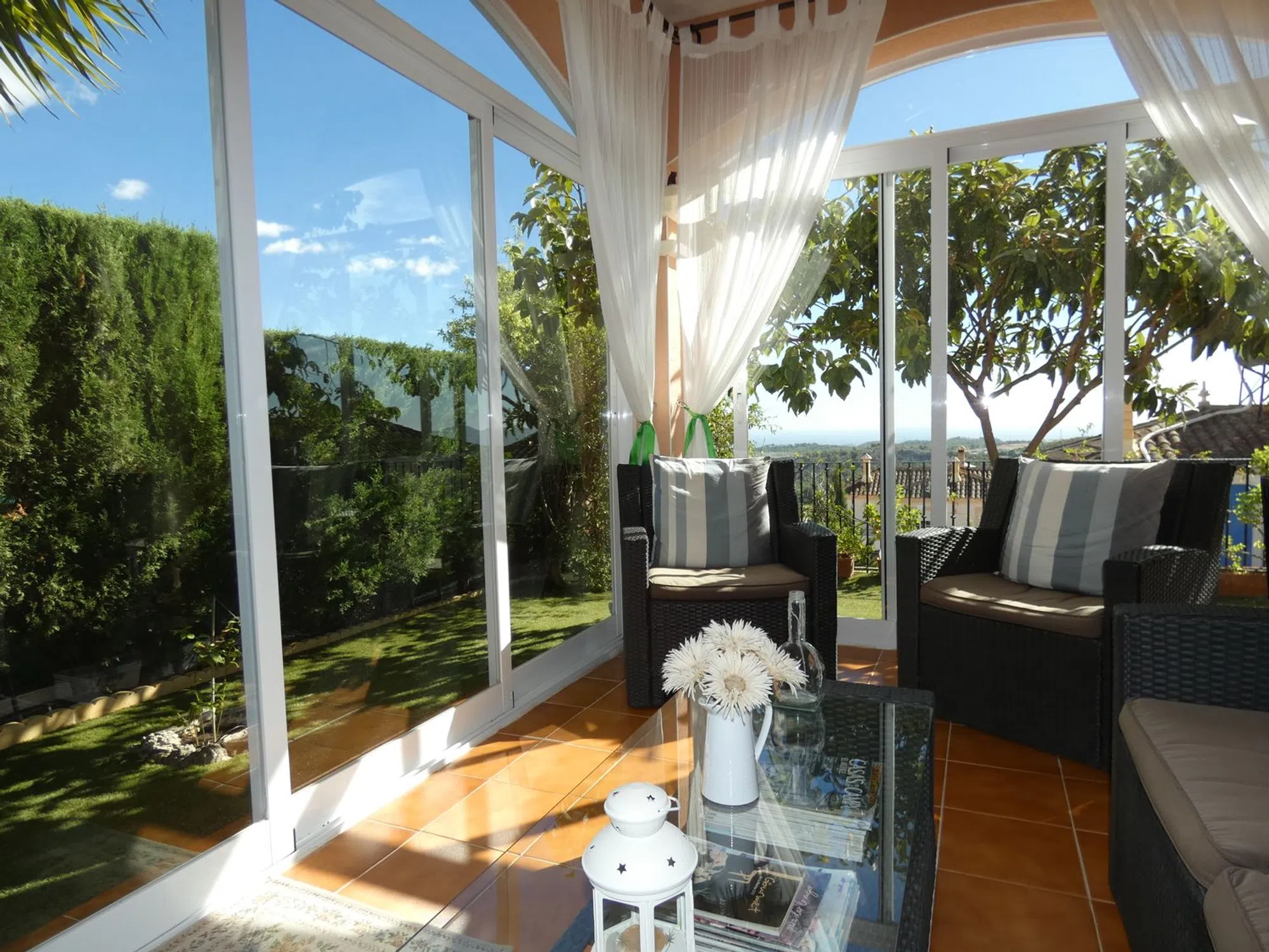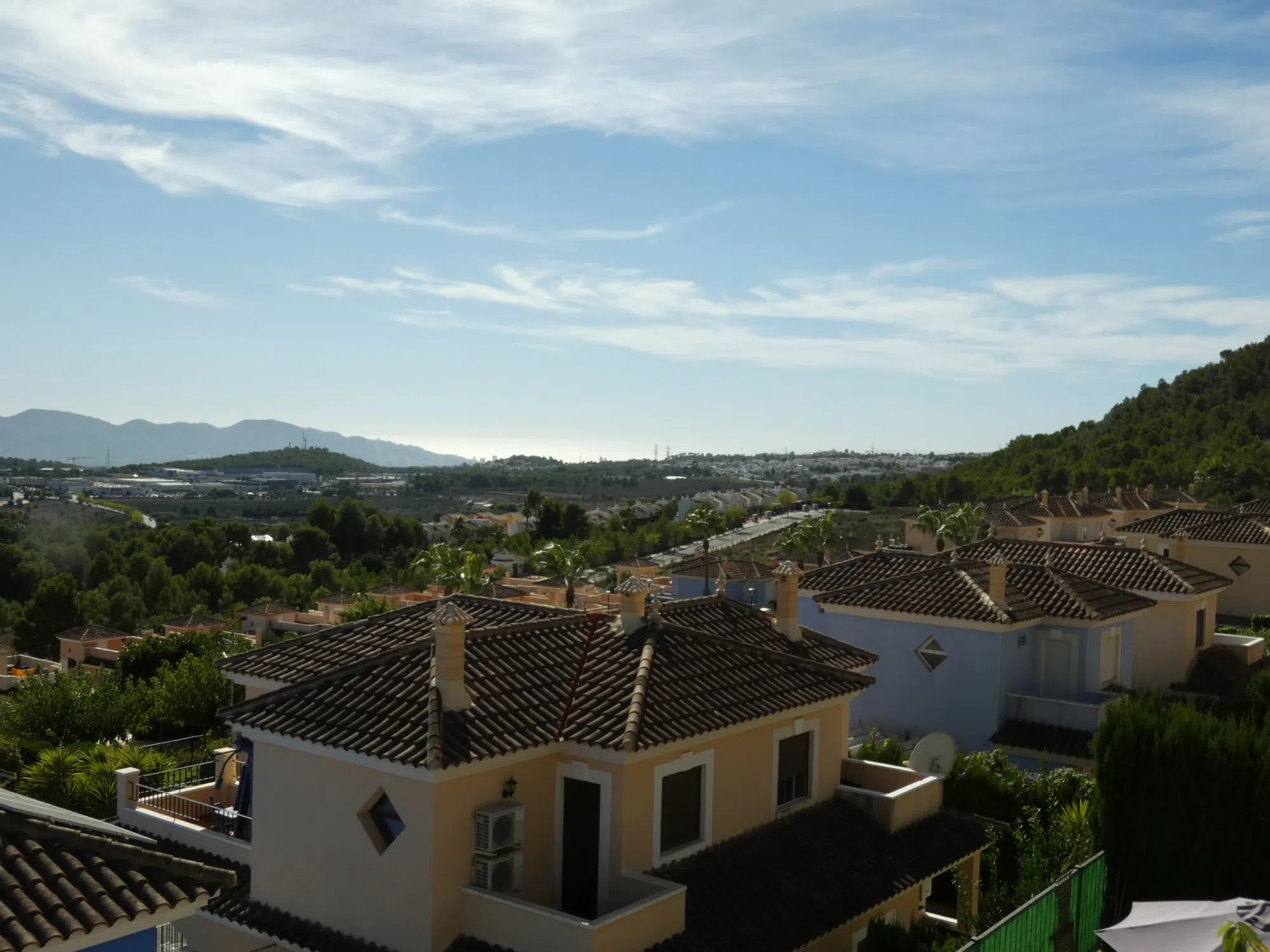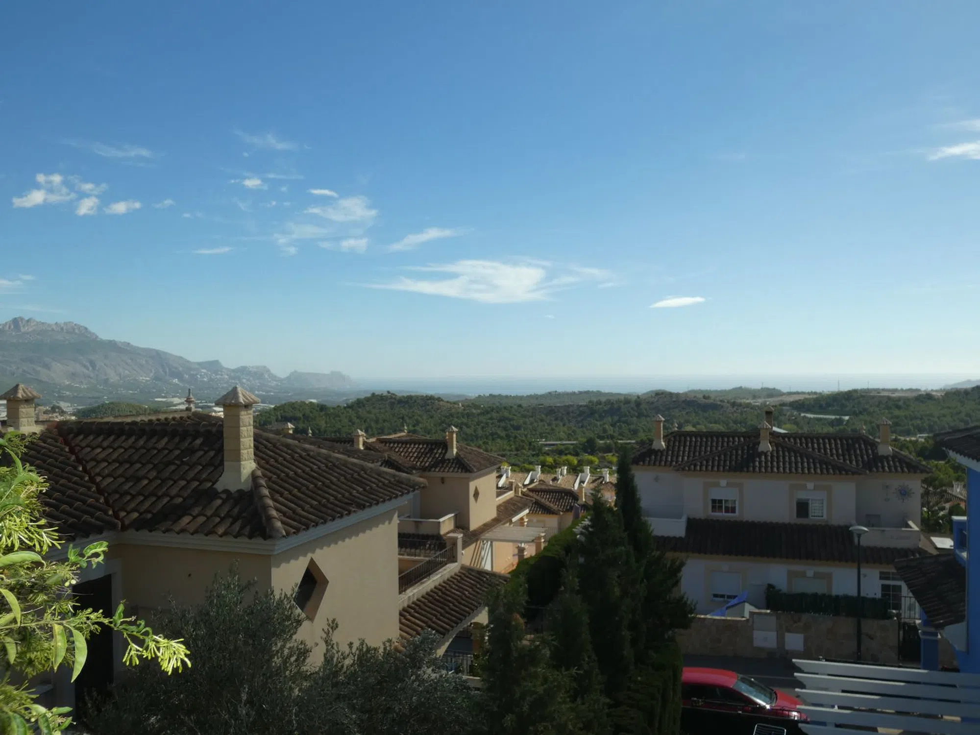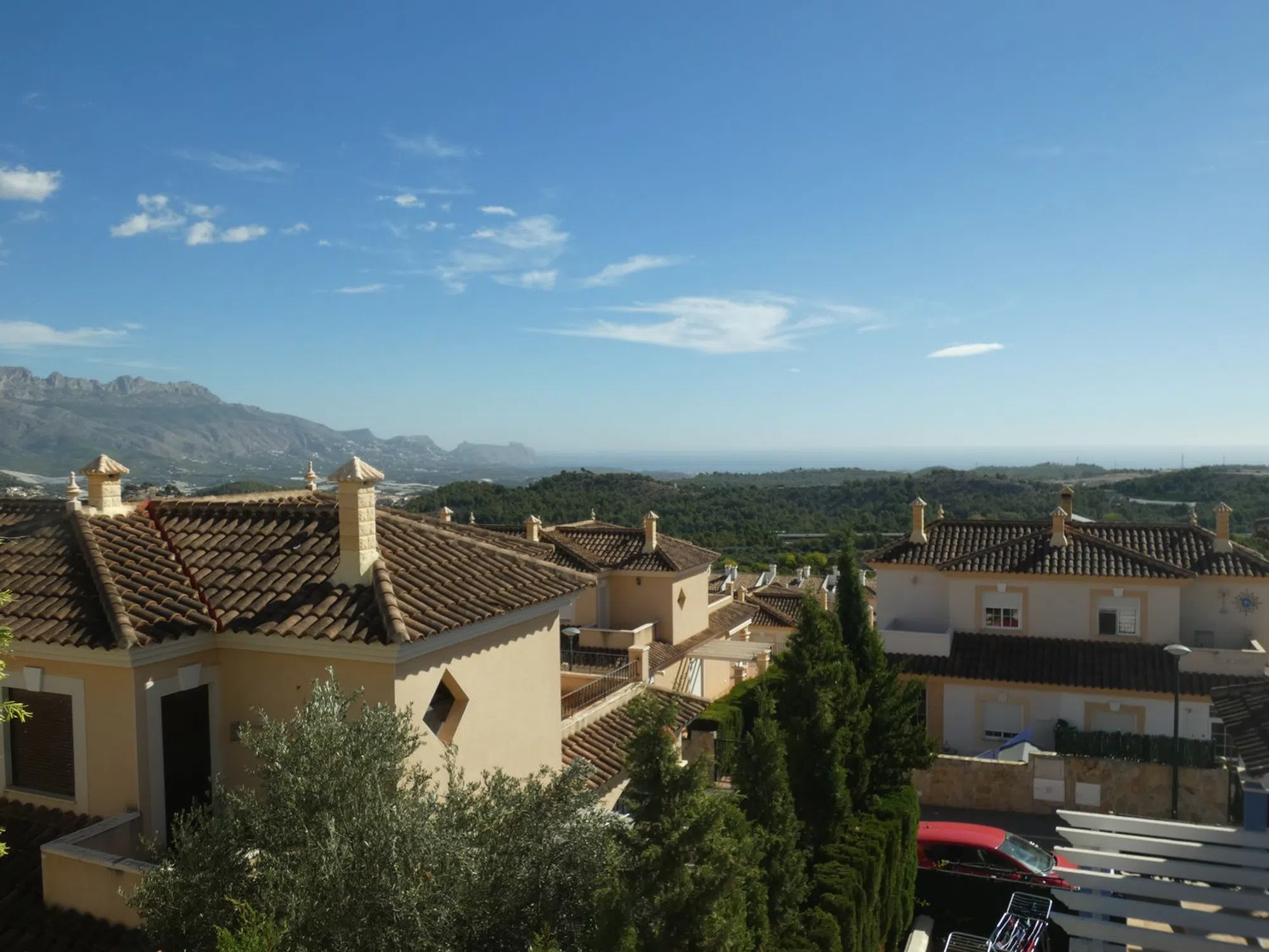 Sobre la celeste colina conocida como Polop Hills, área la cual tiene literalmente a toda la Costa Blanca como horizonte, se erige esta maravilla arquitectónica. Ahora a la venta en Openhouse. Si bien frugal en metraje exterior (de hecho, el metraje interior es simétrico a éste) presume de una distribución perfecta y una extraordinaria orientación suroriental. Según entréis, notaréis cómo todo está distribuido con tacto y dulzura: desde su carport y afable patio frontal, hasta su terraza posterior con jardincito, árboles frutales y, por supuesto, la inmensidad de las vistas ya mentadas, ¡quedaréis impresionados! También hay aquí una terraza acristalada que refulge con serenidad y abundante luz natural a lo largo del día. El interior goza de un mantenimiento de primera y varias mejoras de mano de los propietarios actuales. La vivienda divide sus cerca de doscientos metros cuadrados en tres plantas de ensueño. La principal acoge un salón coqueto, comedor, cocina cerrada con acceso directo al exterior, baño y dormitorio; cada superficie aquí ha sido renovada y, como las otras dos plantas, se dota de calefacción con Gas Natural. A través de sus lustrosas escaleras de mármol, podéis acceder a la principal zona habitacional, la cual consiste de dos amplios dormitorios y dos baños - uno en suite en el dormitorio principal. Los dormitorios poseen su propia terraza, con vistas disímiles pero no por ello menos impresionantes. La cereza sobre el pastel se halla, irónicamente, en la planta inferior: este semisótano ha sido reformado con pericia por parte de los propietarios actuales, y posee espacio sobrado para reconvertir esta superficie en un apartamento de dos dormitorios, si tal desearais. Hoy, sin embargo, es un emplazamiento idóneo para un gimnasio personal, home cinema, sala de lectura, o cualesquiera sean las ideas rondando vuestra cabeza. No diré más, pues no hay más que decir. Sólo que esta casa es una preciosidad. Algo que hay que ver lo antes posible.