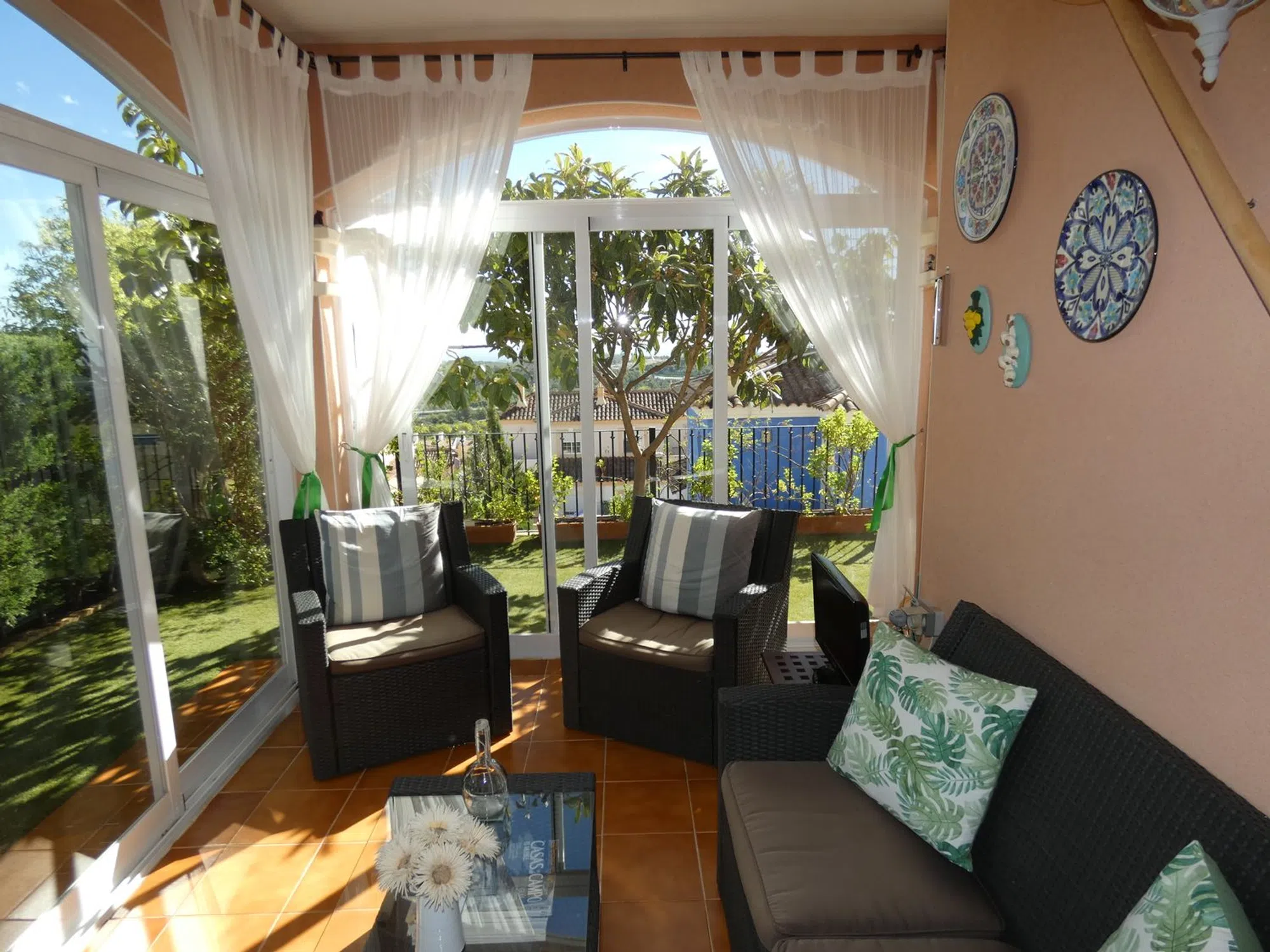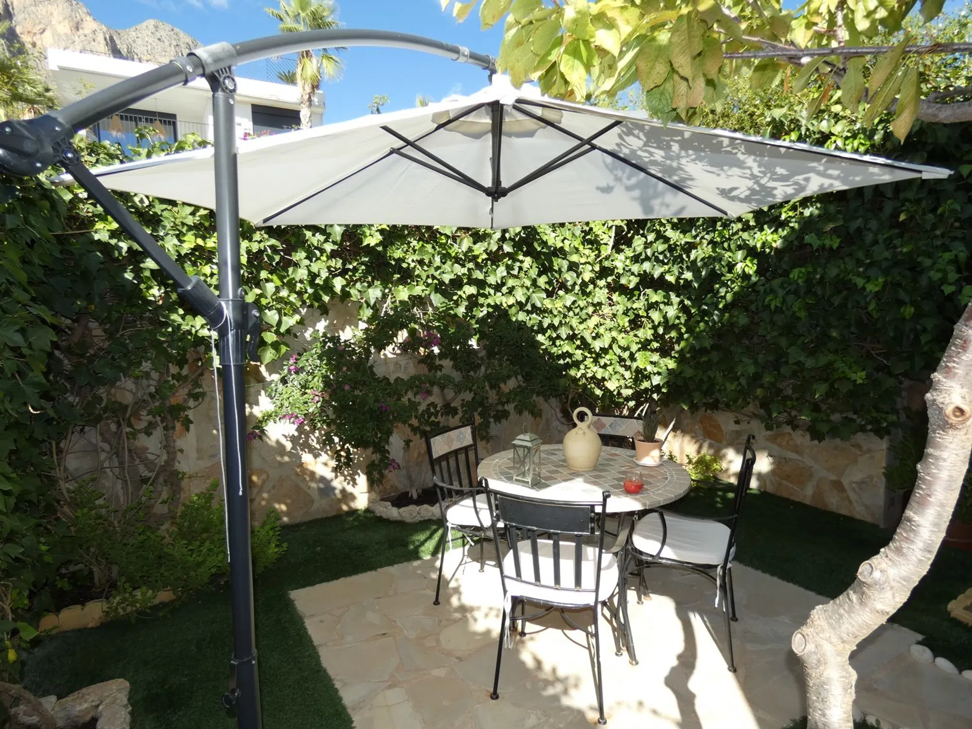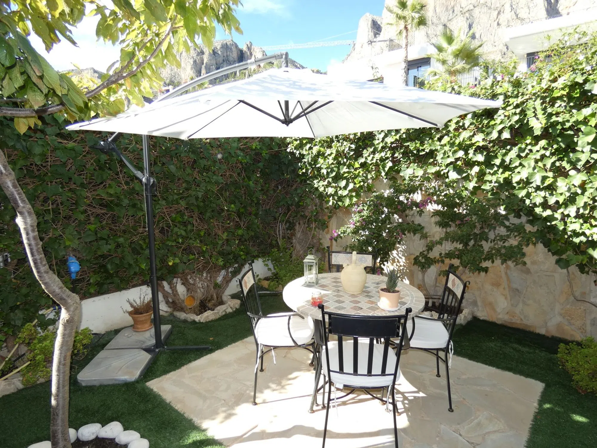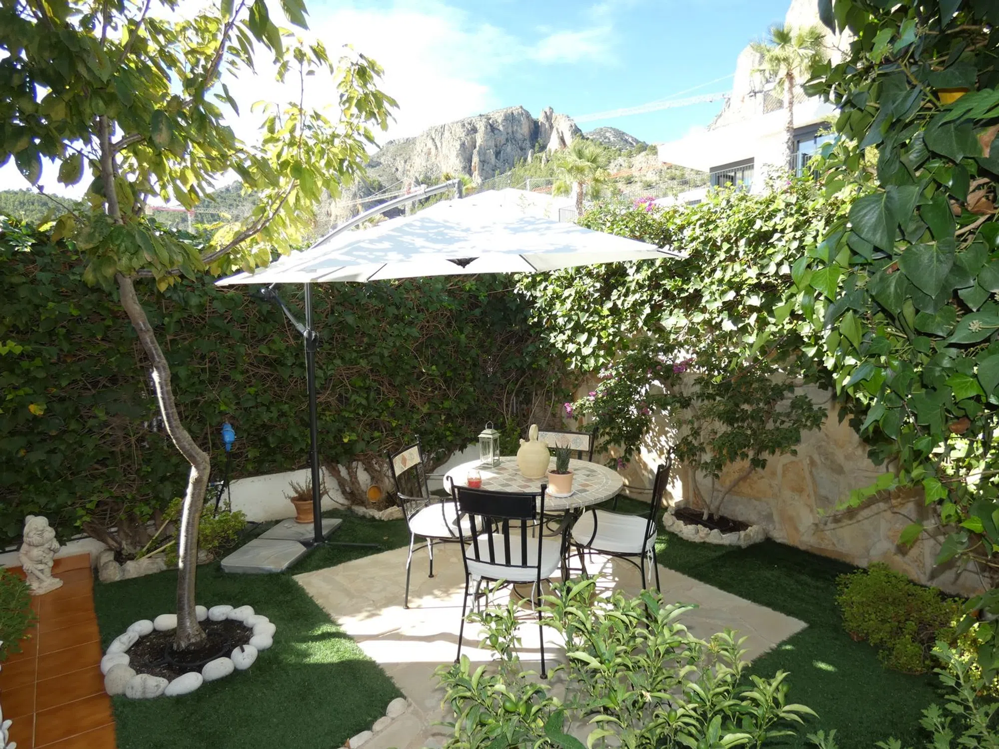 Sobre la celeste colina conocida como Polop Hills, área la cual tiene literalmente a toda la Costa Blanca como horizonte, se erige esta maravilla arquitectónica. Ahora a la venta en Openhouse. Si bien frugal en metraje exterior (de hecho, el metraje interior es simétrico a éste) presume de una distribución perfecta y una extraordinaria orientación suroriental. Según entréis, notaréis cómo todo está distribuido con tacto y dulzura: desde su carport y afable patio frontal, hasta su terraza posterior con jardincito, árboles frutales y, por supuesto, la inmensidad de las vistas ya mentadas, ¡quedaréis impresionados! También hay aquí una terraza acristalada que refulge con serenidad y abundante luz natural a lo largo del día. El interior goza de un mantenimiento de primera y varias mejoras de mano de los propietarios actuales. La vivienda divide sus cerca de doscientos metros cuadrados en tres plantas de ensueño. La principal acoge un salón coqueto, comedor, cocina cerrada con acceso directo al exterior, baño y dormitorio; cada superficie aquí ha sido renovada y, como las otras dos plantas, se dota de calefacción con Gas Natural. A través de sus lustrosas escaleras de mármol, podéis acceder a la principal zona habitacional, la cual consiste de dos amplios dormitorios y dos baños - uno en suite en el dormitorio principal. Los dormitorios poseen su propia terraza, con vistas disímiles pero no por ello menos impresionantes. La cereza sobre el pastel se halla, irónicamente, en la planta inferior: este semisótano ha sido reformado con pericia por parte de los propietarios actuales, y posee espacio sobrado para reconvertir esta superficie en un apartamento de dos dormitorios, si tal desearais. Hoy, sin embargo, es un emplazamiento idóneo para un gimnasio personal, home cinema, sala de lectura, o cualesquiera sean las ideas rondando vuestra cabeza. No diré más, pues no hay más que decir. Sólo que esta casa es una preciosidad. Algo que hay que ver lo antes posible.