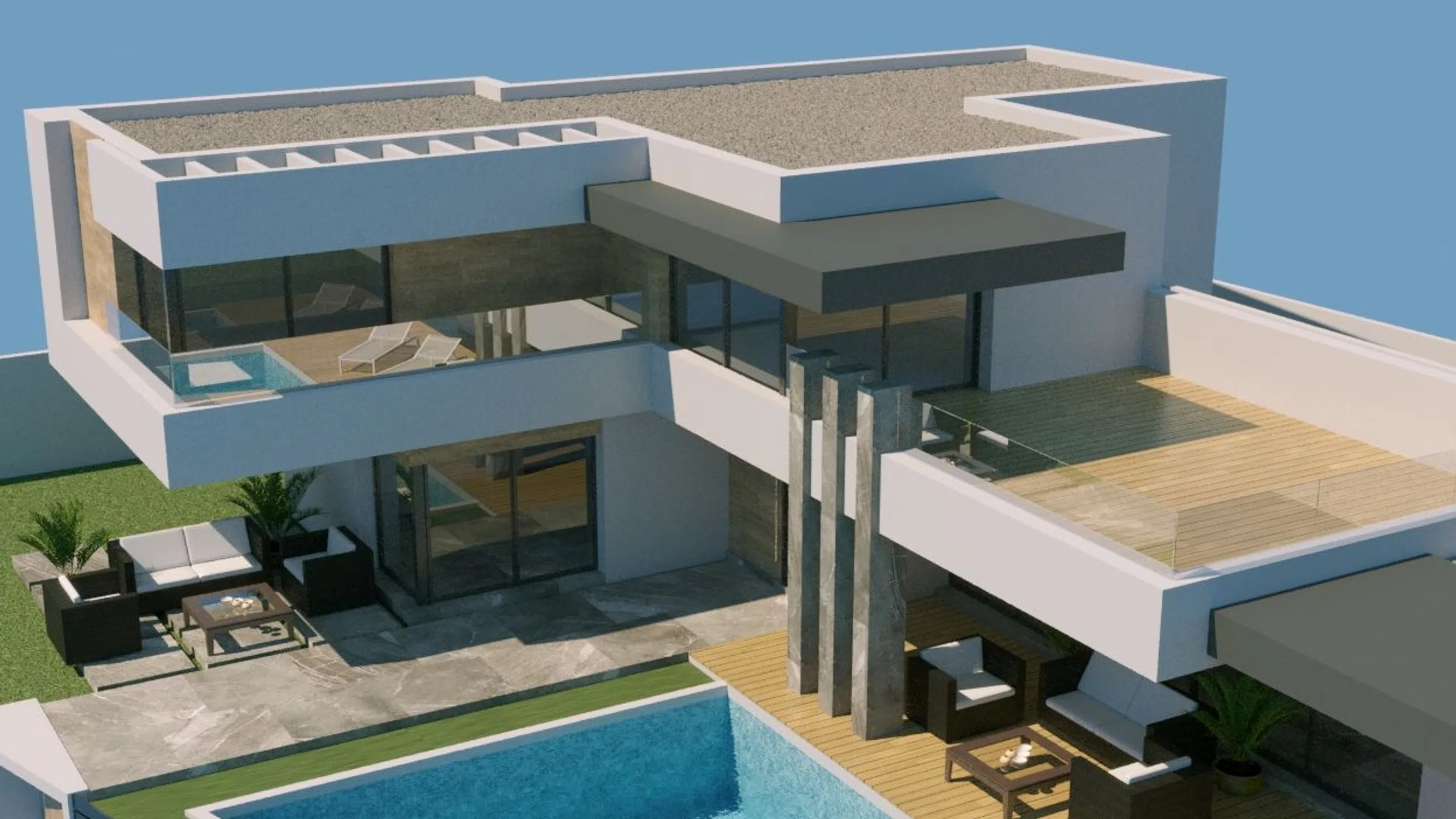 Descubra un refinado sentido de elegancia contemporánea en esta majestuosa villa de nueva construcción, ubicada a pocos minutos del vibrante corazón de Ciudad Quesada. Con cinco habitaciones dobles bellamente decoradas y cuatro baños elegantes y modernos, esta propiedad encarna una experiencia de vida de lujo diseñada tanto para la comodidad diaria como para el entretenimiento memorable. Amplio espacio habitable: con una extensión de 403 m² en tres niveles cuidadosamente diseñados, esta casa ofrece abundante espacio tanto para la vida familiar como para el ocio. Diseño y distribución inteligentes: Nivel principal: sala de estar de planta abierta con una cocina de última generación perfectamente conectada al jardín a través de amplias puertas corredizas de vidrio (acristalamiento de altura completa), dos dormitorios, dos baños, lavandería y un vestíbulo acogedor. Primer piso: una elegante sala de estar secundaria, además de un dormitorio y un baño, que fluyen hacia una terraza privada y el lujoso solárium en la azotea, perfecto para momentos de sol o reuniones al aire libre. Nivel inferior: dos dormitorios adicionales, un baño moderno, una sala de estar secundaria y acceso al patio con una sala técnica/de almacenamiento, ideal para la flexibilidad multigeneracional. Luz y brillantez arquitectónica: inundada de luz natural a través de los imponentes acristalamientos de altura completa en toda la casa, que muestran la delicadeza arquitectónica y mejoran drásticamente la conexión interior-exterior. Vida de lujo al aire libre: relájese junto al mar o bajo el sol valenciano junto a su propia piscina privada, rodeada de vegetación ajardinada, diseñada para ofrecer un oasis de relajación y elegancia. Integración de hogar inteligente: equipado con sistemas inteligentes de automatización del hogar, que incluyen control de clima, iluminación y seguridad, todo accesible sin problemas a través de la aplicación o el control por voz. Comodidad y eficiencia premium: incluye aire acondicionado central (frío y calor), puertas y ventanas de doble acristalamiento de alto rendimiento y un sistema de entrada seguro para la tranquilidad y una mayor eficiencia energética. Ubicación y estilo de vida privilegiados: a solo minutos de servicios, como tiendas, restaurantes e instalaciones locales. La propiedad se encuentra en una parcela orientada al sur y bañada por el sol, que ofrece tranquilidad con vistas panorámicas naturales y al lago.