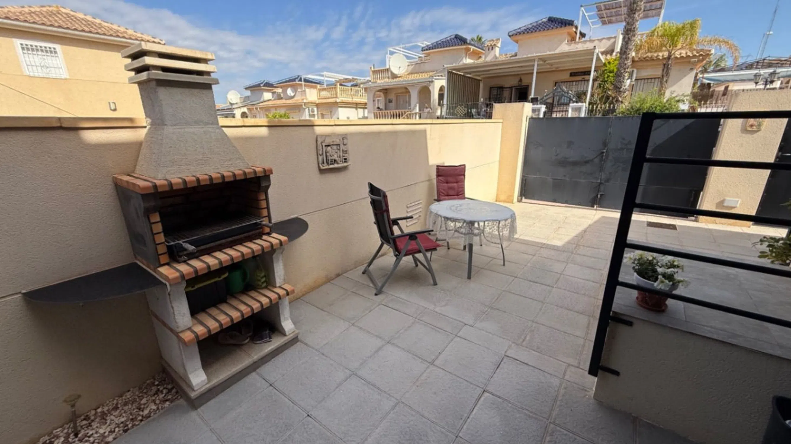 Descubre la casa de tus sueños en Rojales Ubicada en el soleado abrazo de la Costa Blanca Sur en Rojales, esta encantadora casa unifamiliar ofrece una combinación perfecta de confort y vida moderna. Con una impresionante superficie de 78 m² de espacio interior cuidadosamente diseñado, esta residencia es un oasis para aquellos que buscan un estilo de vida tranquilo en medio del vibrante encanto de Alicante. Espacios de vida confortables La casa cuenta con 2 acogedores dormitorios y 2 baños bien equipados, que brindan un amplio espacio para la relajación y el rejuvenecimiento. Cada dormitorio está cuidadosamente diseñado para crear un refugio de descanso, asegurando la serenidad después de un largo día. Los baños están equipados con comodidades modernas, lo que mejora la comodidad y el estilo. Elegantes áreas al aire libre Salga para descubrir una generosa terraza de 50 m², ideal para entretener a amigos o disfrutar de noches tranquilas bajo las estrellas. Este espacio al aire libre se integra a la perfección con una parcela de 211 m² manejable pero bellamente ajardinada, que proporciona un telón de fondo perfecto para reuniones familiares, cenas al aire libre o simplemente para tomar el sol. Comodidades modernas Diseñada para una vida confortable, esta casa está equipada con características esenciales que incluyen: * Aire acondicionado para mantenerte fresco durante los días cálidos. * Ventanas de doble acristalamiento que mejoran la eficiencia energética y reducen el ruido. * Una puerta de seguridad, que brinda tranquilidad para usted y su familia. * Una cocina americana que fomenta un ambiente comunitario para cocinar y comer. * Un lavadero dedicado, que garantiza la comodidad en su rutina diaria. * Amplio espacio de almacenamiento, diseñado por expertos para mantener sus áreas de estar ordenadas y organizadas. Comunidad y estilo de vida Esta encantadora propiedad se extiende más allá de sus cuatro paredes, ya que los residentes tienen acceso a una impresionante piscina comunitaria, perfecta para la relajación y la diversión bajo el sol. La parcela cerrada no solo garantiza la privacidad, sino que también ofrece un entorno seguro para que los niños y las mascotas jueguen libremente. Características prácticas Esta casa completamente amueblada garantiza una transición sin problemas a su nueva vida. Con estacionamiento designado y fácil mantenimiento, cada detalle ha sido cuidadosamente considerado para mejorar su experiencia de vida. Ubicación y comodidades Rojales encarna la esencia de la vida costera española, con una variedad de servicios locales, tiendas y restaurantes al alcance de la mano. Deléitese con los pintorescos alrededores y sumérjase en el vibrante espíritu comunitario que define esta área excepcional. Tu futuro te espera Abrace la oportunidad de ser dueño de esta hermosa casa unifamiliar en Rojales, donde la comodidad se une a la conveniencia. Ya sea que esté buscando una residencia permanente o una casa de vacaciones, esta propiedad no es solo un lugar para vivir, es un estilo de vida.