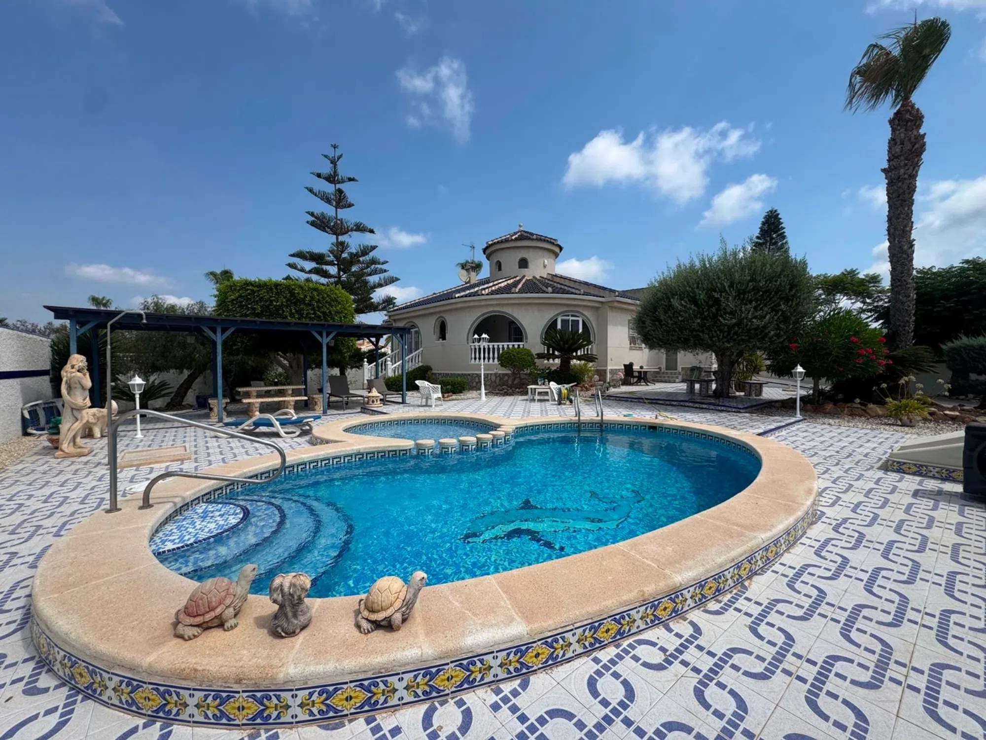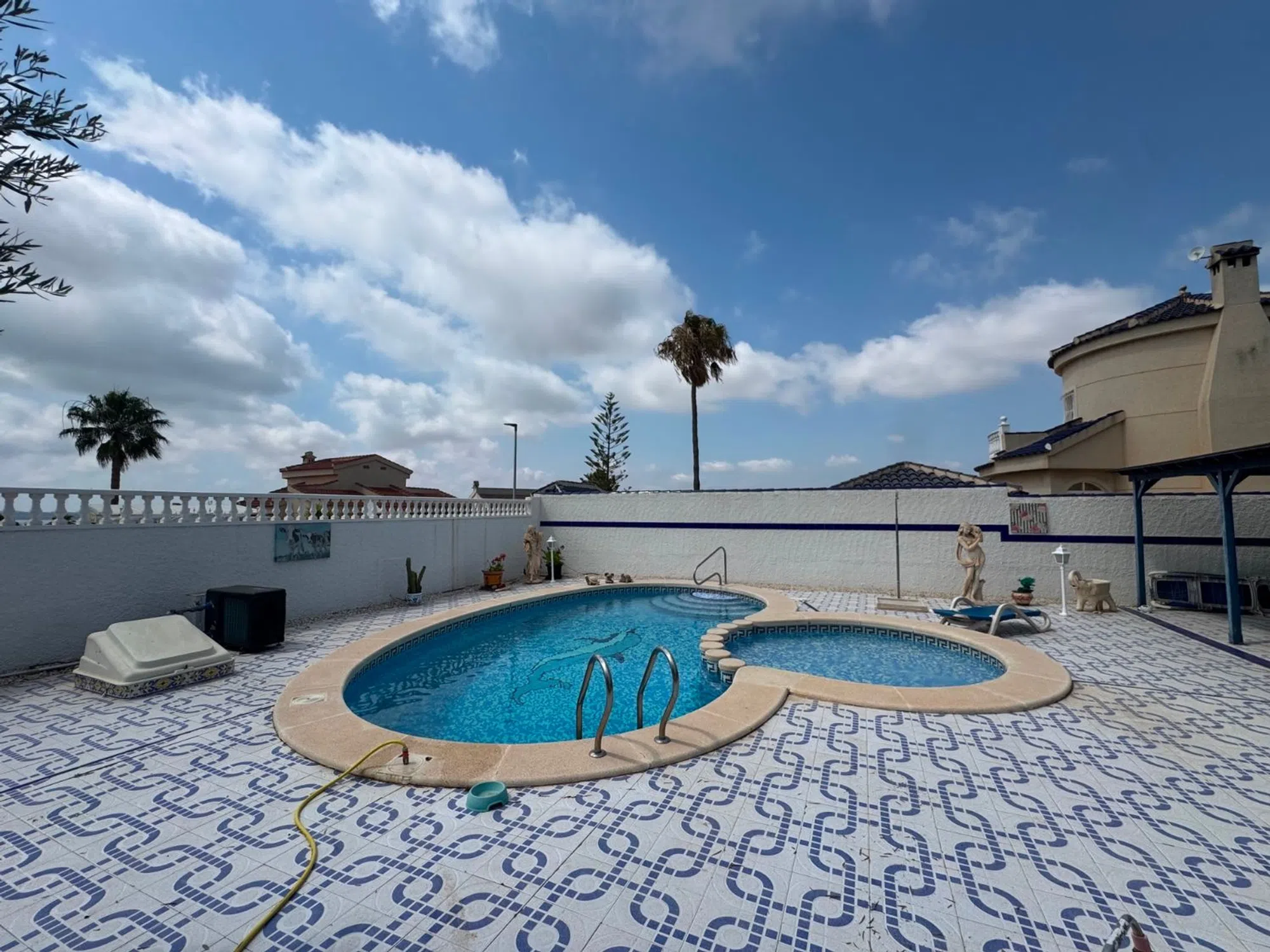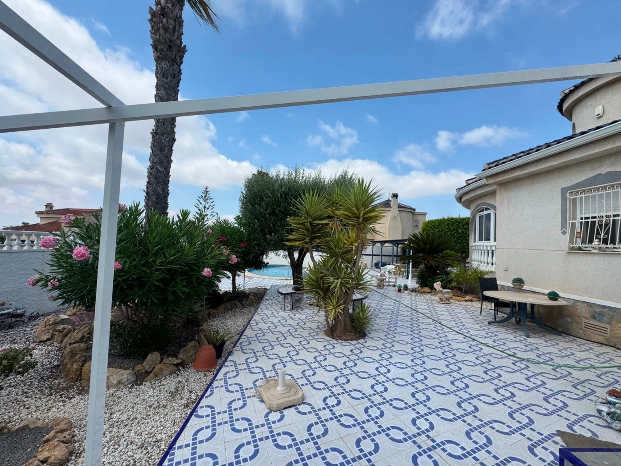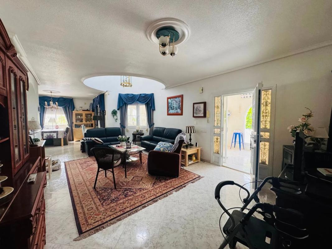 Espaciosa Villa de 3 Dormitorios con Piscina, Garaje y Vistas al Lago Salado en Lo Pepin, Ciudad Quesada Esta encantadora villa de una sola planta ofrece la combinación perfecta de confort, espacio y vistas. Ubicada en una generosa parcela de 783m² en la codiciada zona residencial de Lo Pepin en Ciudad Quesada, la propiedad cuenta con 3 amplios dormitorios y 2 baños, ideal para la vida familiar o escapadas de vacaciones. La casa cuenta con un diseño luminoso y funcional, con una cocina totalmente equipada que ofrece acceso interno directo desde el garaje privado, una característica rara y conveniente. Las áreas de estar y comedor fluyen sin esfuerzo hacia un gran porche cubierto, perfecto para relajarse o entretenerse mientras disfruta de las vistas al jardín, la piscina privada y las vistas parciales de los lagos salados cercanos. Los aspectos destacados adicionales incluyen un solárium privado, donde puede tomar el sol y disfrutar de amplias vistas de los alrededores y los lagos salados. Ya sea que esté buscando una residencia permanente tranquila o una casa de vacaciones bien ubicada, esta villa ofrece una oportunidad fantástica en una de las zonas más deseables de Ciudad Quesada. Características clave: Toda la vivienda en una sola planta 3 dormitorios dobles y 2 baños Garaje con acceso directo a la cocina Amplio porche con vistas al jardín y la piscina Solárium con vistas a la zona y al lago salado Parcela de 783m² en la tranquila ubicación de Lo Pepin ¡Contáctenos hoy para concertar una visita a esta encantadora villa!