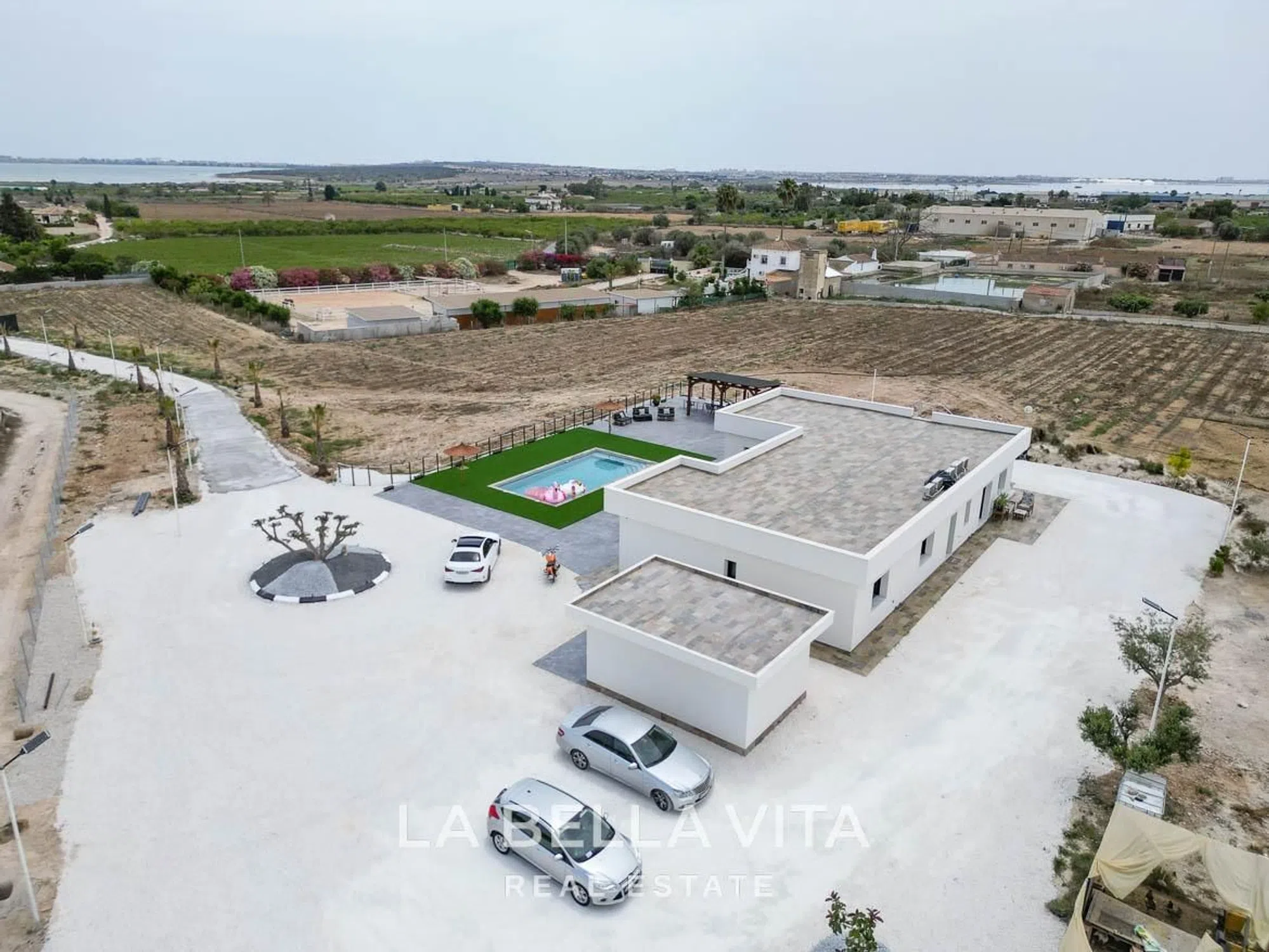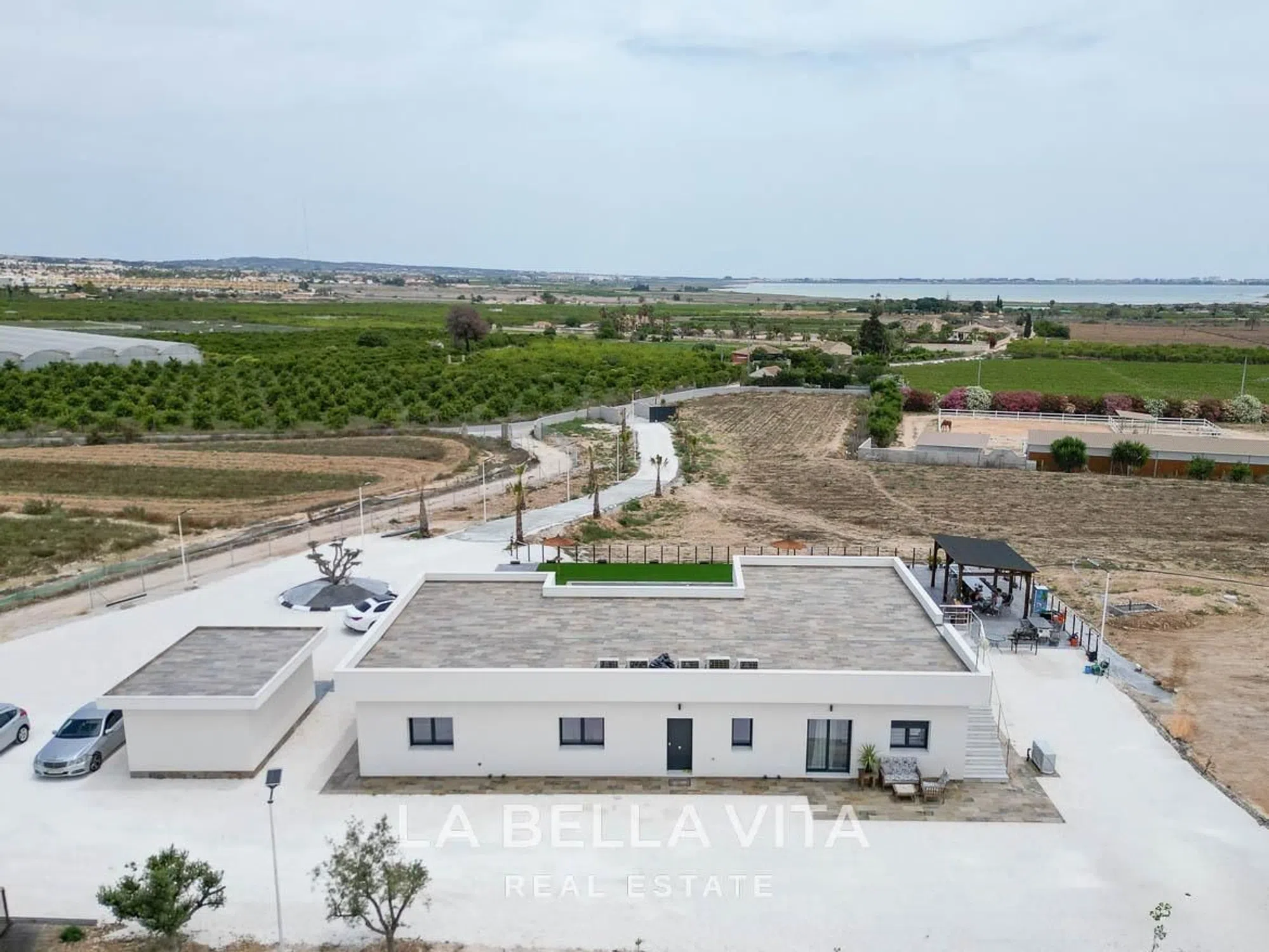 ►►► Una joya única en la Costa Blanca. Esta impresionante villa independiente se encuentra en una ubicación privilegiada entre Ciudad Quesada y Los Montesinos, en una parcela rústica de 11.436 m² con vistas espectaculares al paisaje mediterráneo, las lagunas y el cielo abierto. Privacidad total, espacio, naturaleza y confort moderno se unen en esta propiedad excepcional. La casa, construida en una sola planta, cuenta con 213 m² distribuidos de forma equilibrada en dos alas independientes, ideales tanto para familias como para invitados. Dispone de 4 dormitorios y 3 baños en total, incluyendo dos habitaciones tipo suite con baño privado, una de ellas con vestidor. Además, cuenta con un aseo exterior, ideal para dar servicio a la zona de piscina o invitados. La zona de día se abre a un amplio salón comedor con cocina integrada, todo con acceso directo a una gran terraza pavimentada de aproximadamente 500 m², perfecta para disfrutar del estilo de vida mediterráneo. La piscina privada climatizada (9 x 4,5 m) es el centro de este espacio exterior, acompañada por una zona de barbacoa cerrada de 24 m², ideal para reuniones con familia y amigos. En la parte superior, un solárium de 240 m² te espera con unas vistas panorámicas de 360 grados: el lugar perfecto para relajarse, meditar o disfrutar del sol durante todo el año. La propiedad incluye un garaje cerrado de 24 m², espacio para aparcar varios vehículos dentro de la parcela y acceso a través de un camino privado con puerta automática y sistema de cámaras de seguridad. Se vende completamente amueblada, equipada con aire acondicionado por splits en todas las estancias, persianas eléctricas y acabados de alta calidad. Gracias a su amplio terreno rústico, esta propiedad también es perfecta para los amantes de los caballos, con espacio suficiente para crear establos, una pista de entrenamiento o simplemente disfrutar de la naturaleza junto a tus animales. A tan solo 10 minutos en coche de las playas de Guardamar y a 5 minutos de todos los servicios: supermercados, colegios, restaurantes y zonas de ocio. Una oportunidad extraordinaria para quienes buscan una casa moderna, lista para entrar a vivir, con gran terreno, intimidad total y un entorno natural inigualable. Contacta con LA BELLA VITA Real Estate, la mejor inmobiliaria de Costa Blanca, para organizar una visita personalizada. Te ofrecemos un servicio cercano, profesional y una cuidada selección de propiedades exclusivas.
