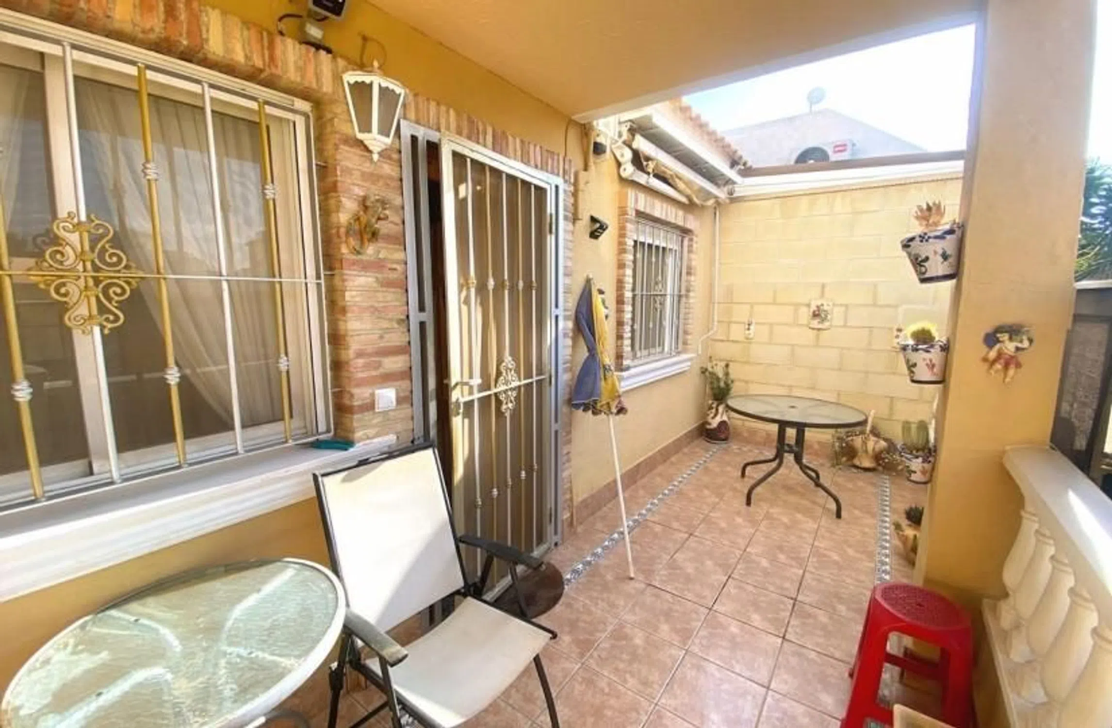 Bungalow de 2 dormitorios y 1 baño en Ciudad Quesada (Doña Pepa), Alicante. Este encantador bungalow ofrece un cómodo espacio habitable de una sola planta con dos dormitorios y un baño. Bien mantenido y en buen estado, cuenta con una amplia terraza en la entrada, parcialmente cubierta, con vistas a un amplio jardín delantero, actualmente destinado a aparcamiento, con pérgola cubierta para el coche. En el interior, la propiedad cuenta con un acogedor salón-comedor con cocina semiabierta, que incluye barra americana y una puerta acristalada que da a un pequeño lavadero. Una escalera de caracol desde la azotea da acceso a un amplio solárium, perfecto para disfrutar del sol. Un arco desde el salón conduce a dos dormitorios dobles y un baño familiar. La propiedad goza de una encantadora orientación oeste, con vistas, y una ubicación privilegiada a poca distancia de tiendas, bares, restaurantes y supermercados. Una piscina comunitaria está a un corto paseo, lo que ofrece más opciones de ocio. Construida en 2007, esta casa amueblada incluye aire acondicionado, aparcamiento privado y acceso a una piscina comunitaria, lo que la convierte en una residencia ideal y de bajo mantenimiento en una zona muy solicitada. Dormitorios: 2 Baño: 1 Superficie construida: 65 m² Parcela: 100 m² Orientación: Oeste Año de construcción: 2007 Aire acondicionado Solarium Piscina comunitaria Aparcamiento privado Amueblada Vistas.