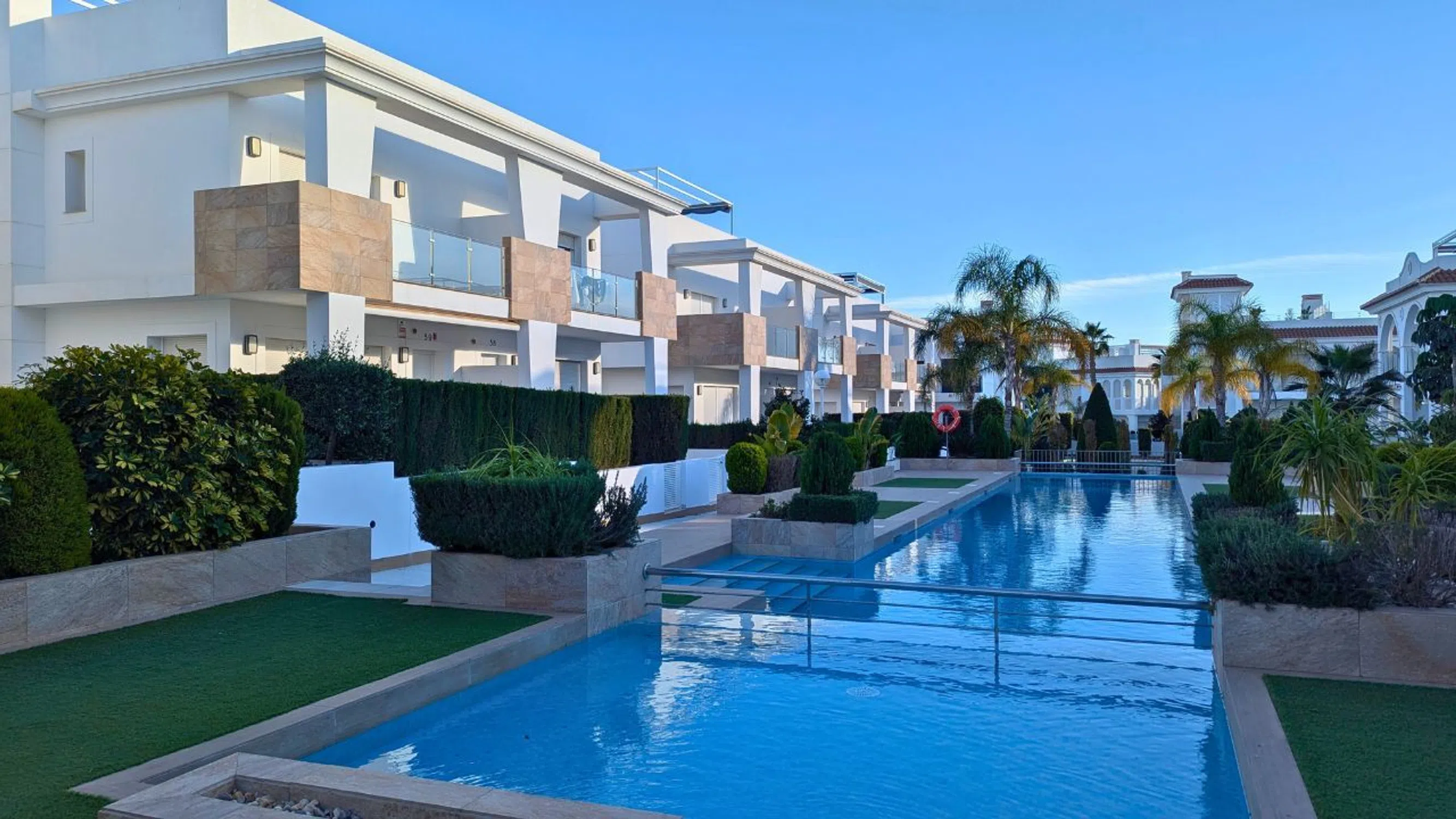 Propiedad Exclusiva en Ciudad Quesada – Lujo, Confort y Estilo En EL Arfero Real Estate, estamos encantados de presentar esta impresionante villa adosada, ubicada en el prestigioso complejo Euromarina en el corazón de Ciudad Quesada. Construida en 2019, esta propiedad combina un diseño moderno con acabados de alta calidad, ofreciendo un estilo de vida excepcional en la soleada Costa Blanca. Detalles de la propiedad: Con una generosa superficie construida de 134 m², esta casa presenta una distribución cuidadosamente diseñada, perfecta tanto para vivir de forma permanente como para pasar las vacaciones. Las características principales incluyen: 3 amplios dormitorios con abundante luz natural y amplio espacio de almacenamiento. 3 baños modernos, incluido uno en suite con acabados de lujo. Una sala de estar luminosa y acogedora, ideal para relajarse y pasar tiempo en familia. Una elegante cocina abierta, totalmente equipada y diseñada para la comodidad y la elegancia. Una espectacular terraza grande en la azotea, perfecta para tomar el sol mediterráneo, cenar al aire libre y disfrutar de hermosas vistas. Aire acondicionado central en todas las habitaciones, garantizando confort durante todo el año. Espacios y comodidades al aire libre: El complejo ofrece áreas comunes bellamente mantenidas que elevan su experiencia de vida: Un exuberante jardín y zonas verdes, perfectos para relajarse. Acceso a una gran piscina comunitaria, completa con duchas al aire libre. Una plaza de aparcamiento privada en la propiedad. Amplio espacio de almacenamiento, tanto en interiores como en exteriores, para todas sus necesidades. Ubicación y alrededores: Ciudad Quesada es una de las zonas más cotizadas de la Costa Blanca, famosa por su vibrante ambiente, sus excelentes servicios y su proximidad a impresionantes playas y campos de golf. Hay tiendas, restaurantes e instalaciones médicas a poca distancia a pie, mientras que el aeropuerto de Alicante está a solo 40 minutos en coche. Esta casa ofrece una combinación única de lujo, comodidad y una ubicación inmejorable. No deje pasar esta oportunidad. Póngase en contacto con nosotros hoy mismo para obtener más información o programar una visita. ¡La casa de sus sueños en la Costa Blanca le espera!