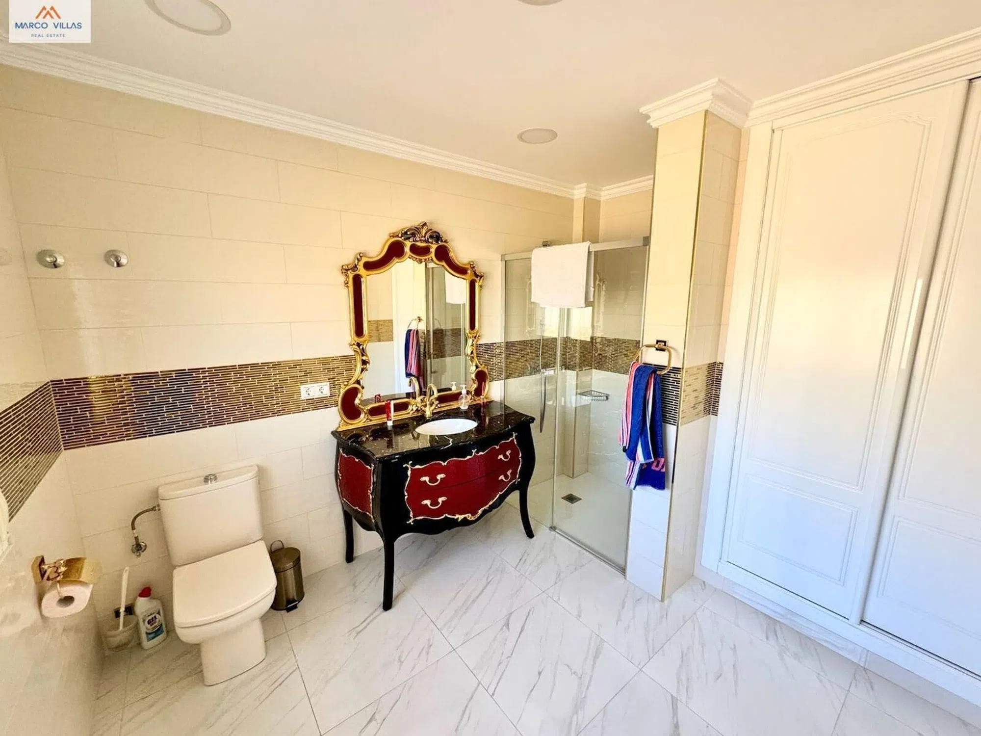 � Villa de lujo en La Marina – San Fulgencio (Costa Blanca) Os presentamos esta impresionante villa de lujo situada en plena Costa Blanca, dentro de la prestigiosa Urbanización La Marina, en San Fulgencio. Una propiedad única que combina espacio, comodidad y exclusividad, a tan solo 4 km de las mejores playas de la zona. � Características principales •Superficie construida: 517 m² •Parcela: 1.366 m² •Habitaciones: 8 •Baños: 5 •Garaje privado + aparcamiento cubierto •Piscina cubierta climatizable •Apartamento independiente � Distribución de la vivienda Planta principal: •Amplio y luminoso salón con comedor. •Moderna cocina con isla central y acabados de diseño. •1 dormitorio. •1 baño completo. •Acceso directo al garaje. •Cocina secundaria. •Gran terraza con espectaculares vistas a Guardamar y al mar. Primera planta: •4 dormitorios (incluyendo un master suite con baño privado y vestidor). •1 baño completo adicional. •2 terrazas con impresionantes vistas a la urbanización. •Aire acondicionado por conducto. Apartamento independiente: •Salón-comedor con cocina integrada. •3 dormitorios (uno en suite). •1 habitación extra con acceso a la sala de máquinas (calefacción central). •Aire acondicionado por splits en todas las estancias. � Zona exterior •Gran parcela con jardín cuidado y espacio para varios coches. •2 accesos de garaje desde la calle + garaje cerrado. •Piscina cubierta con opción de agua caliente. •Cocina exterior ideal para reuniones y barbacoas. •Gimnasio privado con sauna y ducha. •Cuartos de servicio (depuradora, almacenamiento, maquinaria). •Placas solares y sistema para calentar el agua de la piscina. � Ubicación privilegiada •A solo 4 km de las playas de la Costa Blanca. •Restaurantes, comercios, supermercados y servicios a escasos metros de la vivienda. •Conexión rápida con autovías y aeropuerto de Alicante a 25 min. � Una villa para disfrutar al máximo Si estás buscando una vivienda exclusiva, cómoda y práctica para vivir todo el año o disfrutar de largas estancias en la Costa Blanca, esta villa lo tiene todo: amplitud, privacidad, zonas de ocio y un entorno incomparable. � ¡Solicita tu visita hoy mismo y déjate enamorar!