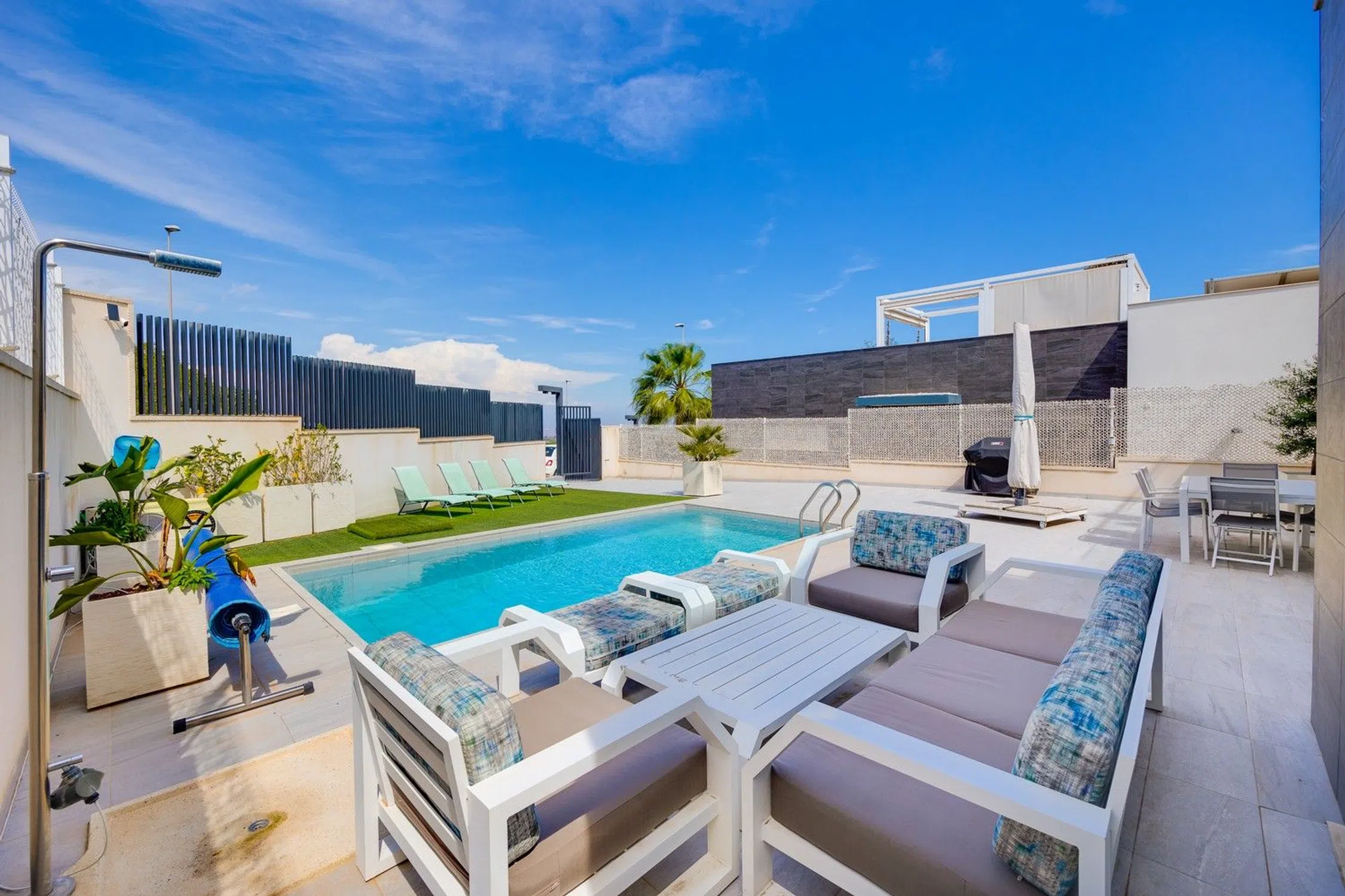 Bienvenido a una magnífica casa de 210 metros cuadrados ubicada en el prestigioso enclave de San Miguel de Salinas. Construida en 2022, esta propiedad de lujo ofrece un entorno de vida excepcional con cinco amplios dormitorios y cinco baños, cuatro de los cuales son en suite, proporcionando un nivel incomparable de confort y privacidad. Al entrar, descubrirá un hogar que combina a la perfección la modernidad con el encanto atemporal. La casa está diseñada para ofrecer un ambiente de serenidad y amplitud, con una distribución abierta que conecta cada espacio de manera armoniosa. Las vistas abiertas, verdes y al lago, junto con una parcela meticulosamente cuidada, crean un entorno de paz y exclusividad. Entre sus características más destacadas se encuentra una impresionante piscina, perfecta para disfrutar del clima mediterráneo. La casa está equipada con los más altos estándares de lujo, incluyendo suelos de baldosas de calidad superior, cocina separada, armarios empotrados y un baño de cortesía para invitados. La seguridad está garantizada con portones electrónicos y una puerta de seguridad con triple cerradura. Esta propiedad no solo es una casa, sino un estilo de vida. Con un patio encantador, balcón orientado a magníficas vistas abiertas, y un sótano completo, cada rincón está diseñado para ofrecer una experiencia de vida de lujo. Esta joya arquitectónica es una oportunidad única para disfrutar de una vida de ensueño en uno de los lugares más exclusivos de la región. No pierda la oportunidad de hacer suyo este refugio de lujo incomparable.