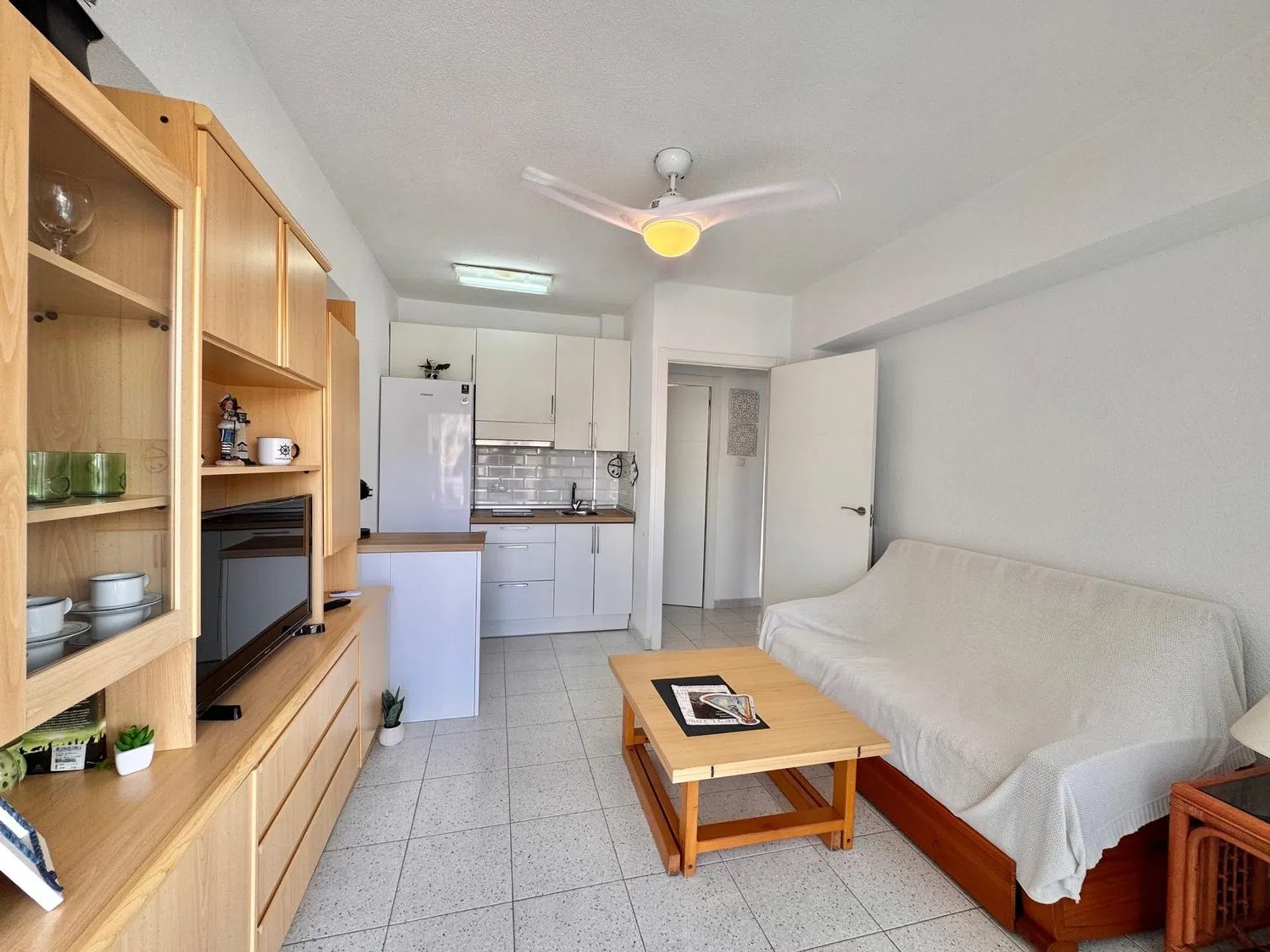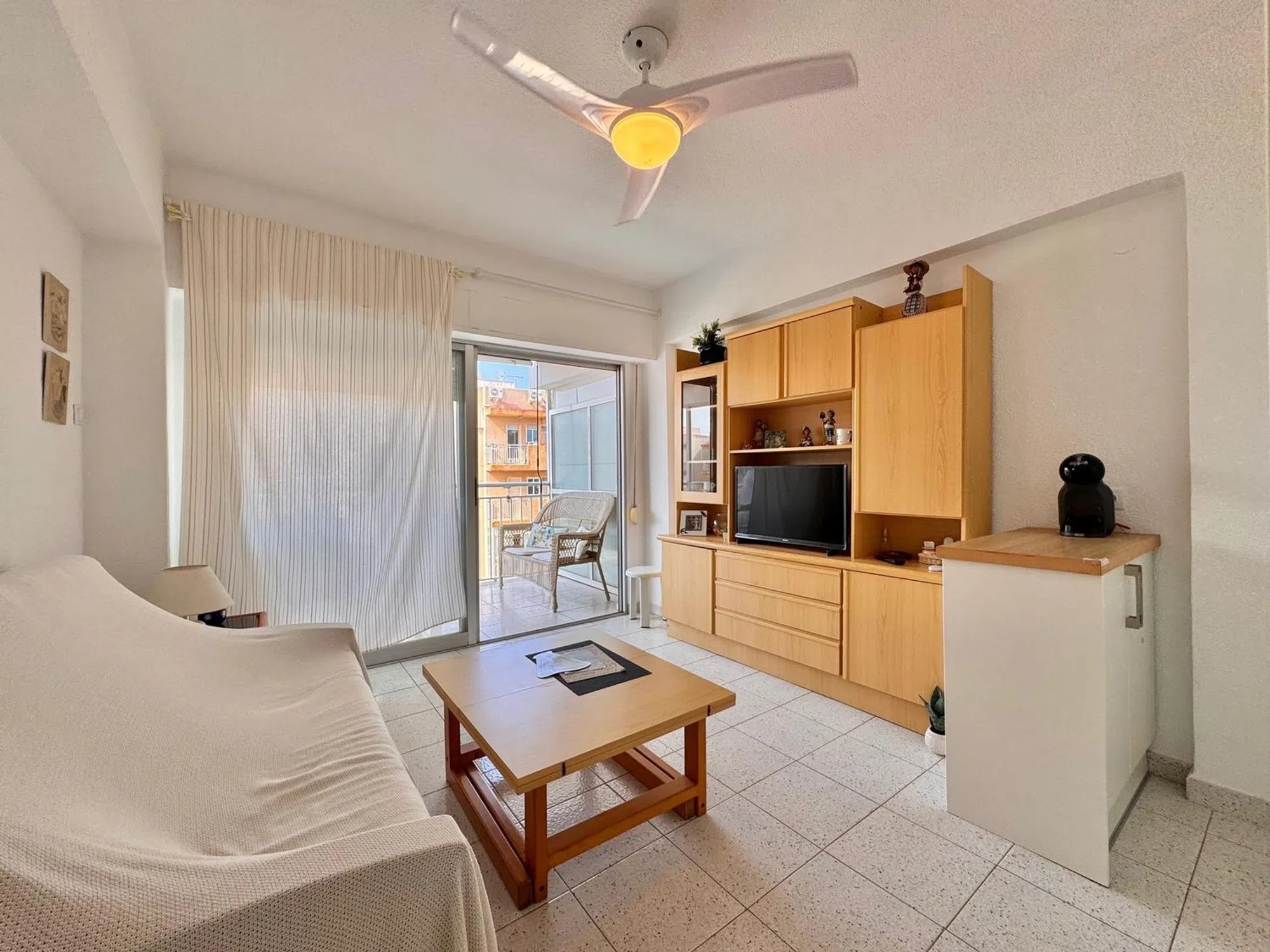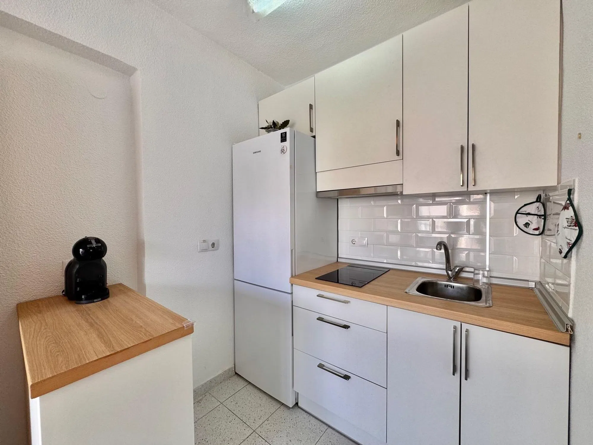 Fantástico apartamento en las Calas De Santiago Bernabéu. Se encuentra a tan solo unos metros de una de las mejores playas de Santa Pola, con largos paseos donde disfrutar de la tranquilidad y la brisa del mar, restauración, tiendas y todos los servicios necesarios a pie de calle. La vivienda se distribuye en dos habitaciones, una de ellas doble con armario empotrado, un baño completo con plato de ducha, luminoso salón con cocina americana y una gran terraza con acceso desde el salón y desde la habitación doble. Además cuenta con mucha luz y ventilación, gracias a sus dos orientaciones oeste y norte. La propiedad ha sido reformada en el 2023. Se vende con todo el mobiliario, electrodomésticos, nevera, lavadora y termo eléctrico. La ubicación de la vivienda es ideal para residir, ya que se encuentra a tan solo 50 metros de la playa, a pocos metros del centro comercial Polamax, a tan solo 10 minutos del centro caminando, a 10 minutos en coche del aeropuerto, y con ciudades como Elche o Alicante a tan solo 13km. No pierdas esta oportunidad y ven a visitarlo.