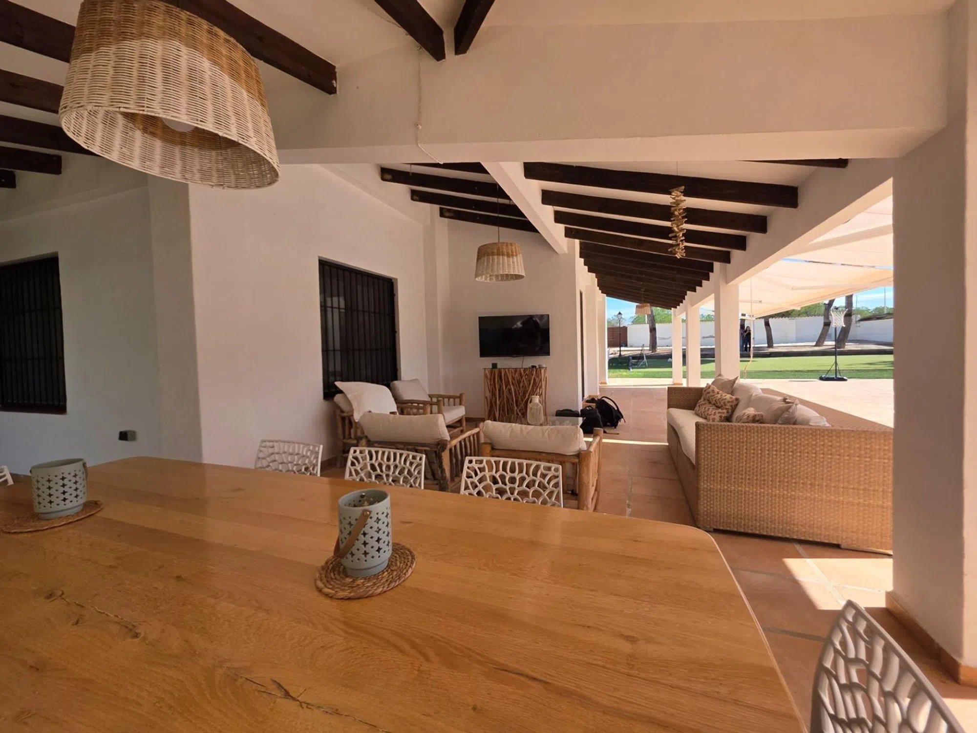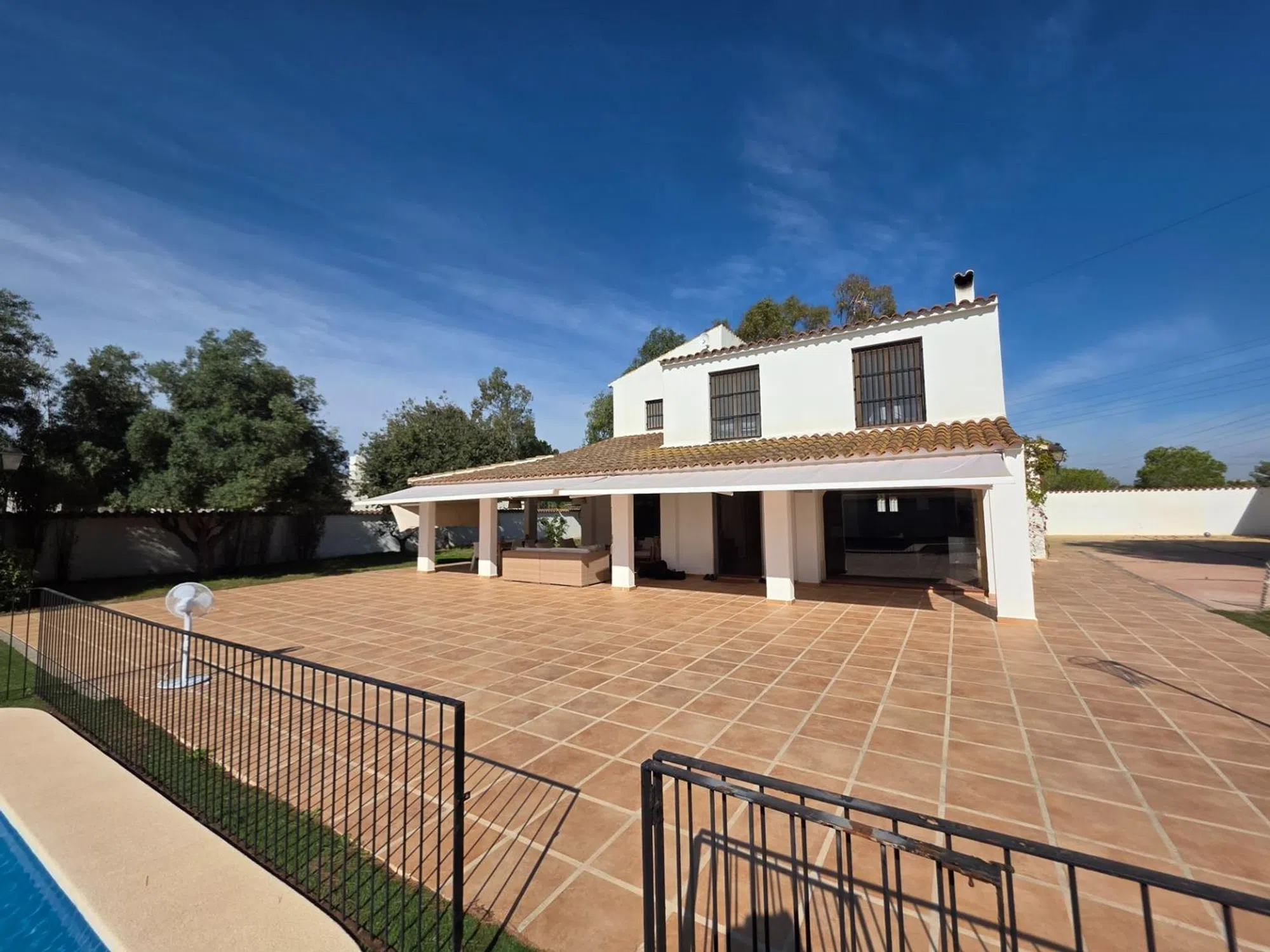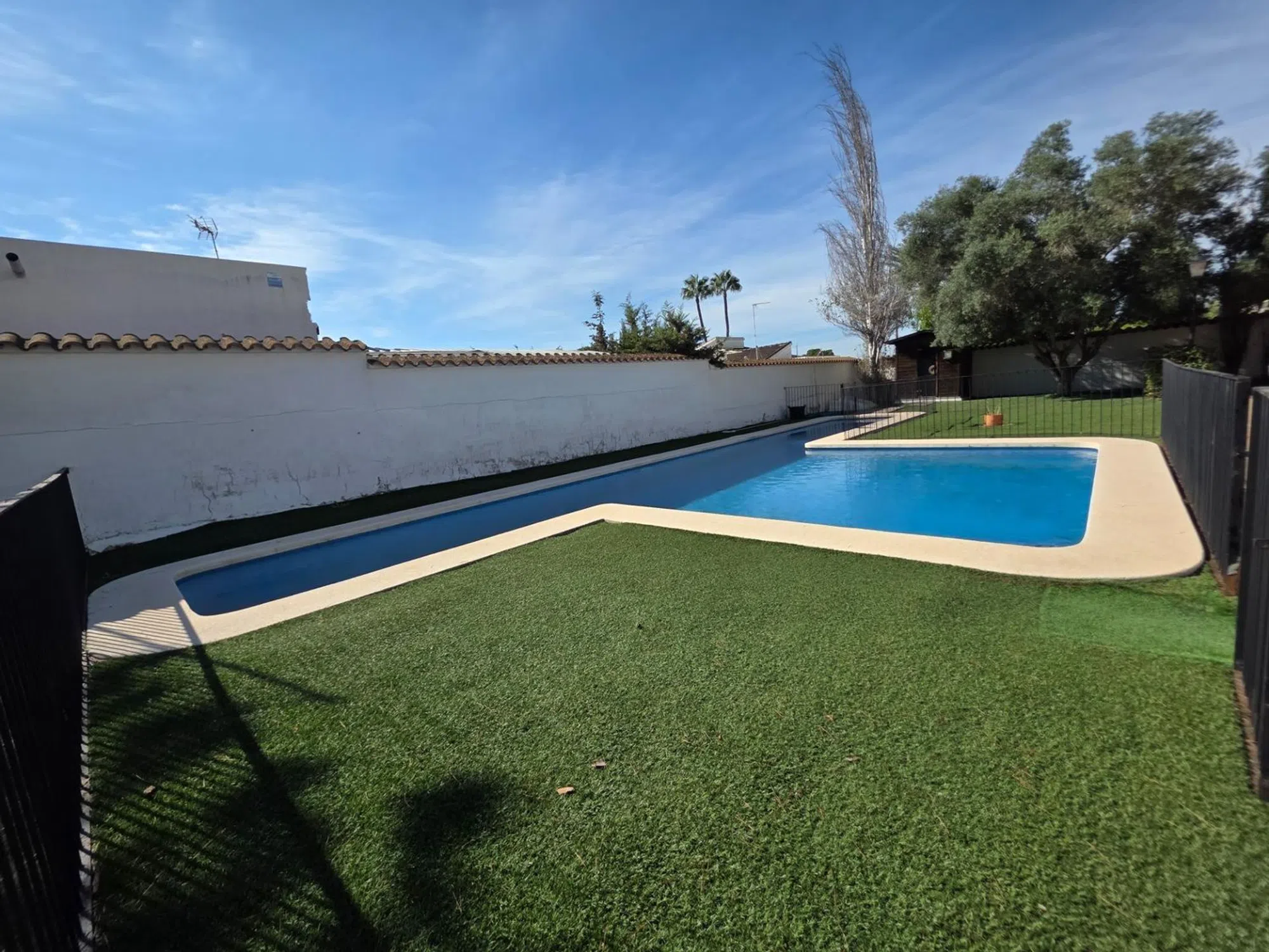 En Arena Inmobiliaria te presentamos este chalet independiente en Pueblo Levantino (Santa Pola), en la zona alta de la urbanización. Una vivienda de una sola planta con 406 m² construidos sobre una parcela cercana a 2.000 m², orientada al sureste. Recibe luz todo el día y la brisa de la sierra del faro. Lista para entrar. La casa distribuye 4 dormitorios dobles con vistas al jardín y 3 baños completos. El salón, amplio y con chimenea, se abre al exterior mediante grandes ventanales. La cocina está equipada e incorpora despensa. Acabados con carpintería de madera, suelos de gres y parquet, y calefacción individual por estancias. El interior está adaptado para personas con movilidad reducida. La parcela concentra los espacios de ocio y servicio: piscina privada y vallada con calle de 15 m y zona de 3 × 5 m de poca profundidad, sauna exterior con vestuarios y duchas, pista de futbito con césped artificial. Completa el conjunto una terraza cubierta, solárium, almacén de unos 50 m², aparcamiento en superficie con puertas automáticas, zonas arboladas de sombra y área de juegos. Como valor añadido, la finca permite segregar en dos parcelas edificables, lo que abre la puerta a construir un segundo chalet o ampliar instalaciones. Dispone de alumbrado y alcantarillado. La ubicación es práctica: a 5 minutos de las playas de Santa Pola, 15 minutos de Alicante y 20 de Elche, con colegios, comercios y centros comerciales a poca distancia. Una vivienda pensada para vivir cómodamente todo el año, en una zona que permite desconectar sin alejarse de nada.
