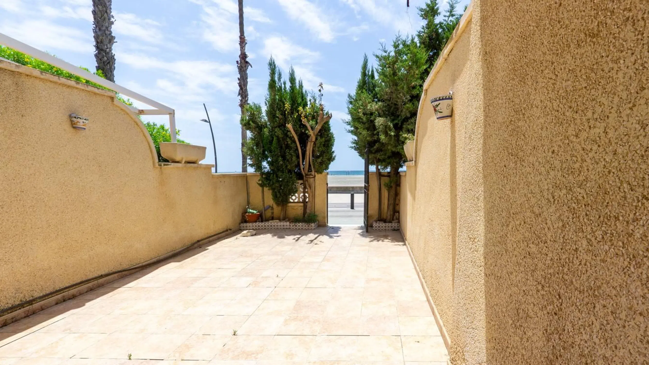 Exclusivo chalet adosado en primera línea de playa con espectaculares vistas al mar y acceso directo a la playa Tamarit Descubre esta magnífica vivienda en primera línea situada a tan solo 5metros frente a la Playa de Tamarit, una de las mejores playas de Santa Pola, distinguida con la Bandera Azul desde 1992 por la calidad de sus aguas limpias, arena fina y ambiente familiar. La propiedad, orientada al sur, goza de una excelente luz natural durante todo el día y está diseñada para disfrutar al máximo del entorno costero. En la planta baja se encuentra una espaciosa terraza principal, perfecta para comidas al aire libre, tomar el sol o disfrutar de agradables veladas junto al mar. El salón-comedor, acogedor y luminoso, cuenta con chimenea y conecta con una cocina independiente, que tras una reforma integral, fue ampliada y se entrega totalmente equipada. Dispone de 4 amplios dormitorios y 2 baños completos, distribuidos en primera y segunda planta. Dos de ellos tienen acceso a sus propias terrazas independientes con vistas frontales al mar, un privilegio único del que podrá disfrutar todo el año o en temporadas vacacionales. Todos ellos están totalmente amueblados y disponen de ventiladores, y sus ventanas son de aluminio con doble acristalamiento, con sistema de apertura frontal y oscilobatiente. Desde uno de los dormitorios tenemos acceso a un patio trasero, ideal para labores de colada o almacenaje extra. Toda la vivienda se entrega totalmente amueblada y equipada con electrodomésticos, aire acondicionado en el salón y ventiladores de techo en los dormitorios. El bungalow cuenta con una plaza de garaje privada en propiedad, a escasos metros de la vivienda y con acceso privado tanto manual como con mando a distancia. La zona ofrece todos los servicios de una playa de primera categoría: salvamento y socorrismo, aseos públicos, chiringuitos, zonas infantiles, área biosaludable, y espacios deportivos con redes de vóley, porterías, canastas y un largo paseo ideal para caminar o patinar. Además, es perfecta para los amantes de los deportes náuticos: windsurf, paddle surf, kayak y vela ligera. Una oportunidad única para vivir junto al mar en una de las zonas más tranquilas y valoradas de Santa Pola.