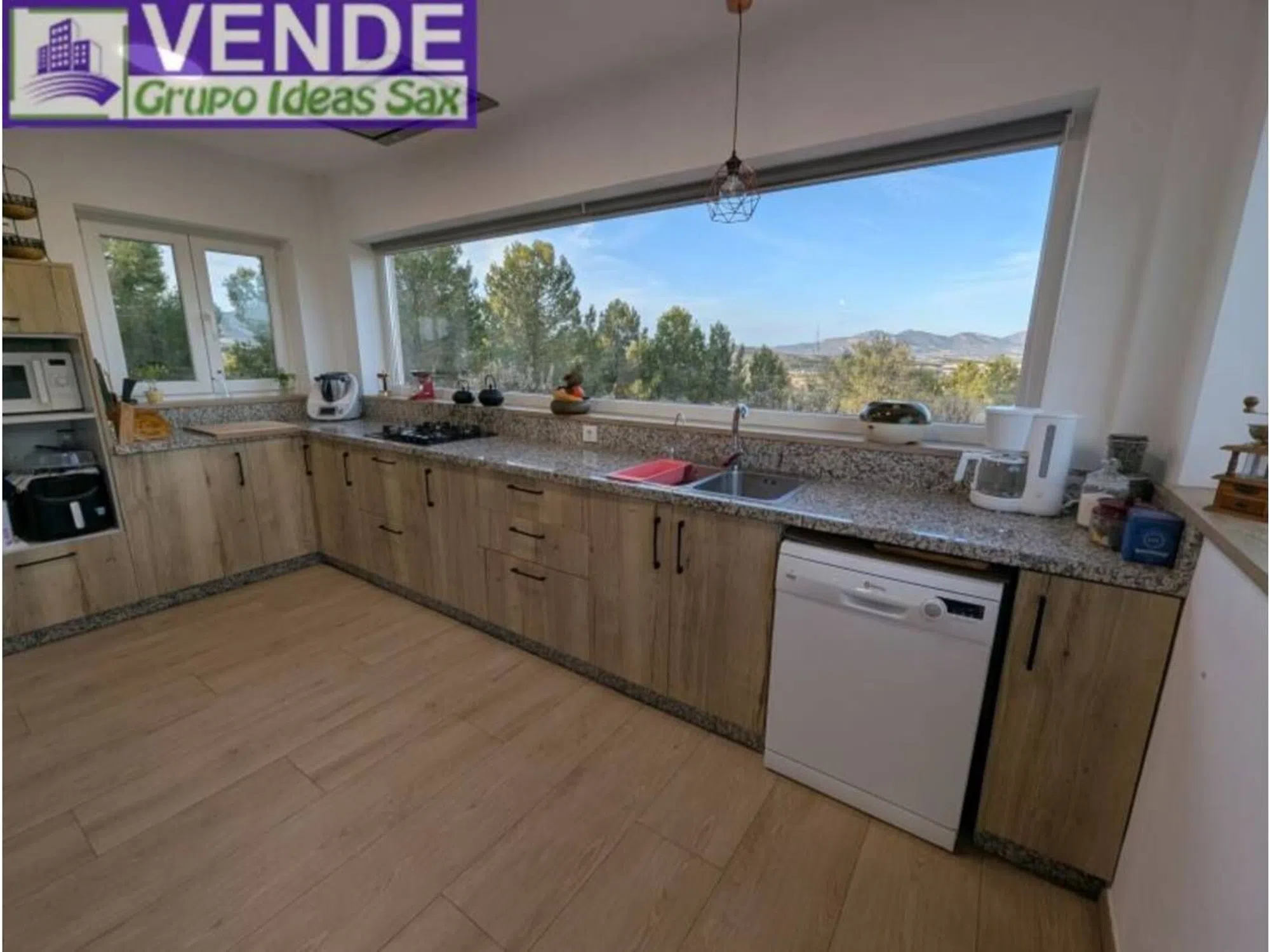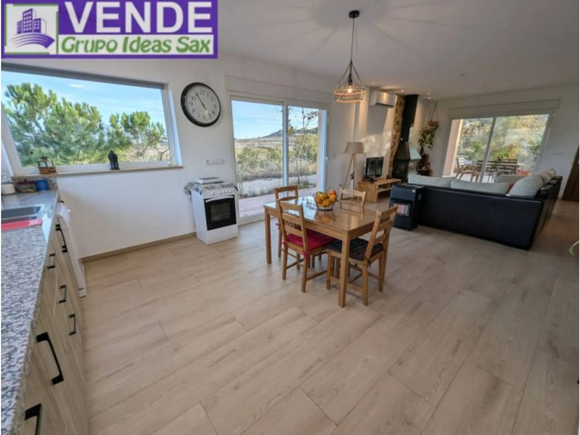 CHALET RUSTICO DE NUEVA CONSTRUCCION EN SAX sobre una parcela de 15.000 m2 totalmente valladas. Dentro de la parcela encontramos la casa principal que cuenta con una superficie construida de 136m2 compuesta por una acogedor y amplio salón-cocina abierto con chimenea baja y aire acondicionado con unas vistas fabulosas a la montaña, lavadero, 4 habitaciones (una en suite, una doble y dos individuales) y una marquesina de 20m2. En la parte exterior encontramos el garaje-barbacoa con una superficie construida de 63m2 con puerta automática y capacidad para dos vehículos. La casa cuenta con la preinstalación de aire acondicionado por conductos, tiene luz con paneles solares y agua. Para entrar a vivir, muy buena zona con unas vistas espectaculares.