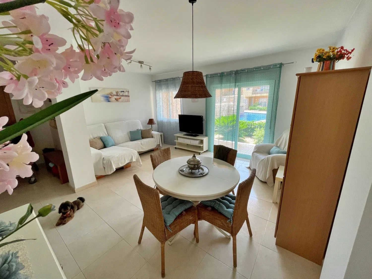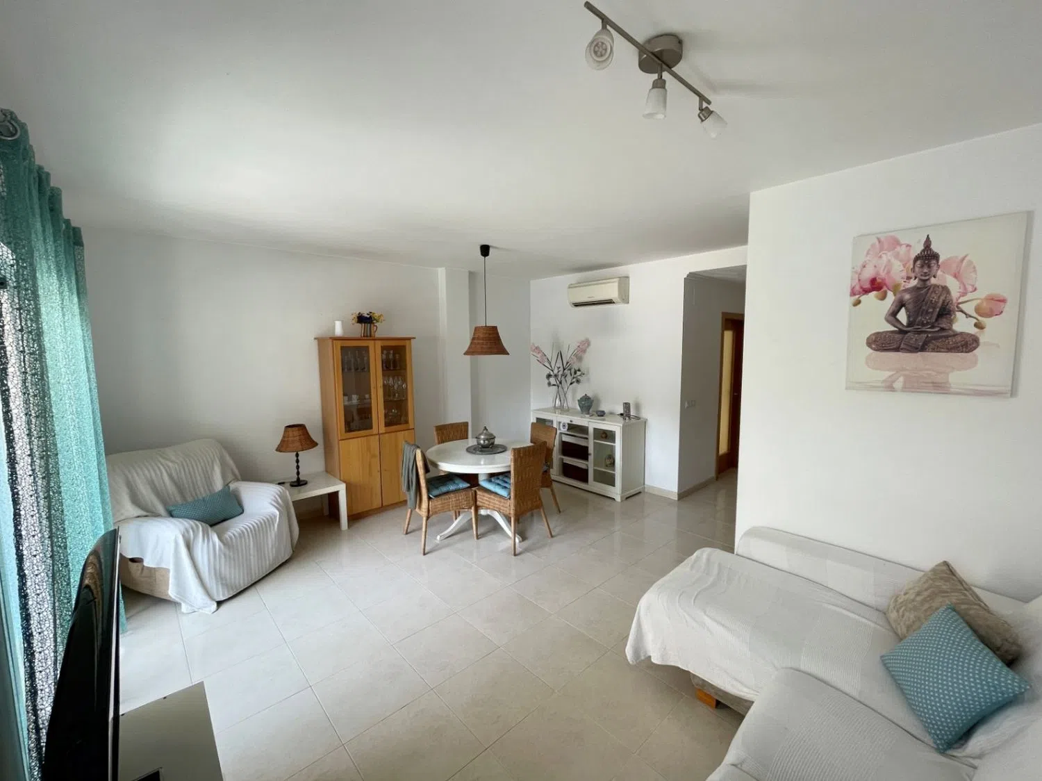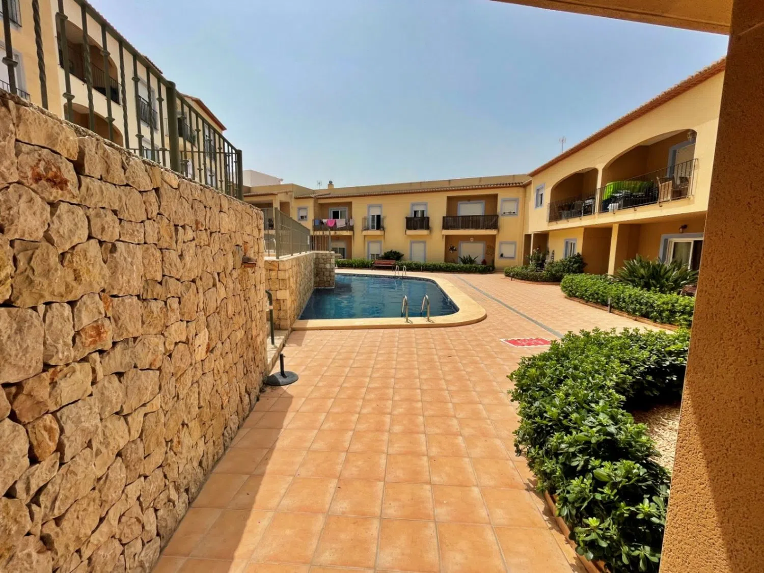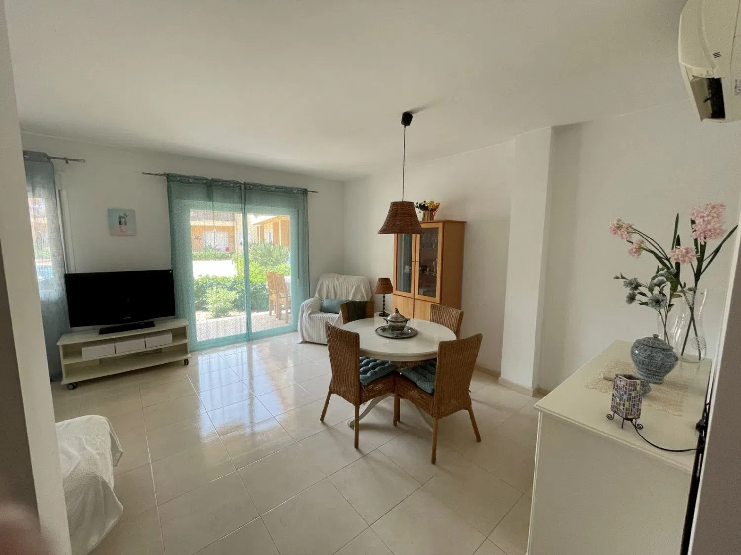 Apartamento en venta en Teulada, donde el confort se une a la comodidad. Al entrar, será recibido por una sala de estar amplia y luminosa que incluye dos acogedores dormitorios y un baño moderno. El salón abierto y el comedor crean un ambiente cálido, perfecto tanto para relajarse como para entretener a los invitados. La cocina independiente está bien equipada y ha sido recientemente renovada Este apartamento de planta baja cuenta con aire acondicionado y doble acristalamiento, lo que garantiza un ambiente agradable durante todo el año. Con una orientación oeste, puede disfrutar de hermosas vistas abiertas al jardín comunitario y a la zona de la piscina tanto desde la terraza abierta como desde la cubierta. Ubicada a pocos pasos del centro de la ciudad y de los servicios locales, esta propiedad ofrece la combinación perfecta de tranquilidad y accesibilidad. Además, con un ascensor que da acceso a la plaza de garaje y al trastero, la comodidad está al alcance de su mano. Este apartamento es una maravillosa oportunidad para cualquiera que busque adoptar un estilo de vida cómodo en una comunidad vibrante. Esta propiedad se ha alquilado con éxito a largo plazo y las fotos que ve se tomaron antes de la ocupación del inquilino actual. Además, la cocina fue bellamente renovada el año pasado.