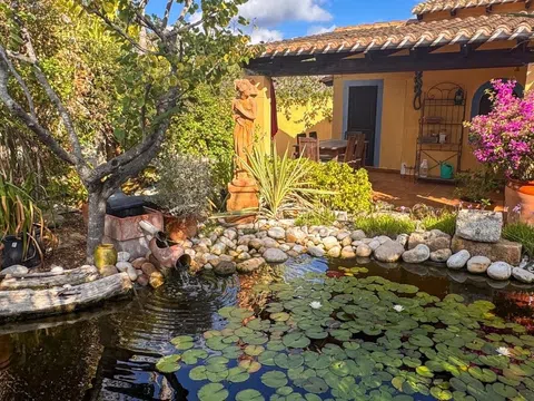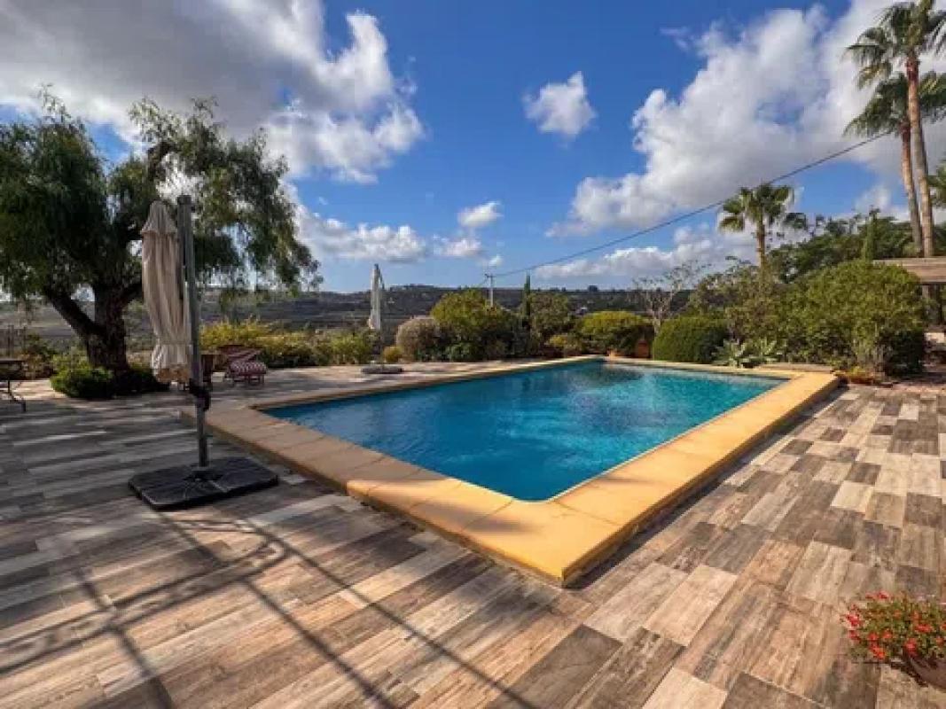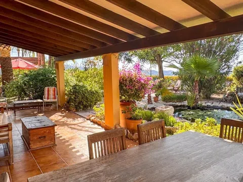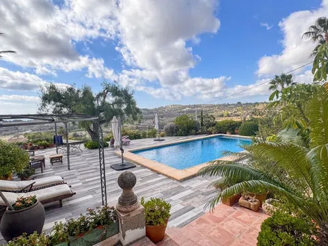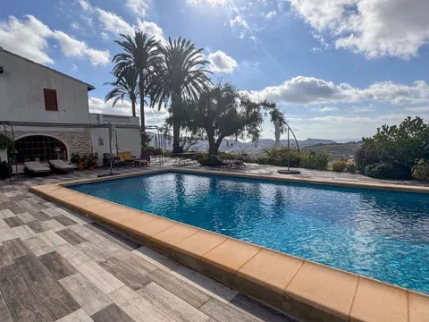 Encantadora finca de estilo rústico con vistas al mar en Teulada/Moraira, Alicante! En el corazón de la Costa Blanca, rodeada de viñedos y bañada por la brisa mediterránea, esta espectacular finca de carácter tradicional ofrece un refugio de elegancia atemporal. Ubicada en una parcela llana de aproximadamente 6.000 m², con orientación sur y vistas panorámicas al mar, esta propiedad combina privacidad, exclusividad y el auténtico encanto rústico de la región. Con una superficie construida de 410 m², la finca se compone de dos viviendas independientes, ambas diseñadas con un exquisito respeto por la arquitectura mediterránea. Techos con vigas de madera, suelos de barro artesanal y paredes de piedra natural evocan el carácter de las antiguas masías, aportando calidez y autenticidad a cada estancia. La casa principal: Un amplio porche cubierto da la bienvenida a la vivienda principal, donde cada rincón ha sido concebido para disfrutar del confort en un entorno de gran belleza. En la planta baja, encontramos un elegante salón con chimenea, un espacioso comedor, una cocina de estilo tradicional con patio exterior y un dormitorio con baño en suite, ideal como despacho o biblioteca privada. En la planta superior, cuatro luminosos dormitorios, tres baños completos y dos grandes terrazas permiten contemplar las impresionantes vistas al mar y al paisaje circundante. Casa de invitados: Anexa a la zona de la piscina, la casa de invitados ofrece un acogedor salón- comedor con cocina integrada, tres dormitorios y un baño, garantizando privacidad y comodidad a los huéspedes en un entorno idílico. La finca cuenta con amplias terrazas, jardines autóctonos y una magnífica piscina rodeada de piedra natural, perfecta para disfrutar de los atardeceres mediterráneos. Su ubicación, a pocos minutos del casco antiguo de Teulada, permite acceder fácilmente a todos los servicios, mientras se mantiene la paz y exclusividad de un entorno rural privilegiado. Características destacadas: ● Estilo rústico auténtico con materiales nobles ● 8 dormitorios y 5 baños en total ● 410 m² construidos en parcela de 6.000 m² aprox. ● Casa de invitados independiente ● Piscina rodeada de piedra natural y amplias terrazas ● Vistas panorámicas al mar y viñedos ● Ubicación privilegiada a pocos minutos del casco antiguo de Teulada ● Orientación sur para máxima luminosidad Una finca única para quienes buscan la esencia de la vida mediterránea, combinando tradición, exclusividad y el lujo de un entorno natural incomparable. La descripción del presente inmueble e imágenes tienen mero carácter informativo y en ningún caso carácter contractual, pudiendo ser modificados por la inmobiliaria comercializadora sin que ello implique responsabilidad alguna frente a terceros. En el precio de venta a público, esta propiedad NO incluye los gastos de adquisición (Notario, registro, gestión, honorarios, etc…).