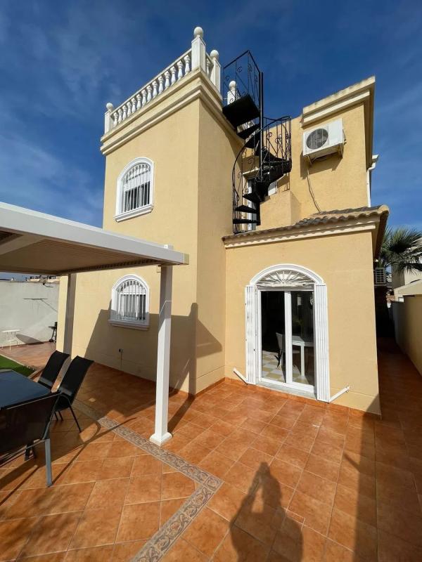 Acogedor chalet adosado en una de las zonas más demandadas de Torrevieja — Aguas Nuevas. La vivienda cuenta con 52 m² construidos y una parcela de 50 m², además de un sótano completamente re...