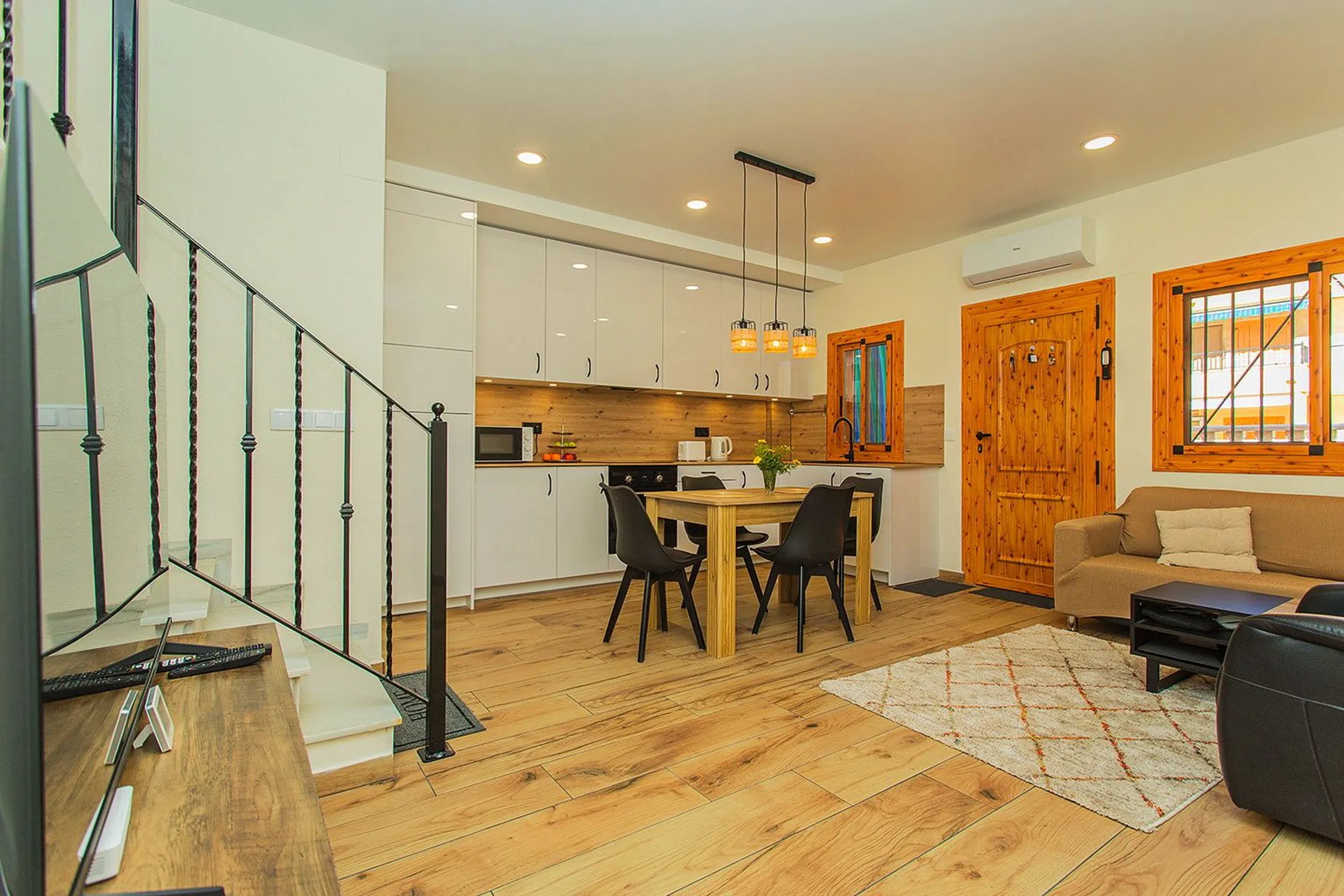 Casa adosada dúplex completamente renovada en 2025 directamente del propietario en venta con piscina comunitaria, cerca de la playa de La Mata en Torrevieja. La casa está ubicada en Viñamar 1, y se encuentra dentro de la urbanización con orientación noreste. Se distribuye de la siguiente manera: terraza de unos 15 m2, que se encuentra en la entrada de la casa. En la primera planta se encuentra el salón y la cocina Euro completa con electrodomésticos, un baño completo con ducha y un trastero. En la segunda planta hay dos dormitorios y un baño completo con bañera. Desde el dormitorio principal se tiene acceso al balcón con vistas a la piscina. Se vende completamente amueblada. En la urbanización tenemos una piscina comunitaria y zonas comunes. La casa tiene una excelente ubicación, cerca de supermercados, tiendas, farmacias y la parada de autobús. Si desea un tour virtual o un plano de la vivienda, no dude en contactarme. También será una muy buena inversión y ayudamos con nuestro exitoso servicio de alquiler de temporada. Contáctenos para más información.