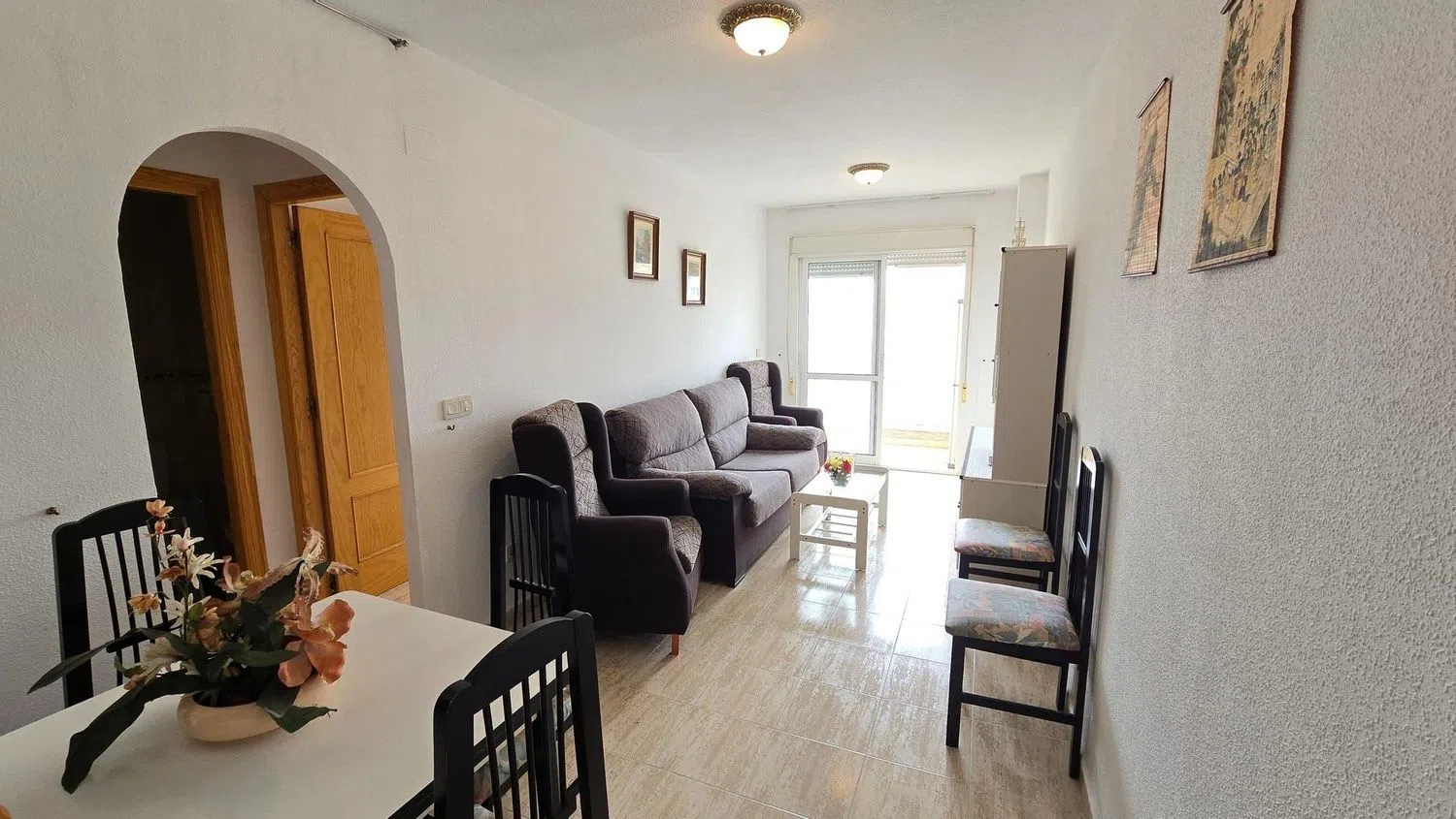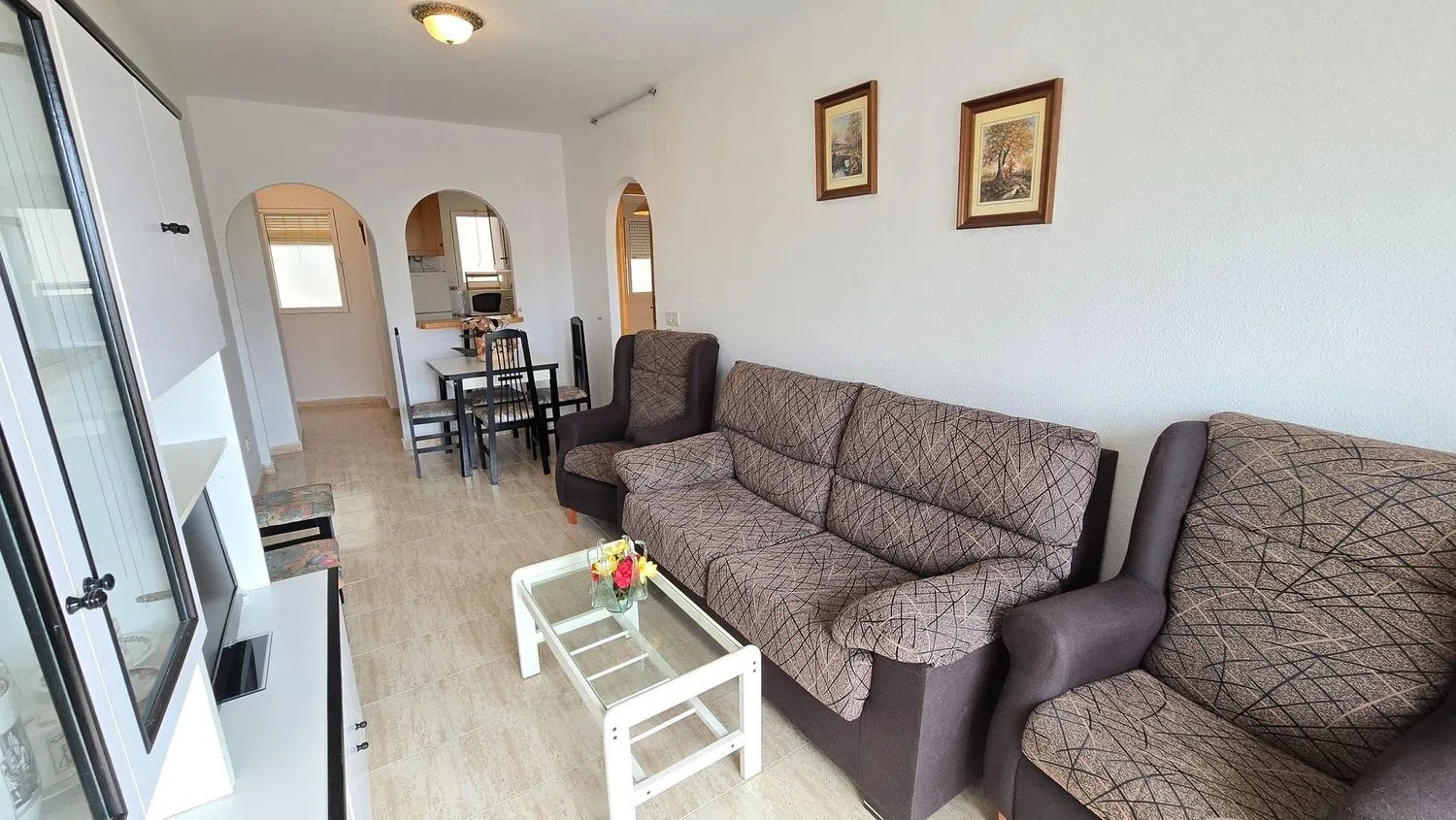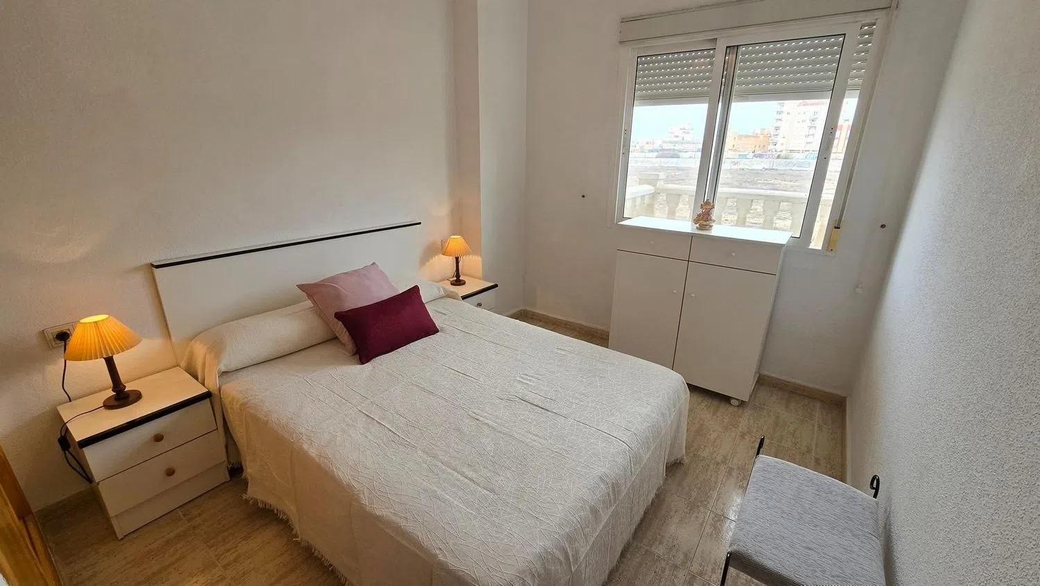 Encantador apartamento seminuevo ubicado en la primera planta, perfecto para disfrutar de la comodidad y el estilo de vida en la costa. Cuenta con dos acogedores dormitorios, uno de ellos equipado con armario empotrado, ideal para el almacenamiento. El salón comedor está amueblado con gusto, ofreciendo un espacio acogedor para relajarse y disfrutar. La cocina americana, también amueblada y equipada con electrodomésticos modernos, dispone de una ventana que permite la entrada de luz natural.