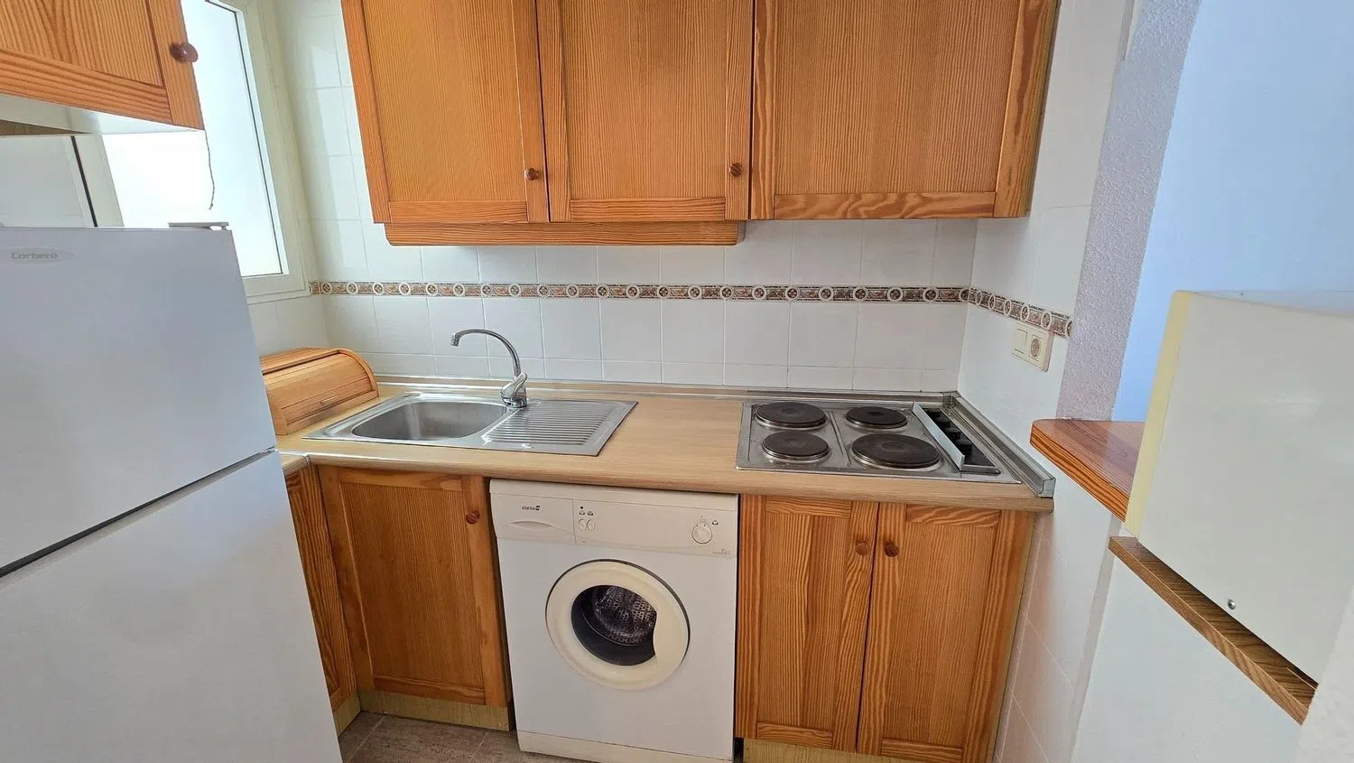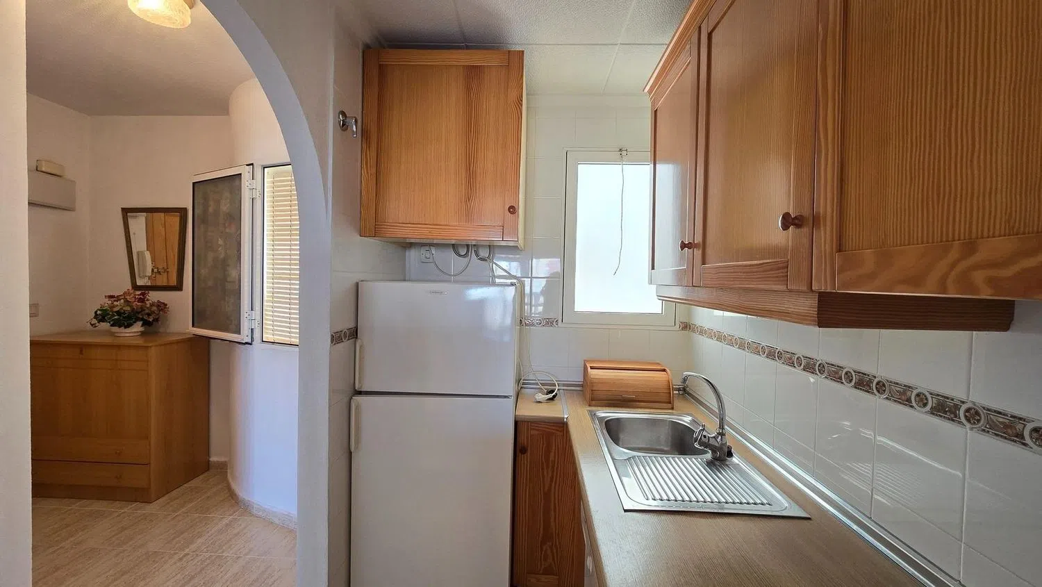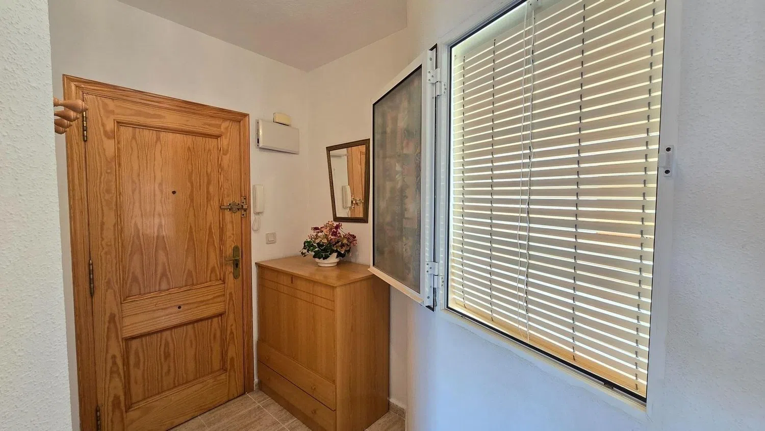 Encantador apartamento seminuevo ubicado en la primera planta, perfecto para disfrutar de la comodidad y el estilo de vida en la costa. Cuenta con dos acogedores dormitorios, uno de ellos equipado con armario empotrado, ideal para el almacenamiento. El salón comedor está amueblado con gusto, ofreciendo un espacio acogedor para relajarse y disfrutar. La cocina americana, también amueblada y equipada con electrodomésticos modernos, dispone de una ventana que permite la entrada de luz natural.